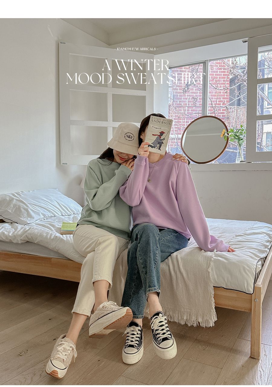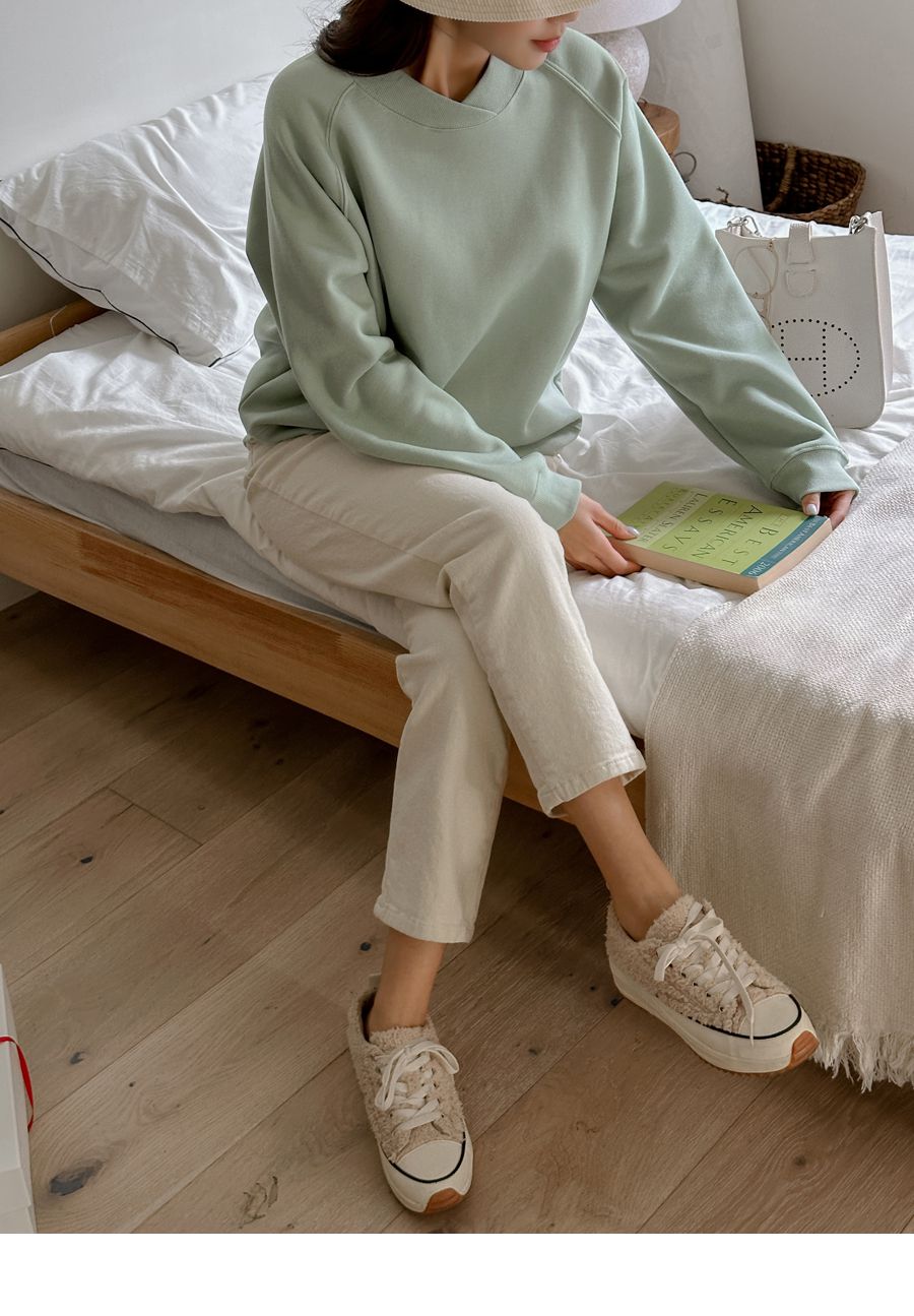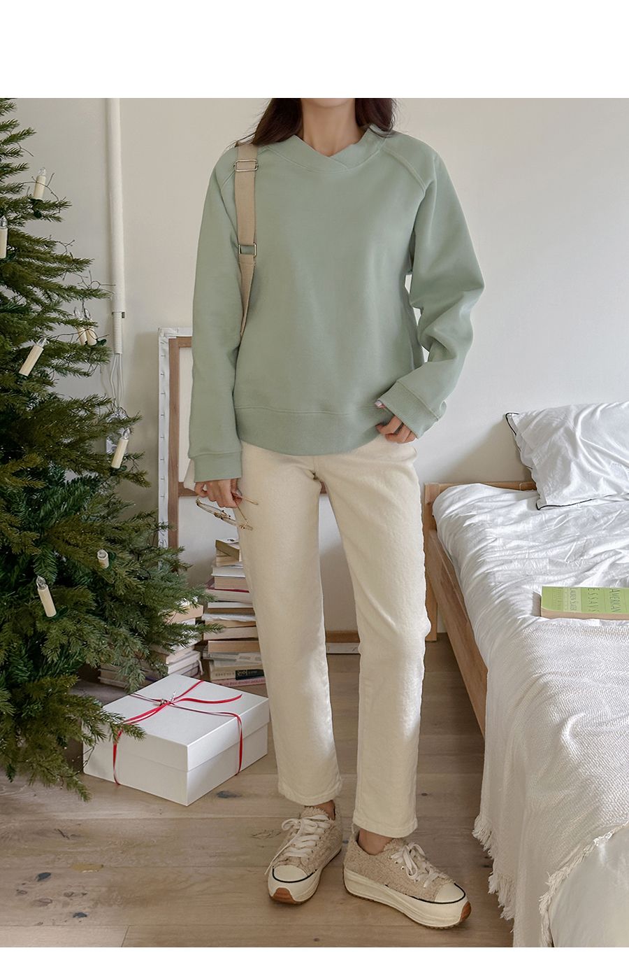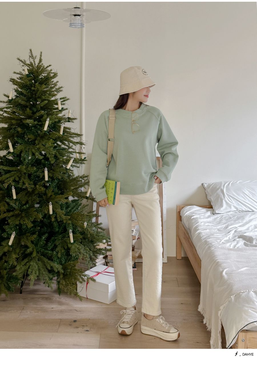 交叉領圍/保暖內刷毛/圓弧下襬/寬鬆版型 - 休閒居家OL上班族簡約百搭素面交叉圓領上衣保暖內刷毛內磨毛弧形下襬側開衩側衩連肩袖連袖長袖上衣T恤TEE素T紫色薄荷色奶油色黑色寬鬆大尺碼