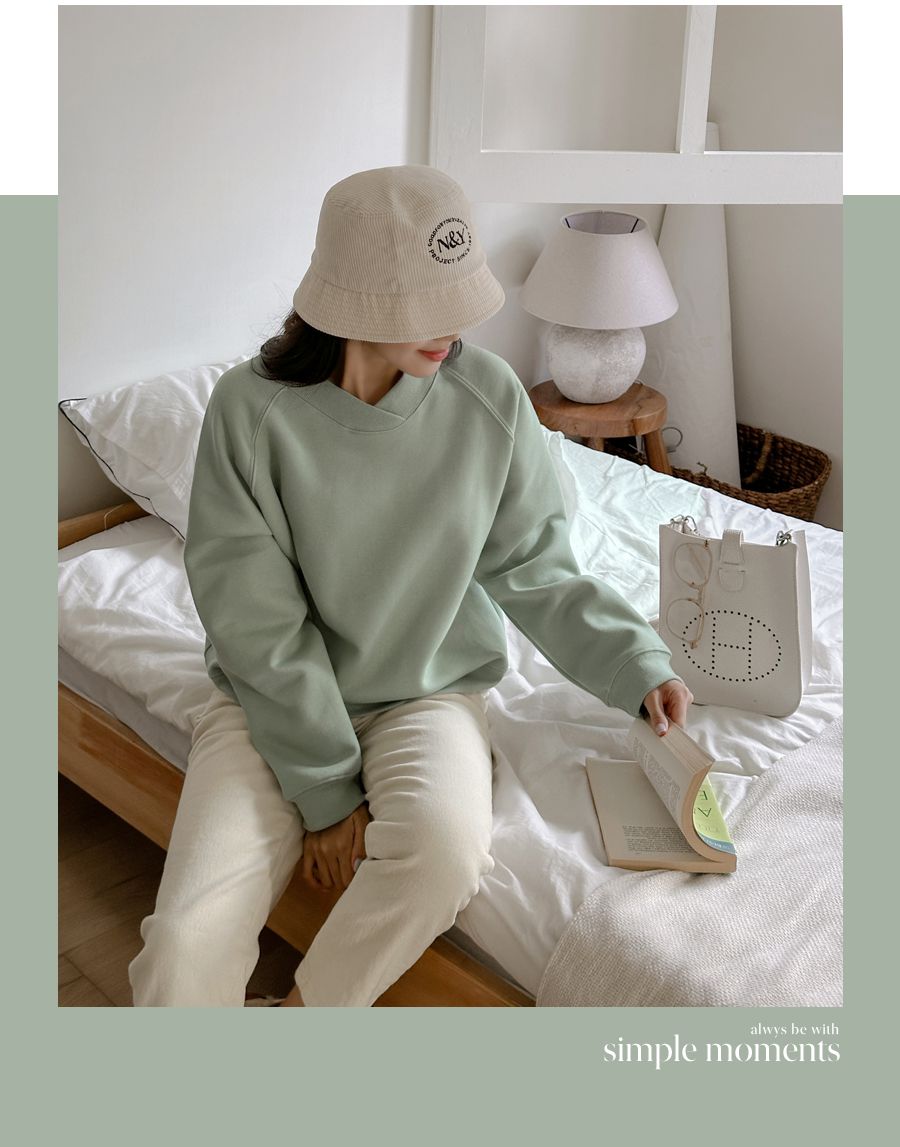 【C51414】韓國JAM 交叉圓領上衣-素面好氣色內刷毛弧形下襬寬鬆長袖★★