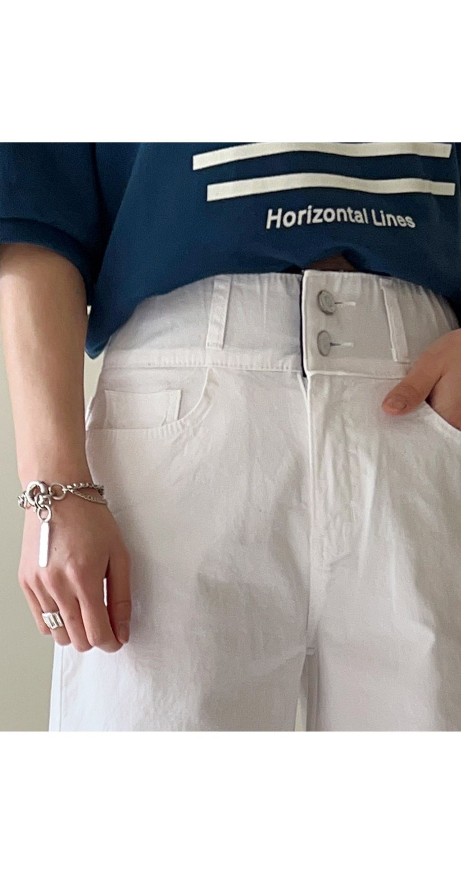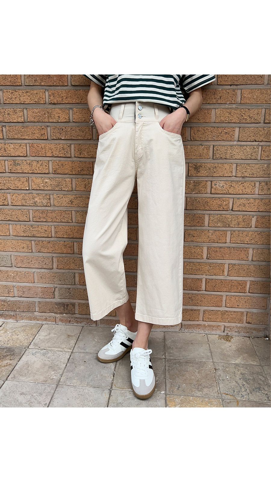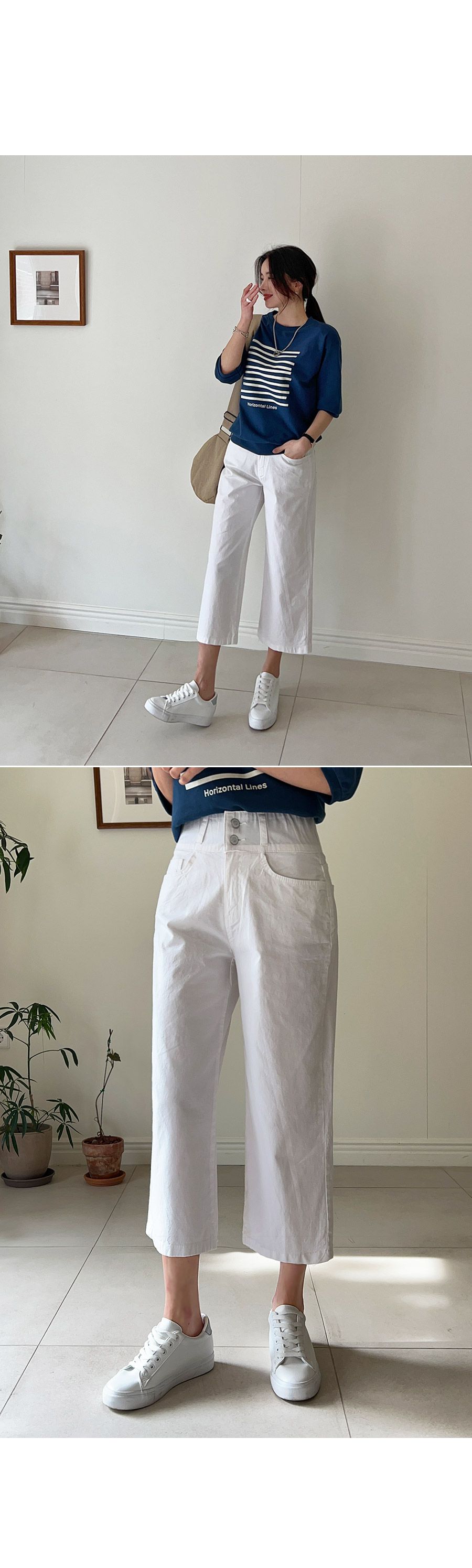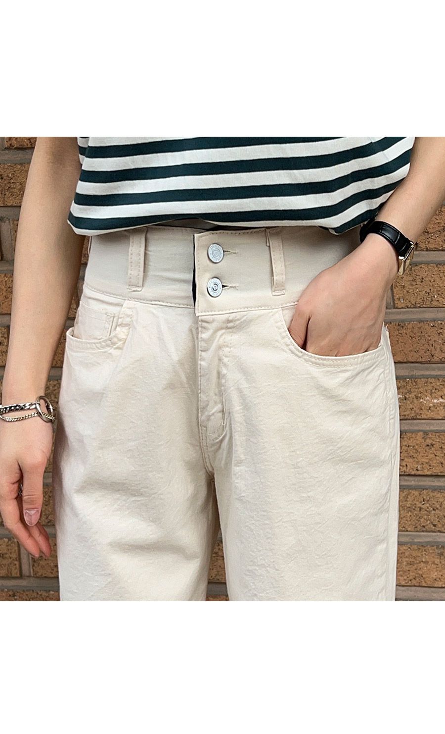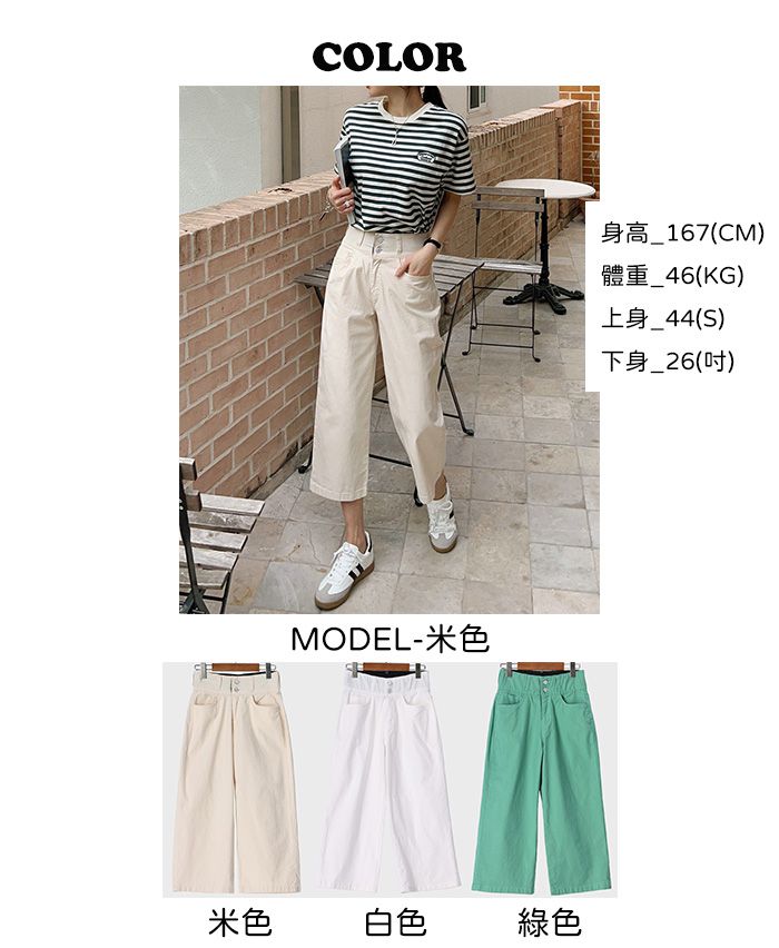 【C52260】韓國CFX 雙釦直筒褲-高腰彈性加寬腰內鬆緊帶八分褲★★