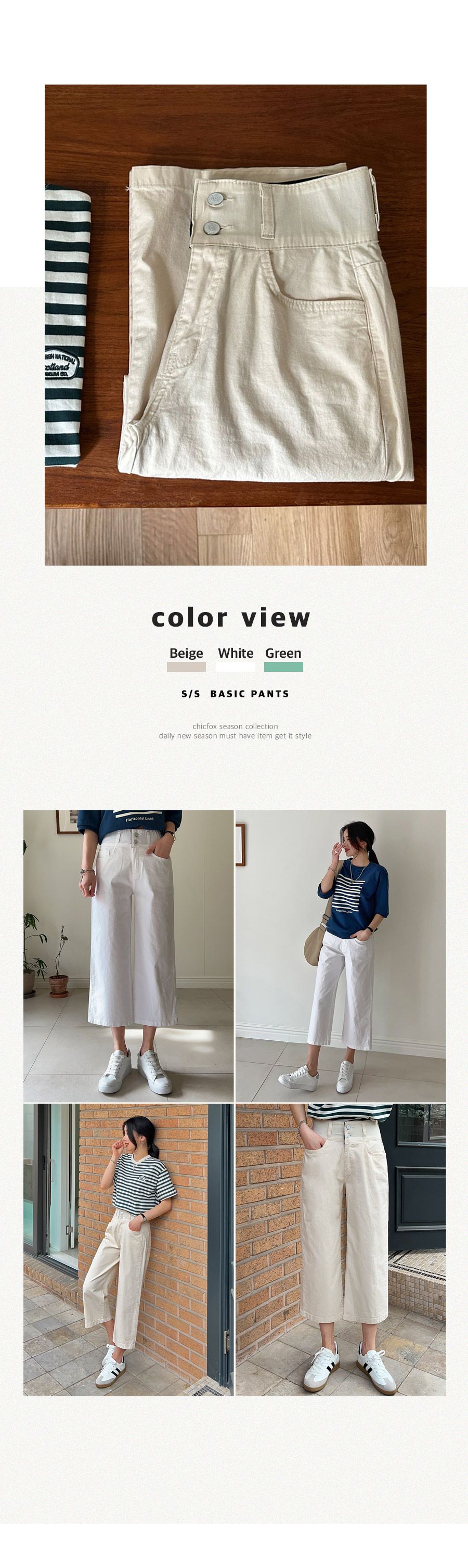 休閒居家簡約百搭素面八分褲直筒褲長褲收腰高腰縮腰雙釦彈性加寬腰內鬆緊帶米白綠色多尺寸