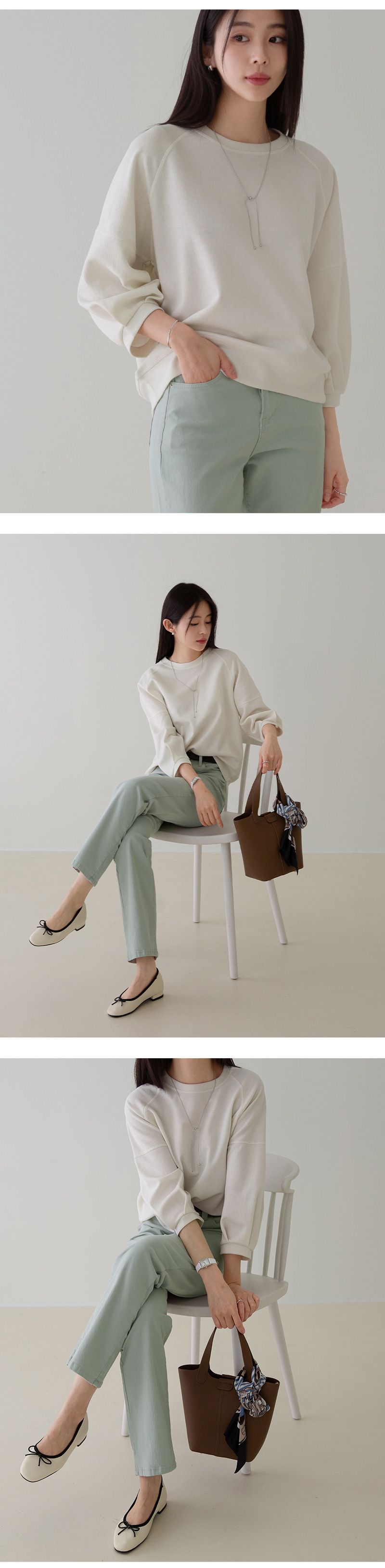 休閒居家簡約百搭素面圓領切線泡袖上衣泡泡袖好氣色連肩袖連袖七分袖寬袖打摺袖寬鬆大尺碼T恤TEE象牙色淺米色黑色粉色薄荷色黃色棕色