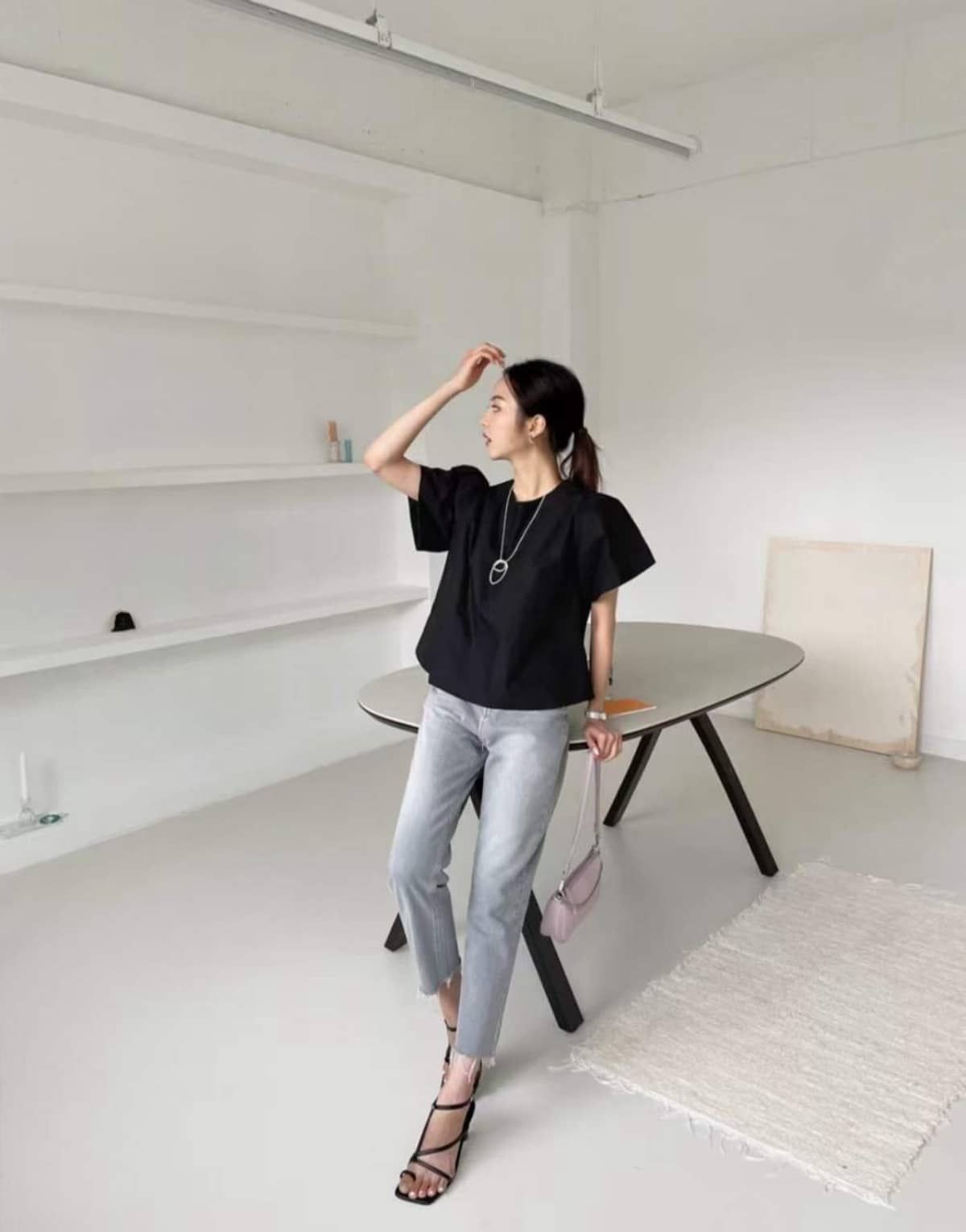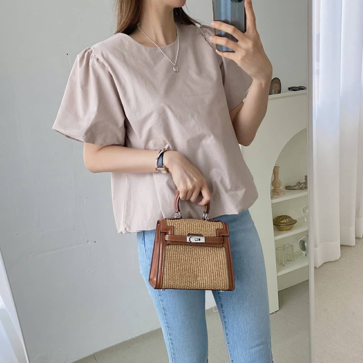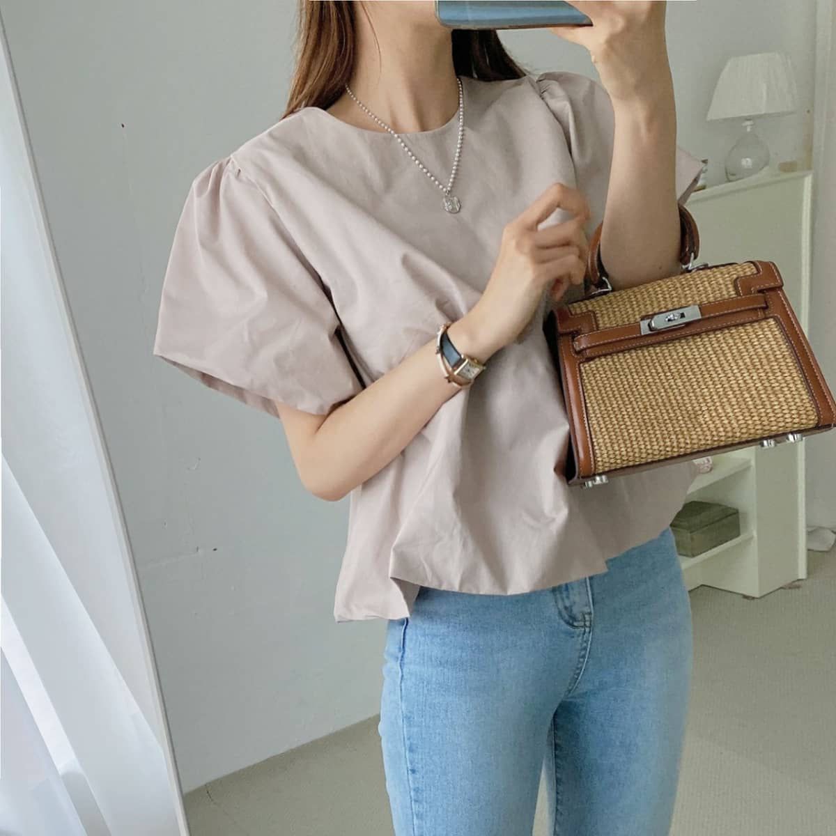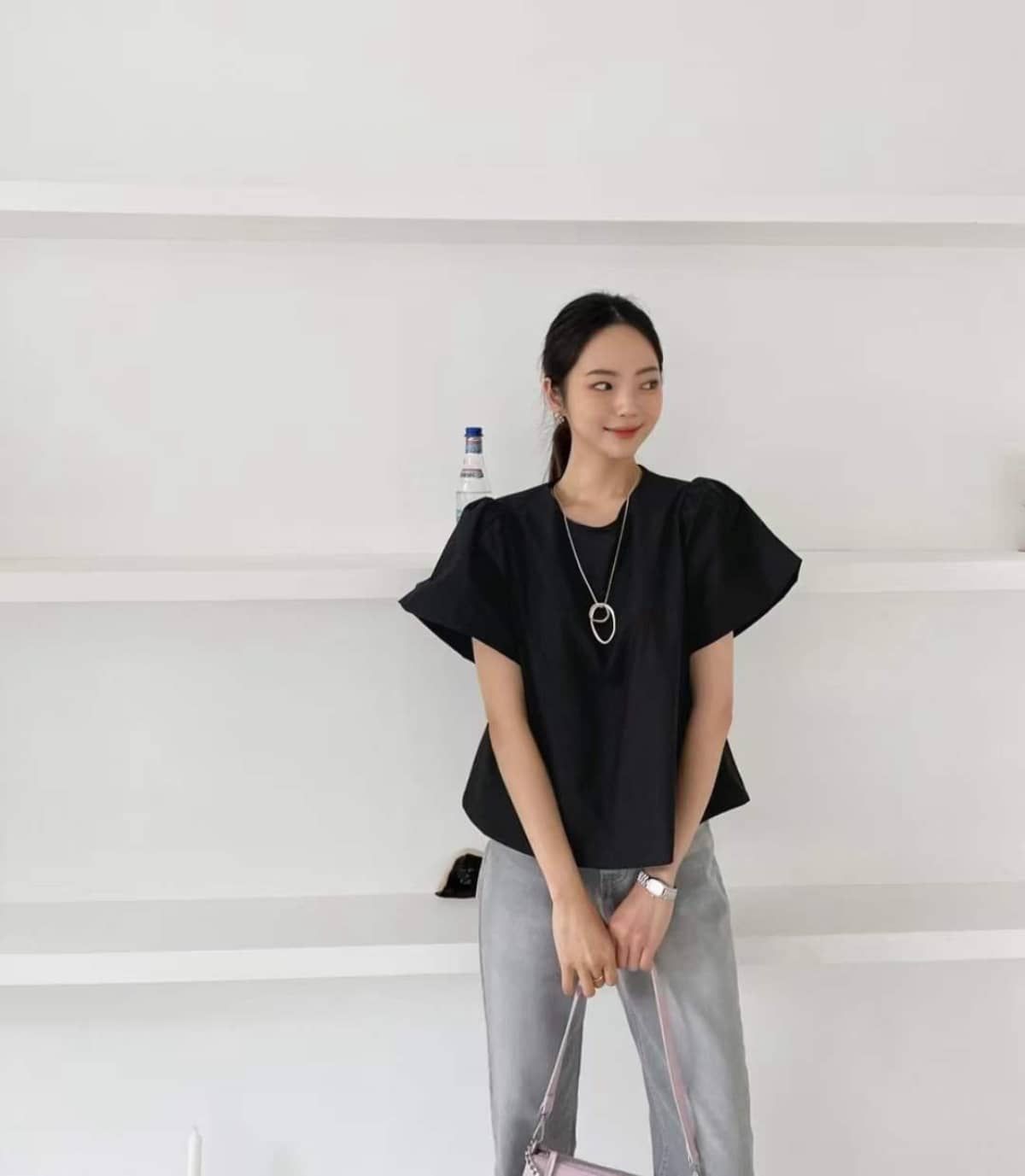 【C52430】韓國OPI 挺版A字上衣-立體雙層澎袖下襬束口花苞短袖素面★★