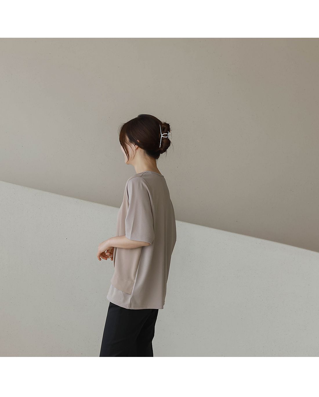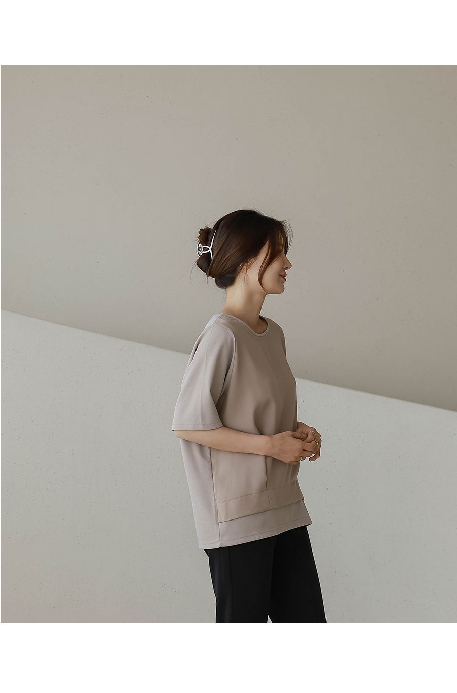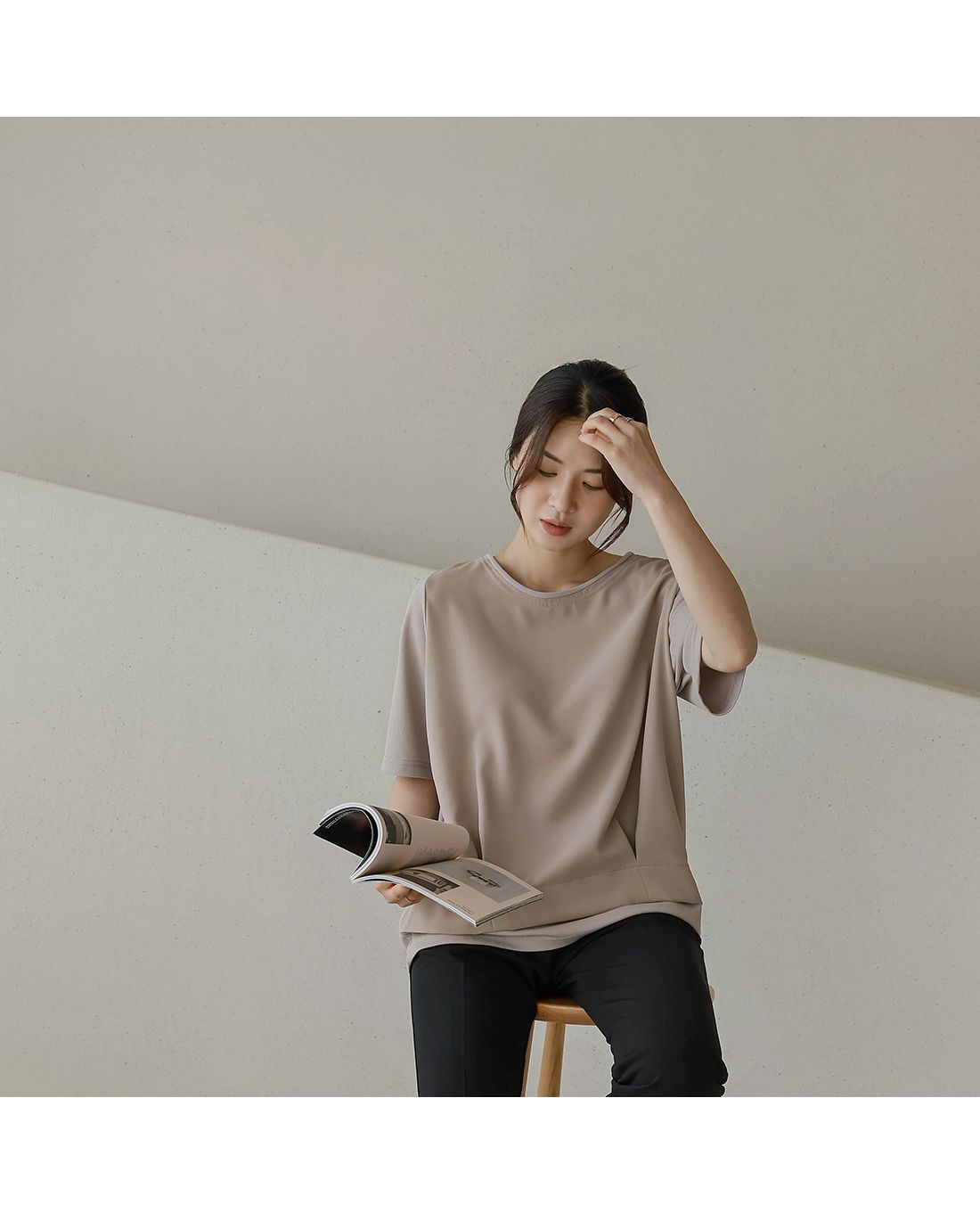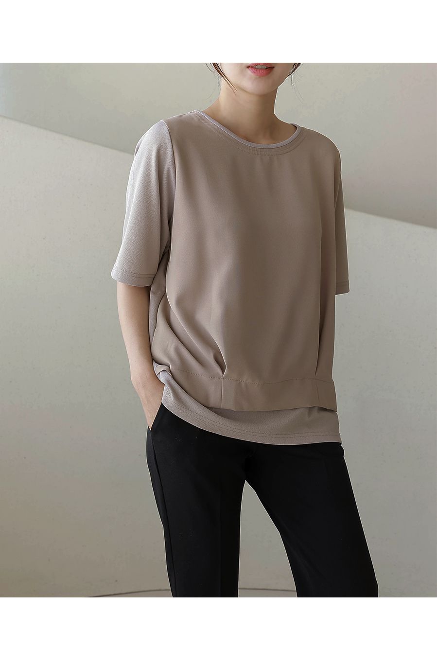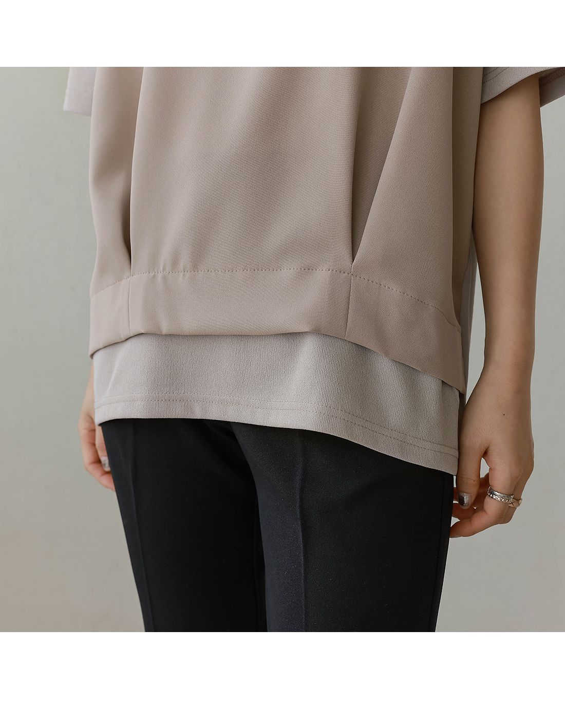 【C52537】韓國BLG 雙褶素面上衣-雙材質拼接假兩件寬鬆多尺寸五分袖★★
