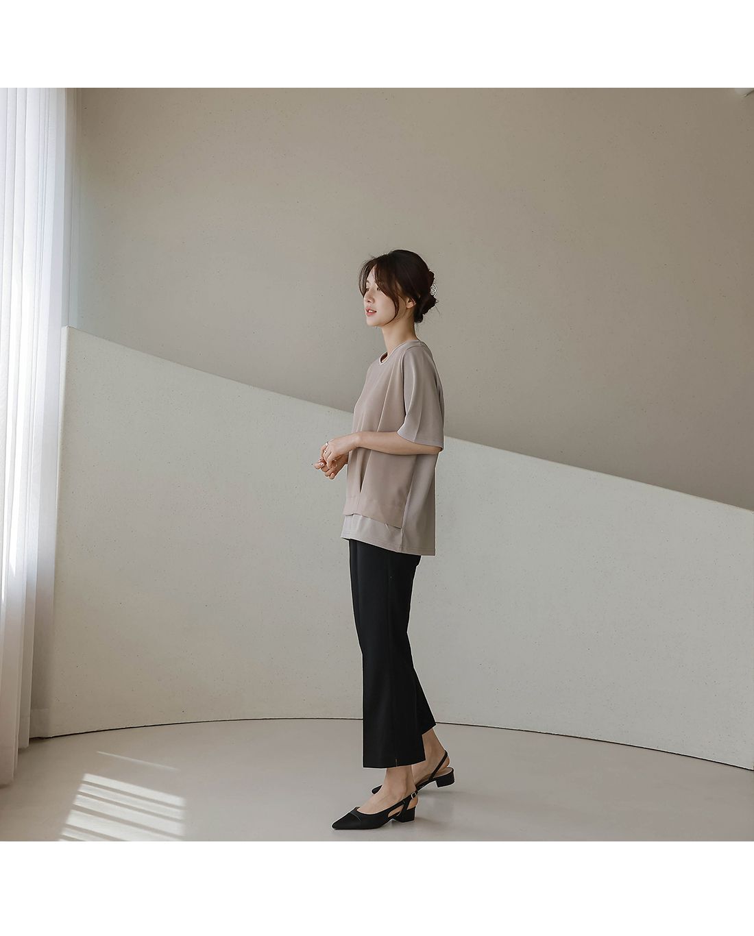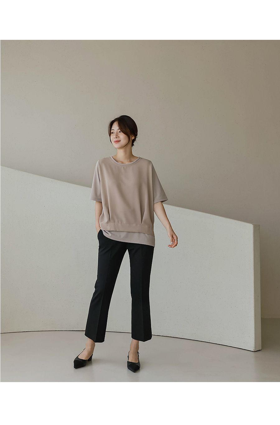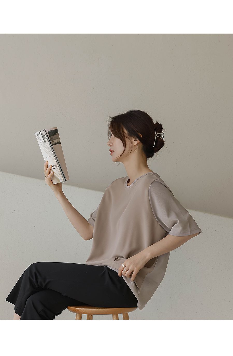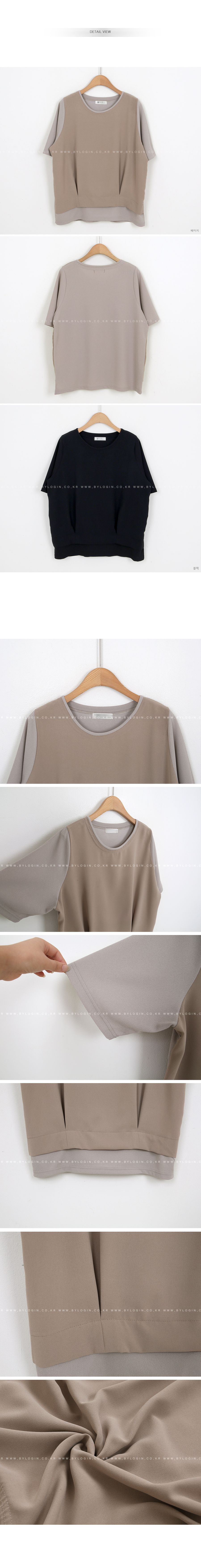 【C52537】韓國BLG 雙褶素面上衣-雙材質拼接假兩件寬鬆多尺寸五分袖★★