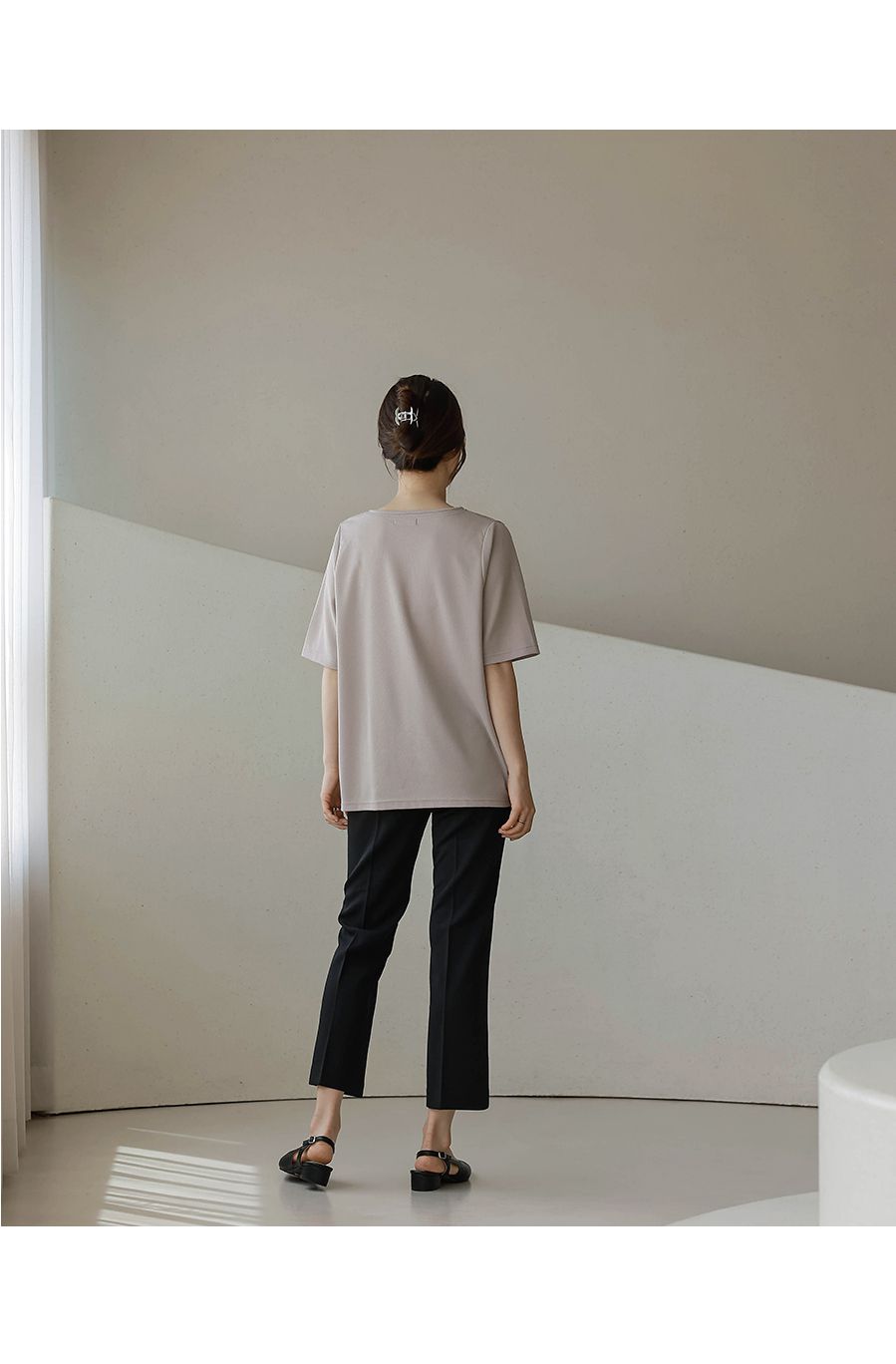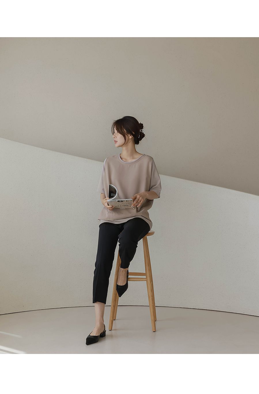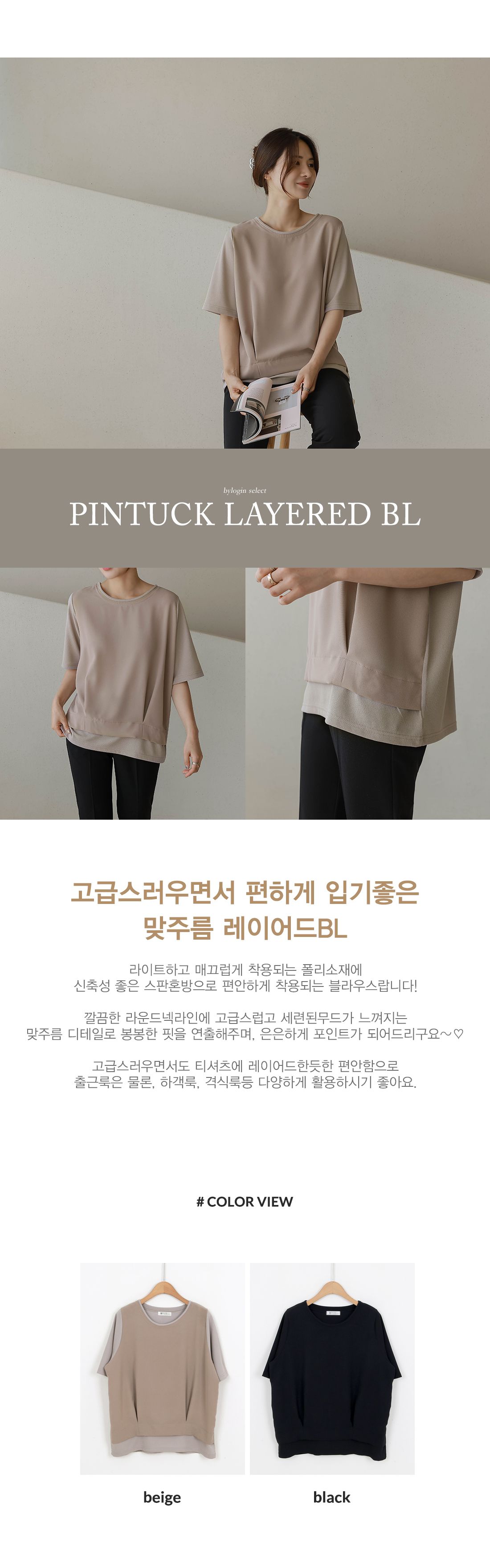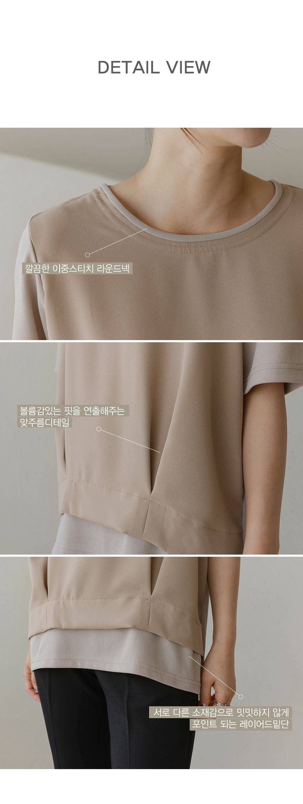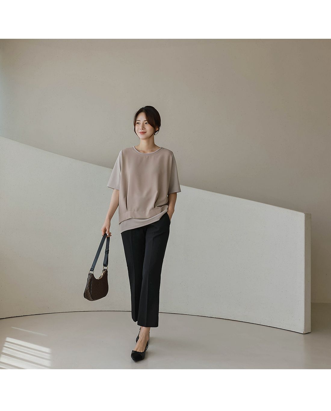 【C52537】韓國BLG 雙褶素面上衣-雙材質拼接假兩件寬鬆多尺寸五分袖★★