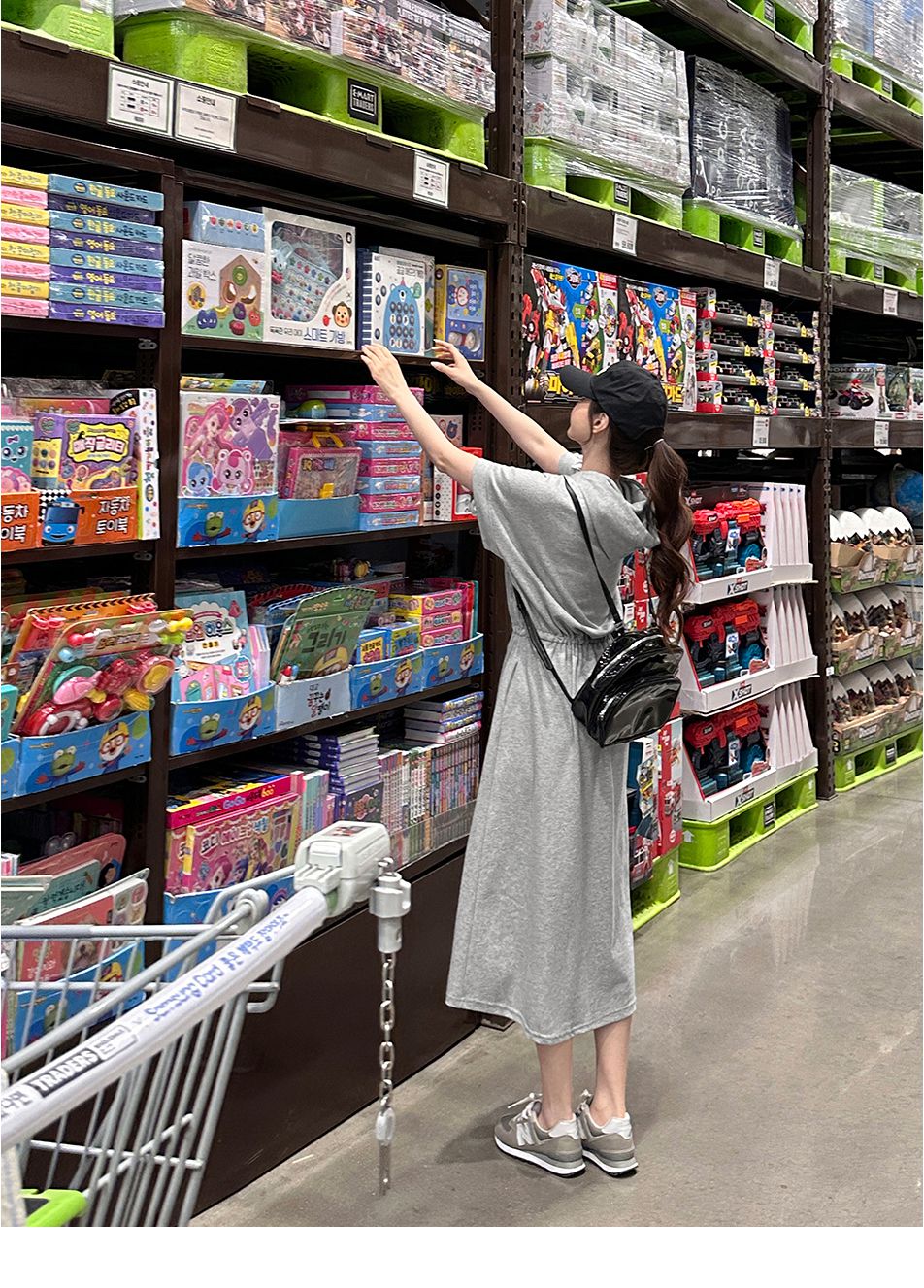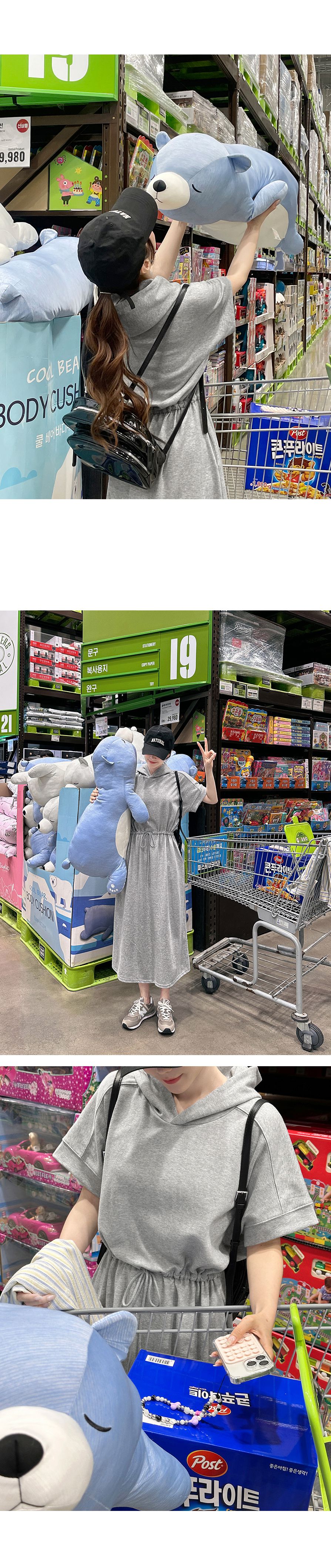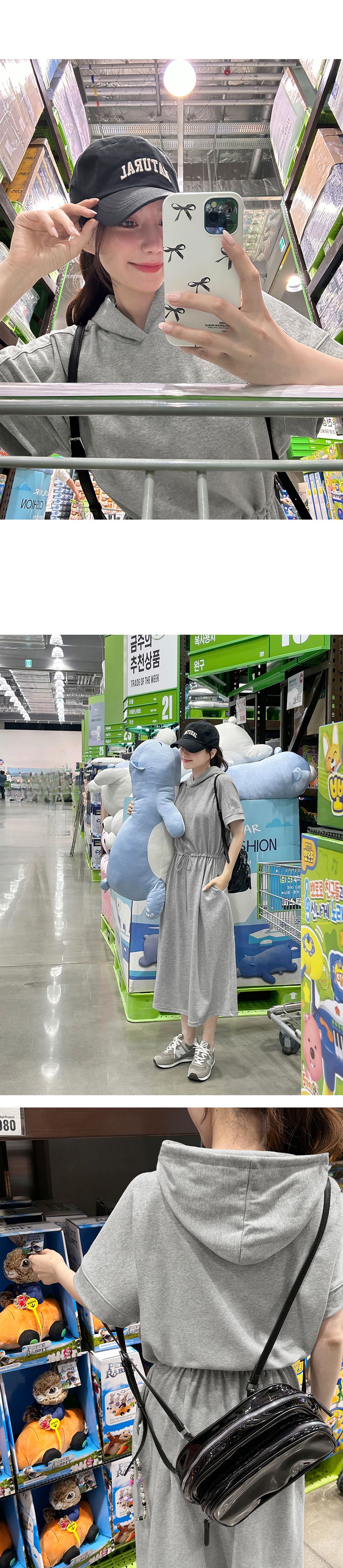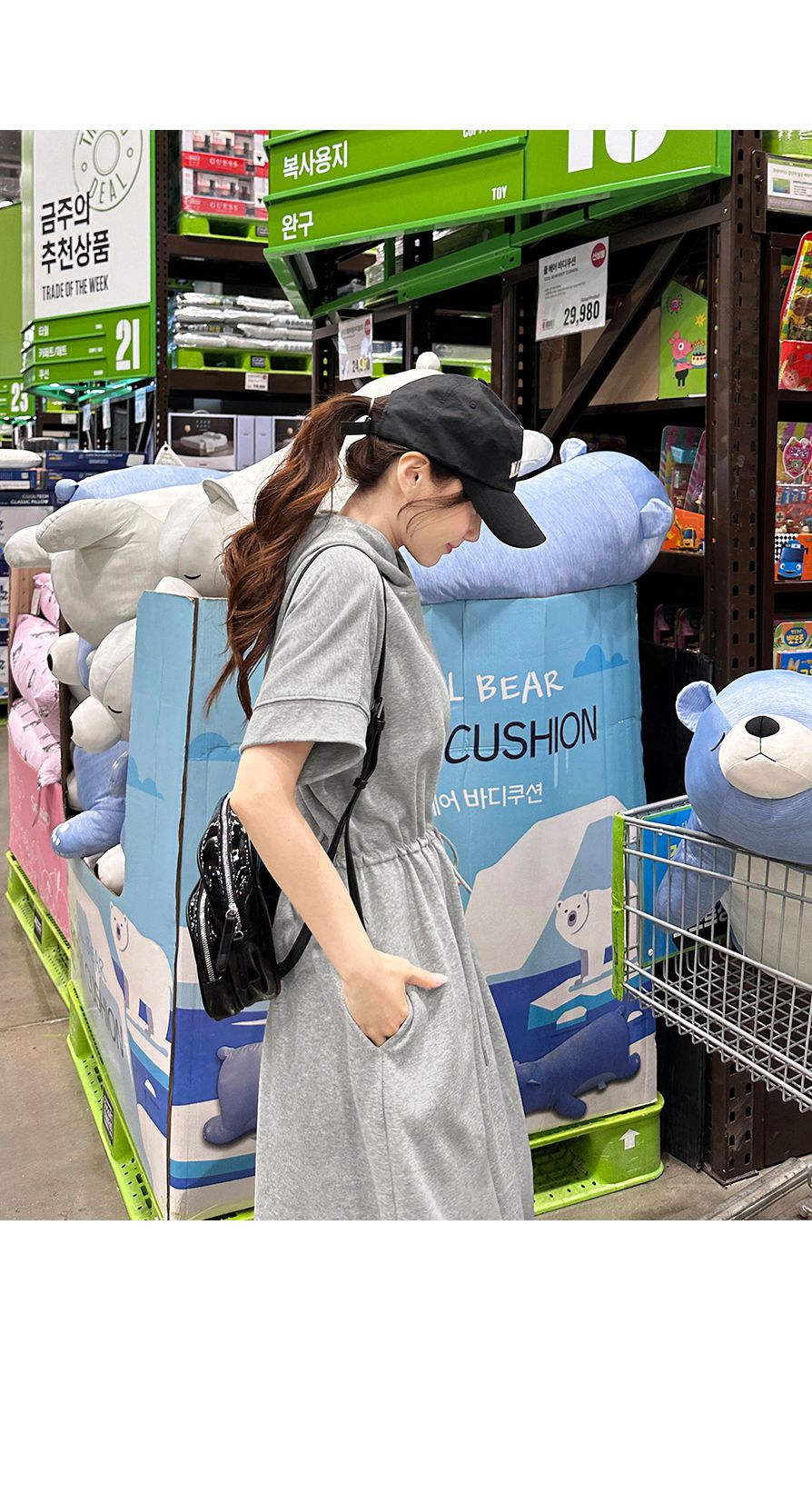 【C52593】韓國MID 收腰連帽洋裝-運動風素面抽繩腰連肩短袖大尺碼★★