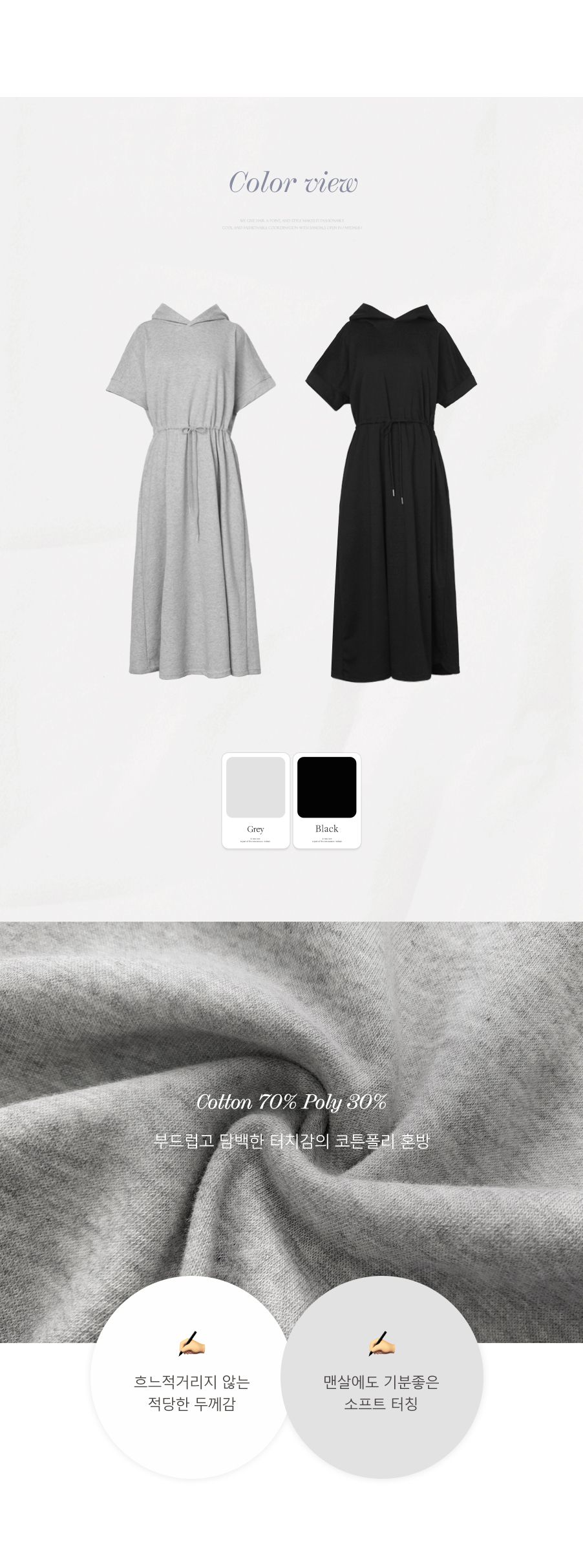 休閒居家渡假簡約百搭素面運動洋裝收腰連帽洋裝收腰洋裝運動風抽繩腰抽繩收腰連肩袖連袖飛鼠袖短袖洋裝寬鬆大尺碼洋裝一件式洋裝連身裙灰色黑色