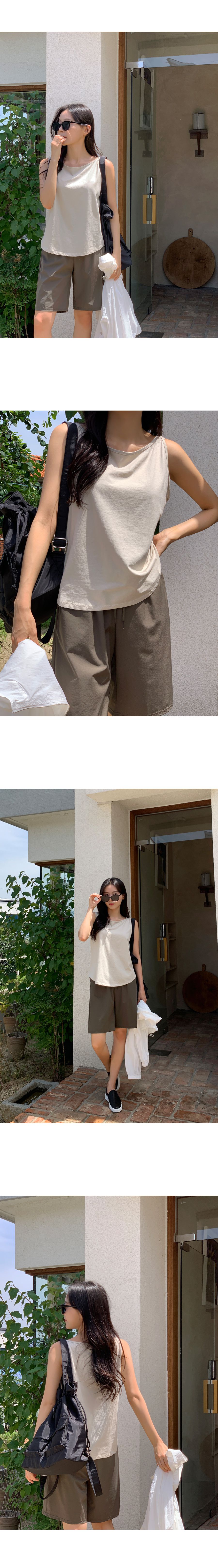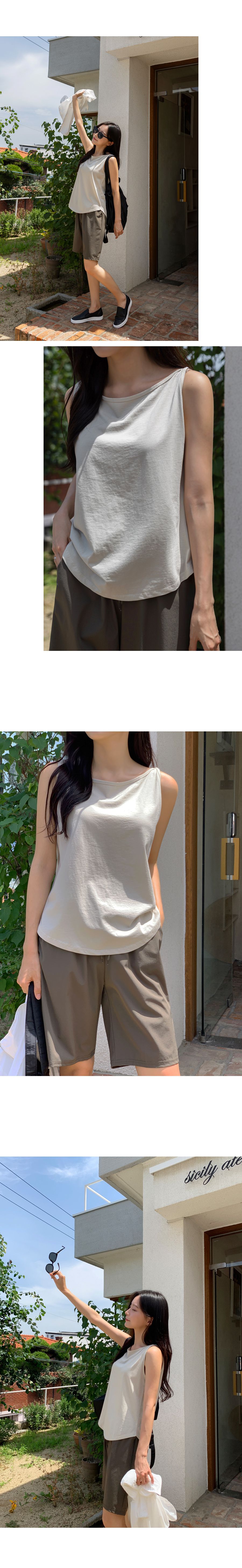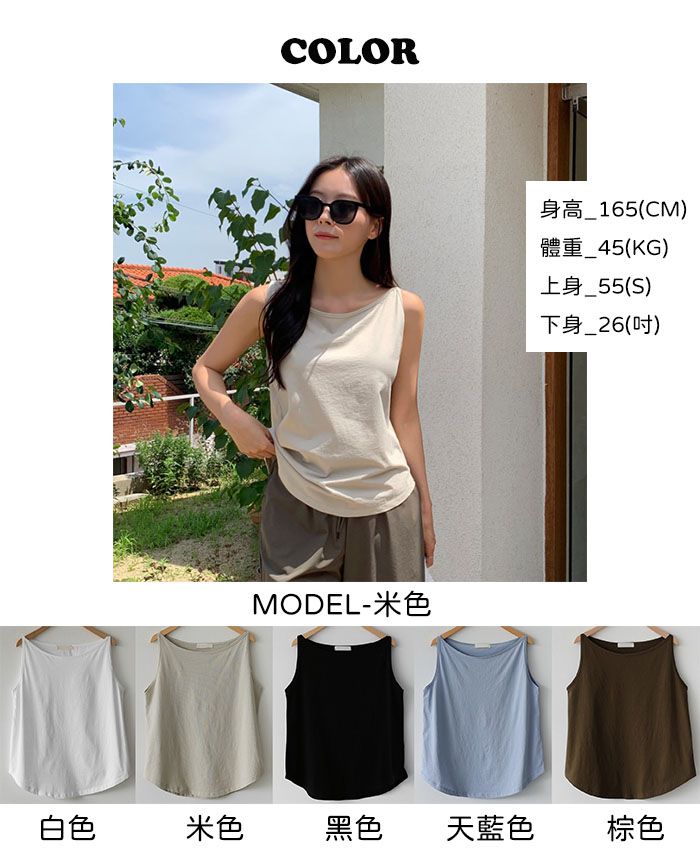 素面內搭基本款/不卡脖子船領設計/接點設計肩線 - 休閒居家簡約百搭素面船領素面背心上衣船領背心一字領背心上衣接點肩線弧形下襬棉質上衣內搭背心無袖上衣白色米色黑色天藍色棕色