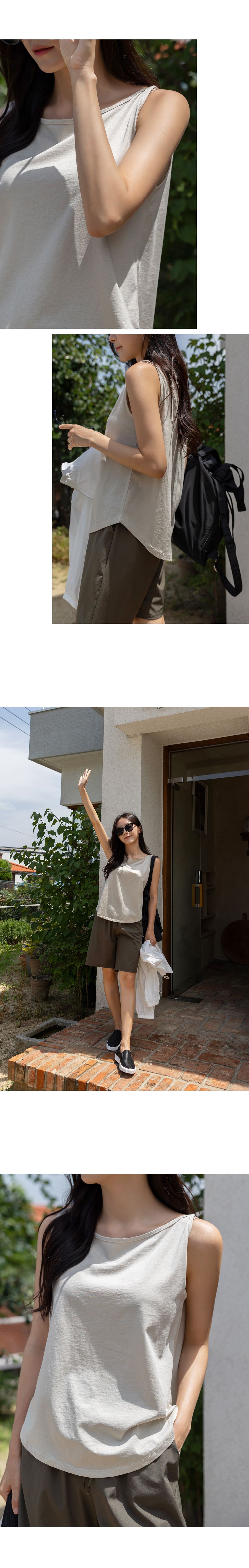 【C52751】韓國PUR 大U領背心-接點肩線弧形下襬棉質內搭無袖上衣★★