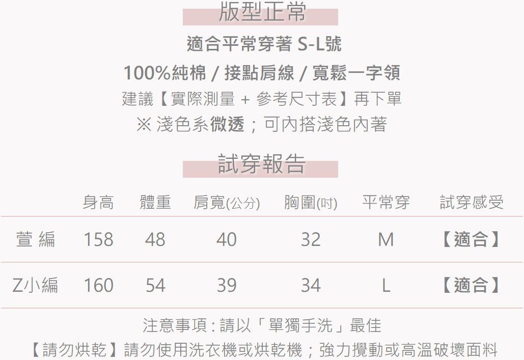 尺寸 | 肩寬 | 胸寬 | 腋下寬 | 腰圍 | 臀圍 | 全長 | 領口 | FREE | 29 | 46 | 17 | 46.5 | 49 | 55 | 寬27/深6 | 材質 | 產地 | 透光度 | 厚度 | 彈性情況 | 建議洗滌 | 棉質 | 韓國 | 淺色系 輕微透 | 薄 | 有彈性 | 手洗乾洗 |
