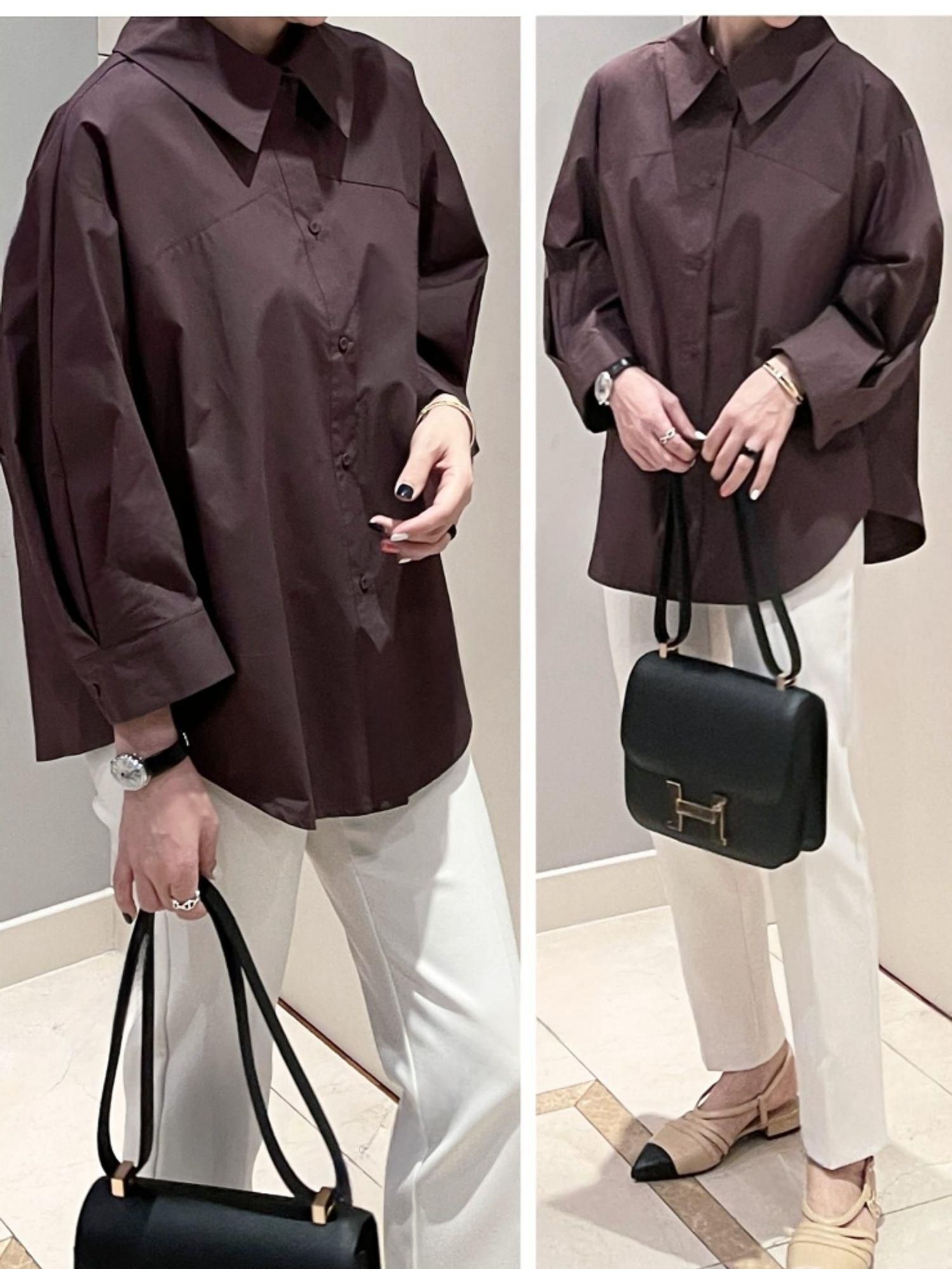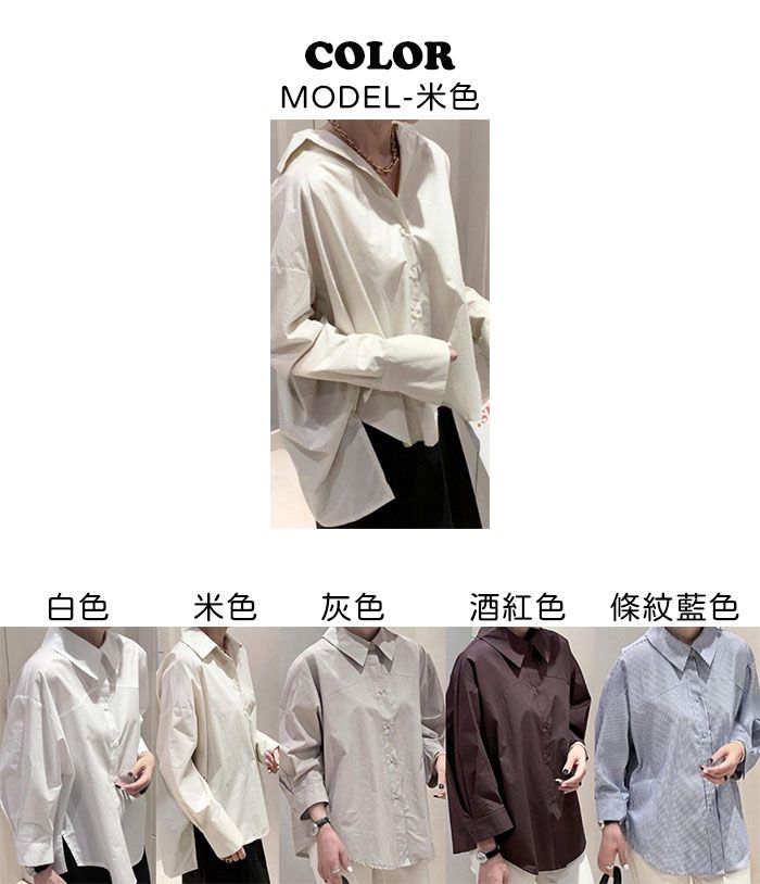 正式場合必備/OL必備款/率性寬鬆襯衫-休閒居家簡約百搭素面條紋側開衩寬鬆大尺碼圓弧下襬七分袖寬袖切線造型開襟排釦上衣襯衫白色米色灰色酒紅色條紋藍色