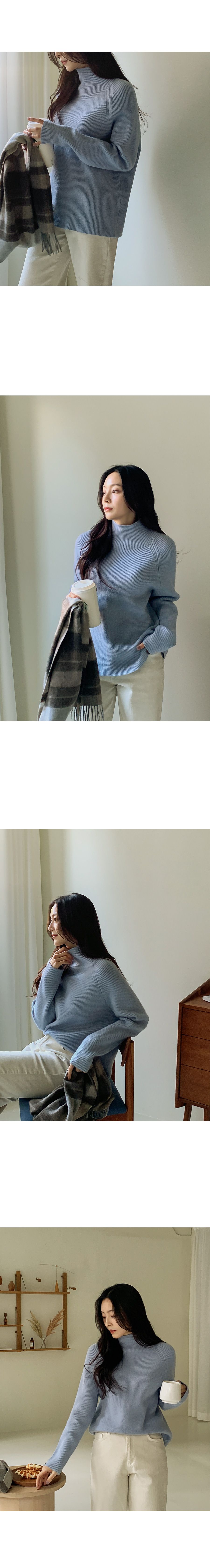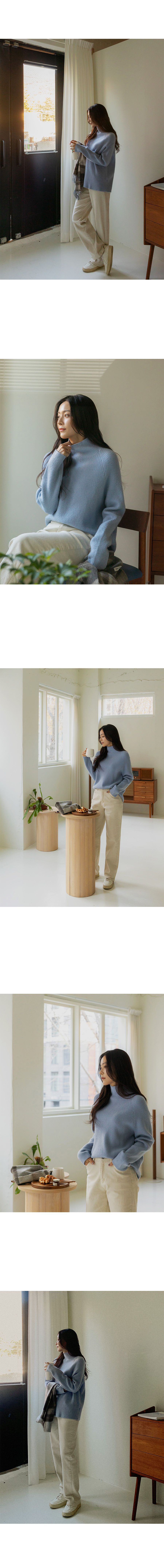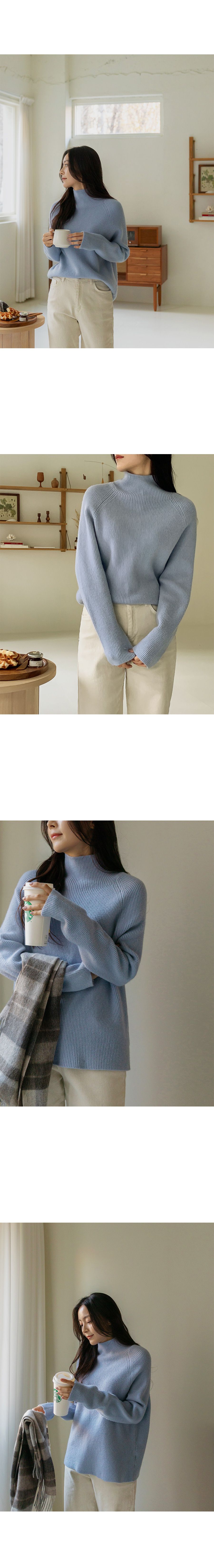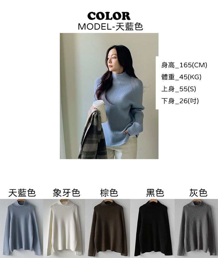 厚磅混羊毛/柔軟蓬鬆/保暖立領 - 休閒居家簡約百搭素面立領針織衫針織上衣厚磅混羊毛上衣連肩袖連袖長袖上衣天藍色象牙色棕色黑色灰色