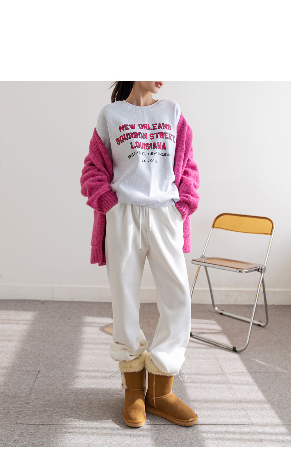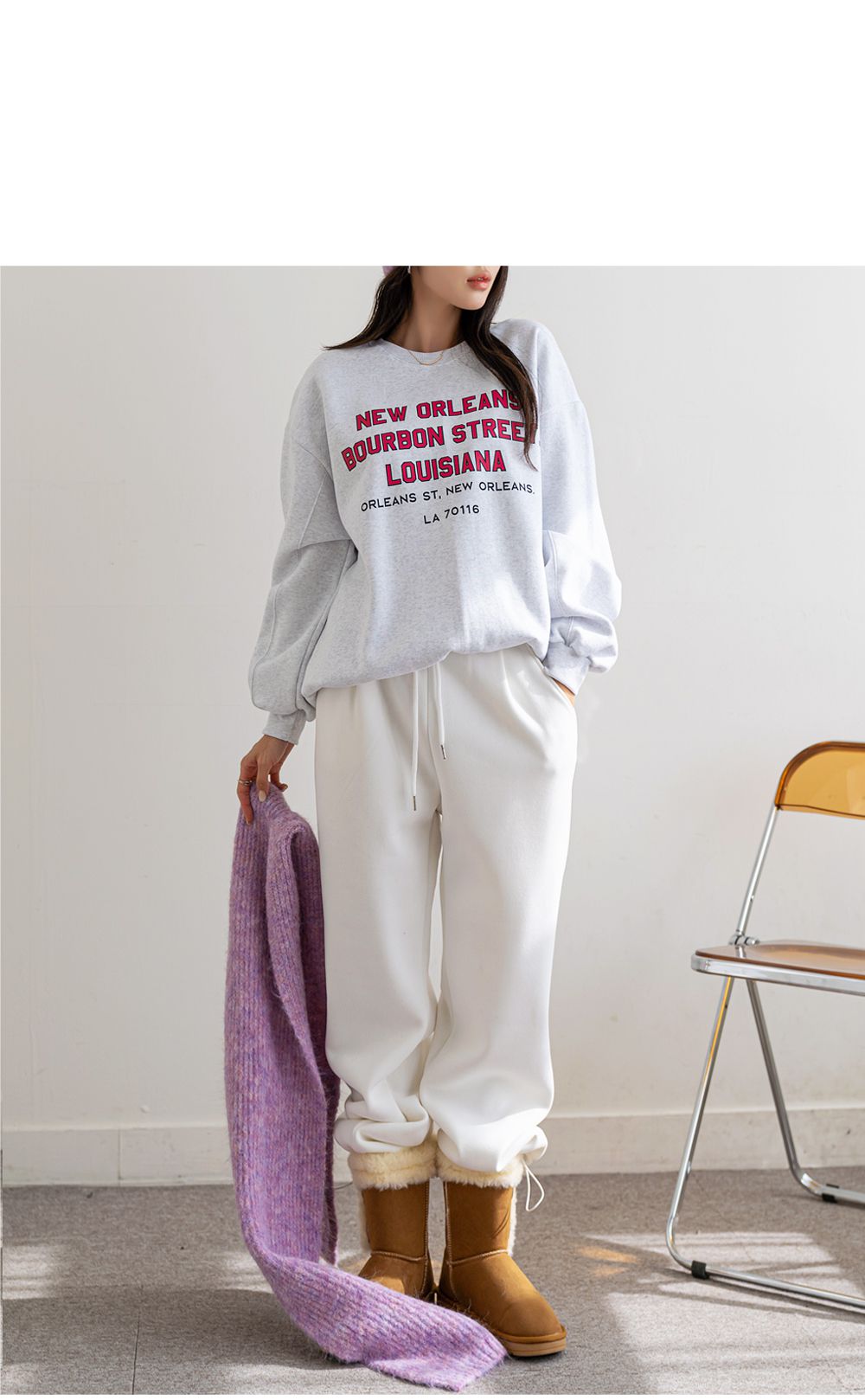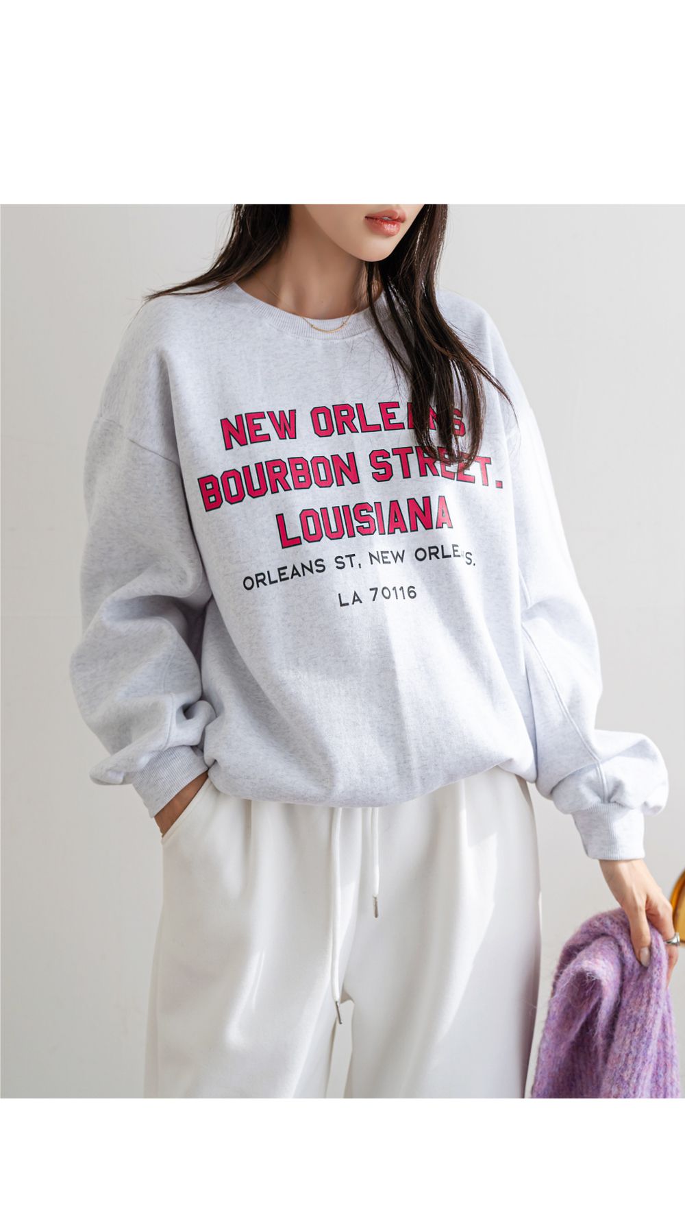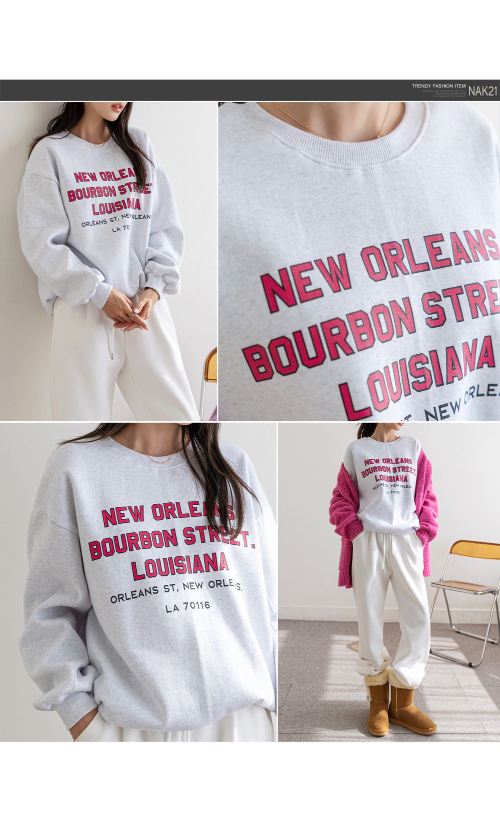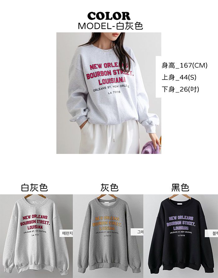 【C53488】韓國NAK 復古字母上衣-跳色膠印字母圓領內磨毛長袖T恤