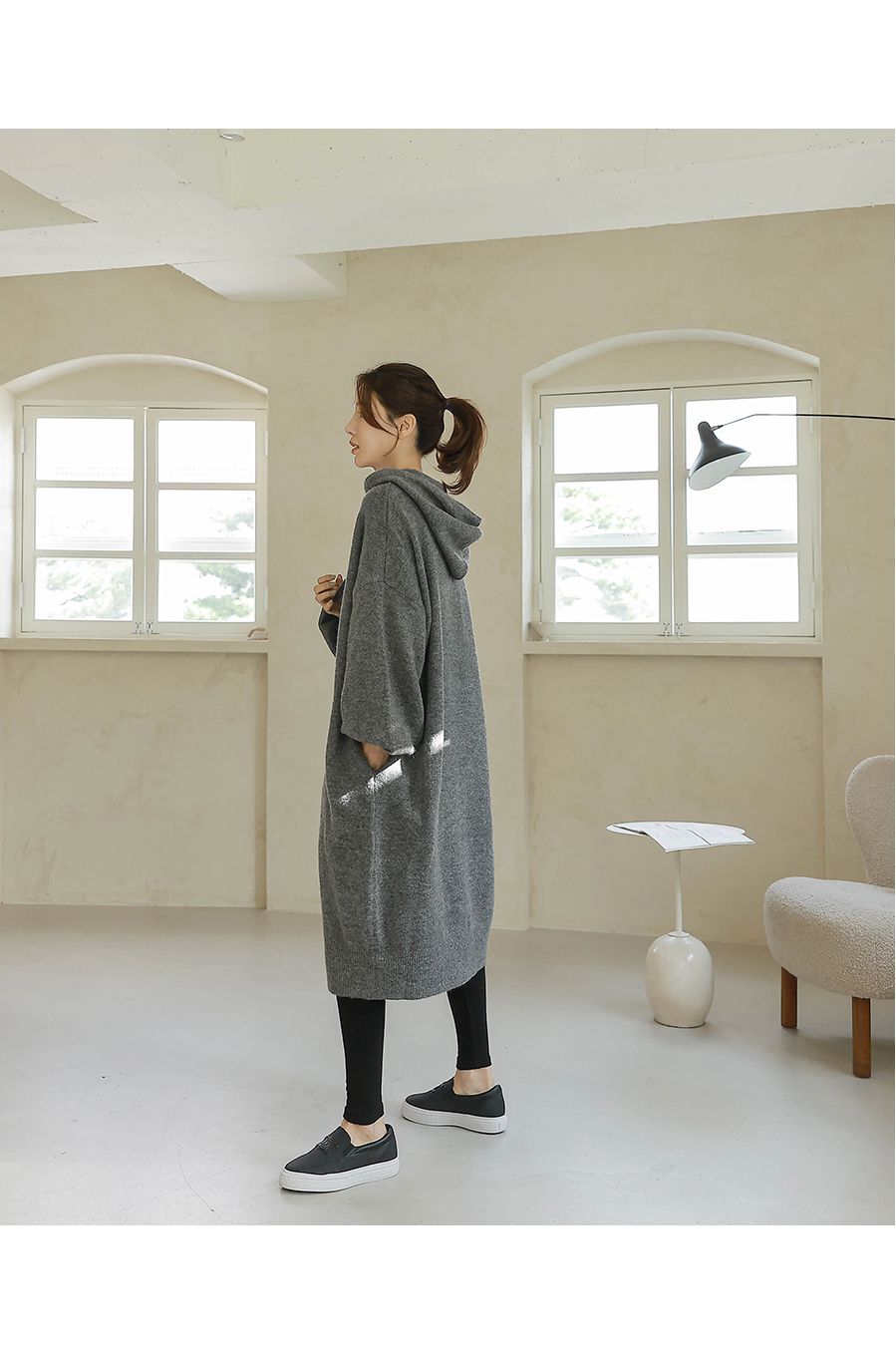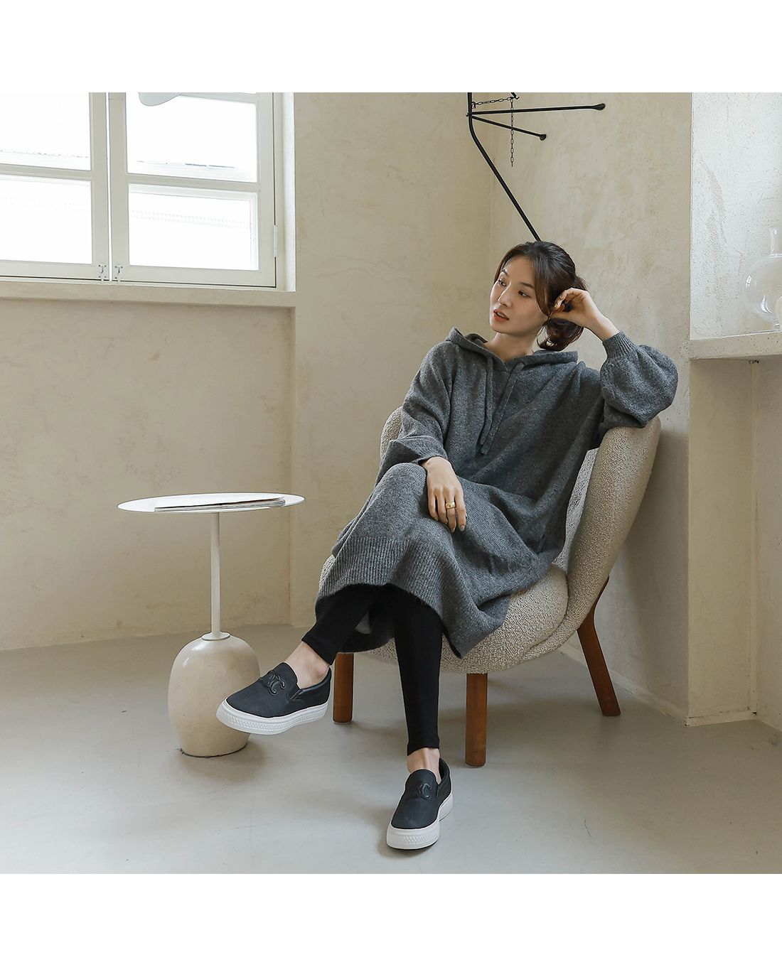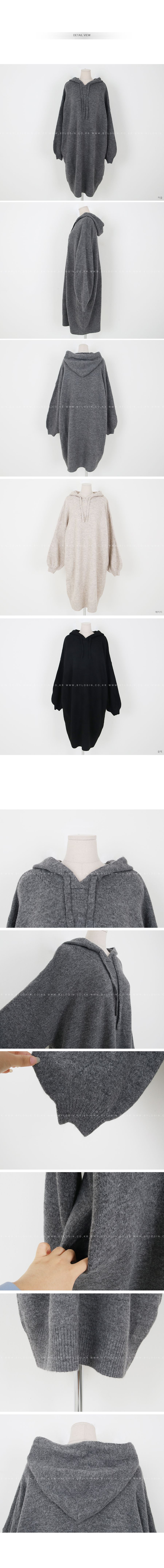 【C53591】韓國BLG 泡泡袖針織洋裝-混羊毛連帽素面寬鬆長袖連身裙★★