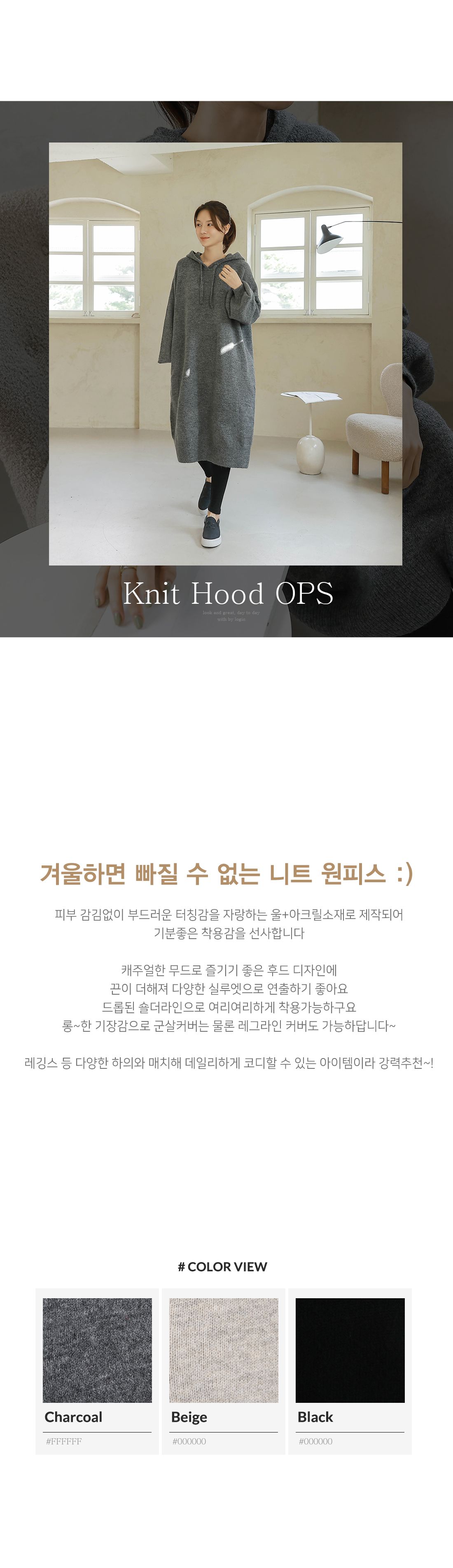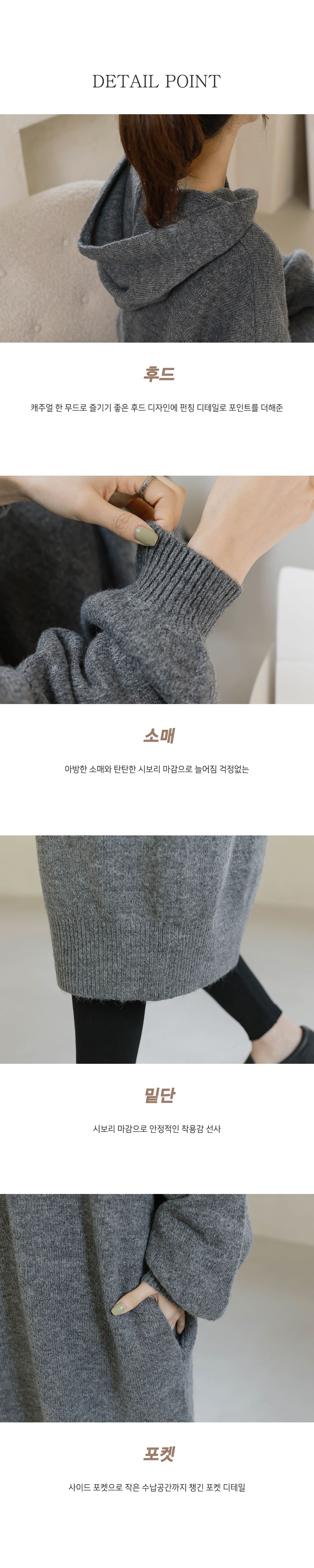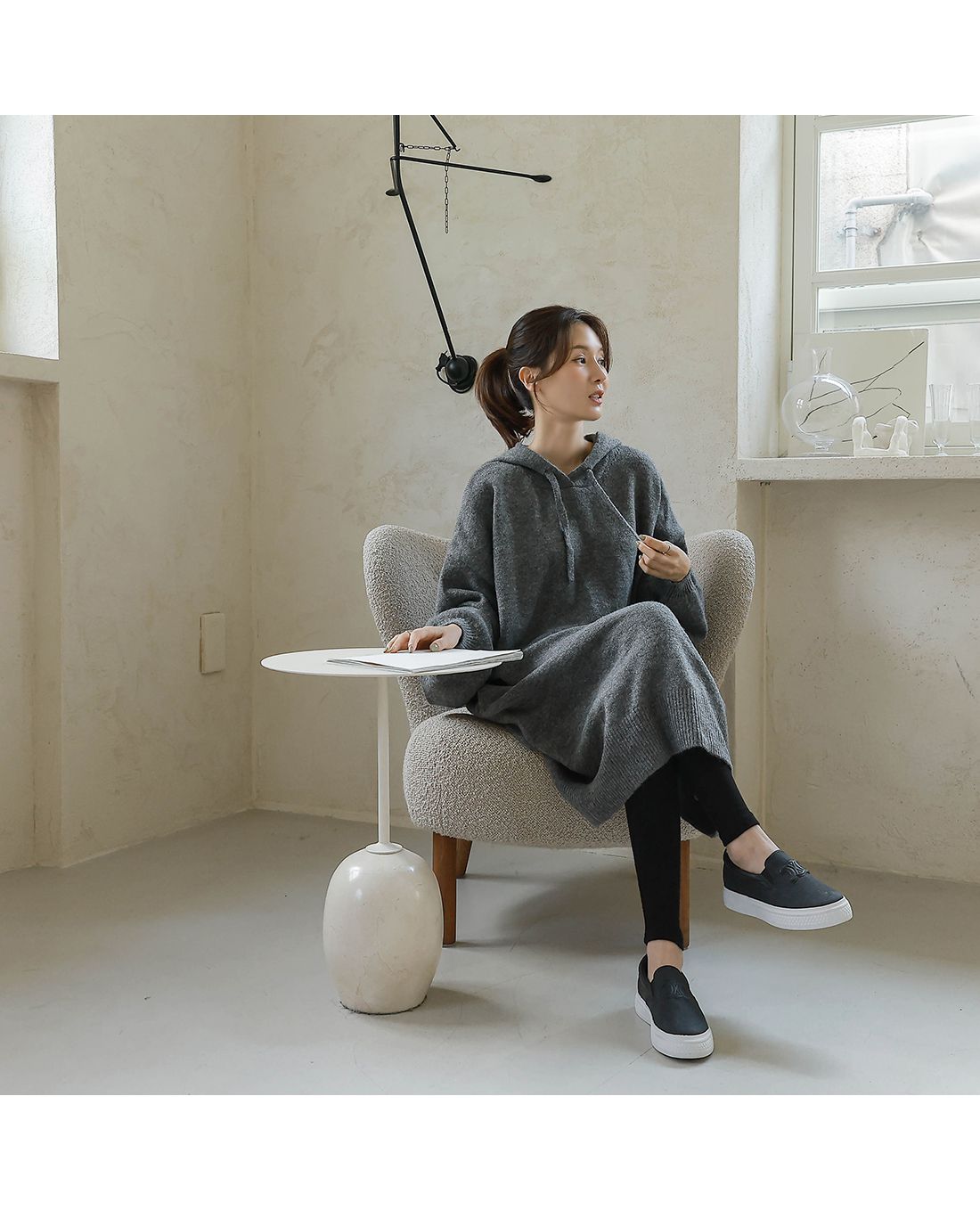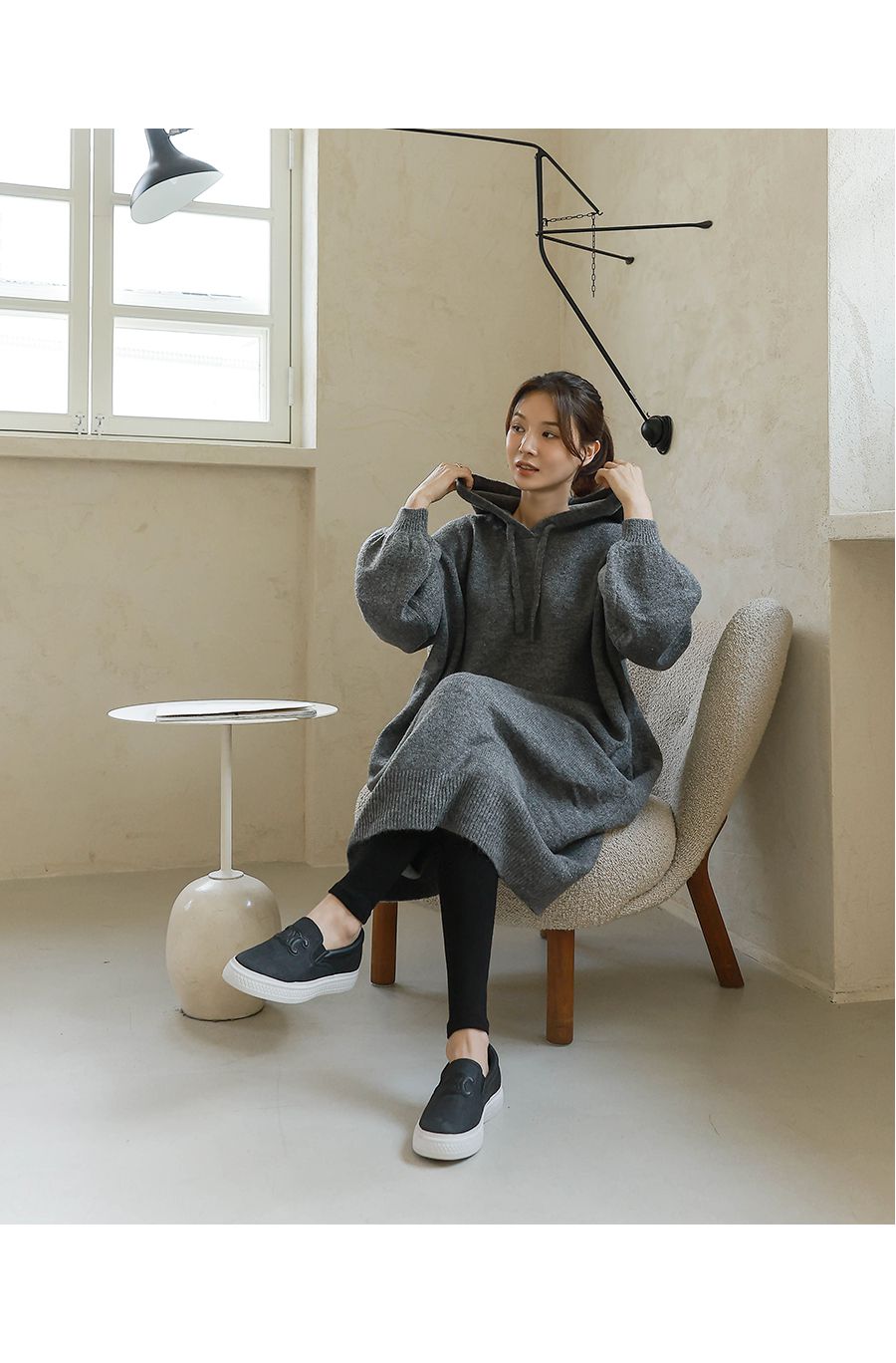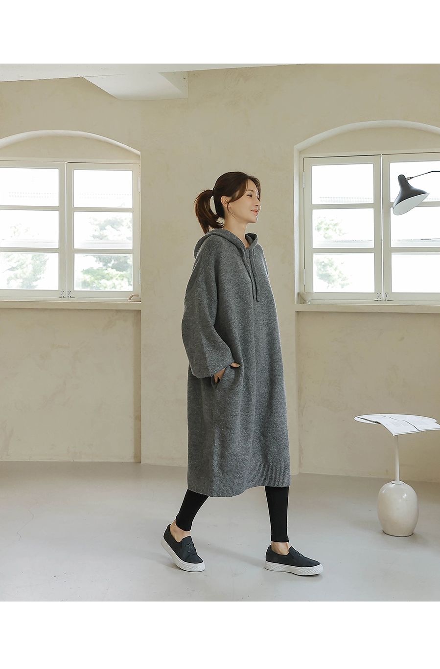保暖混羊毛面料/慵懶寬袖/抽繩連帽/寬鬆版型/大尺碼友善 - 休閒居家簡約百搭素面一件式洋裝泡泡袖針織洋裝混羊毛洋裝抽繩連帽洋裝寬鬆大尺碼洋裝長袖連身裙深灰色米色黑色
