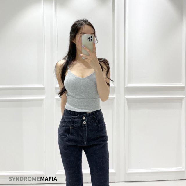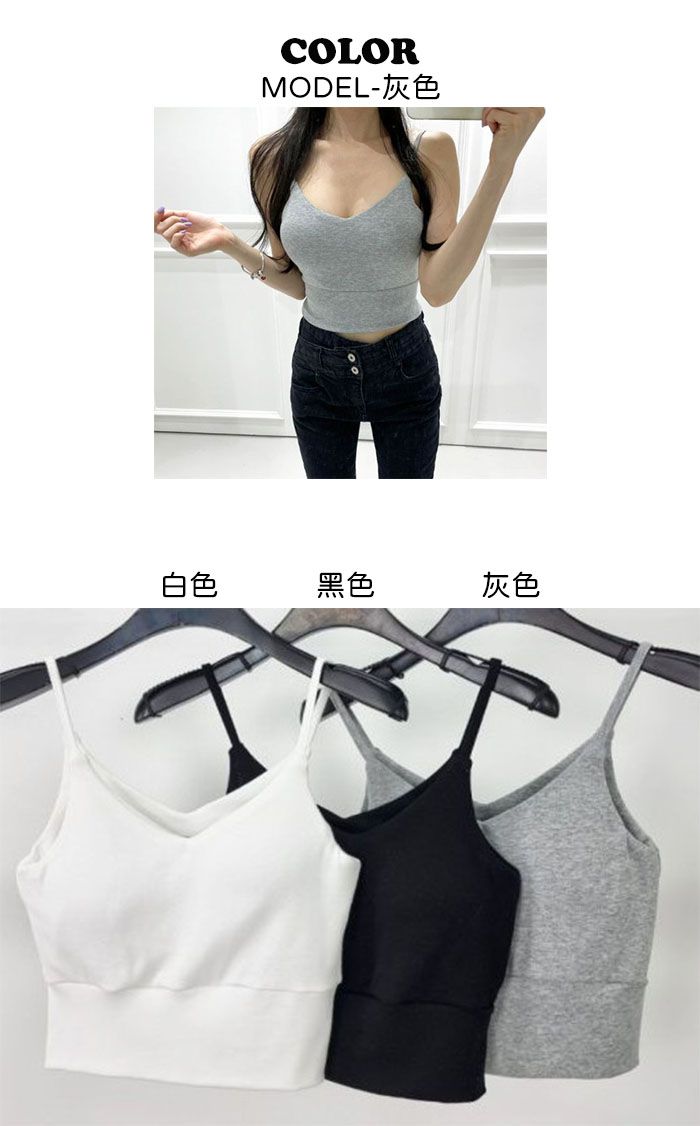 【C54095】韓國MDS 短版細肩帶背心 BRATOP-自帶胸墊露背素面無袖V領上衣