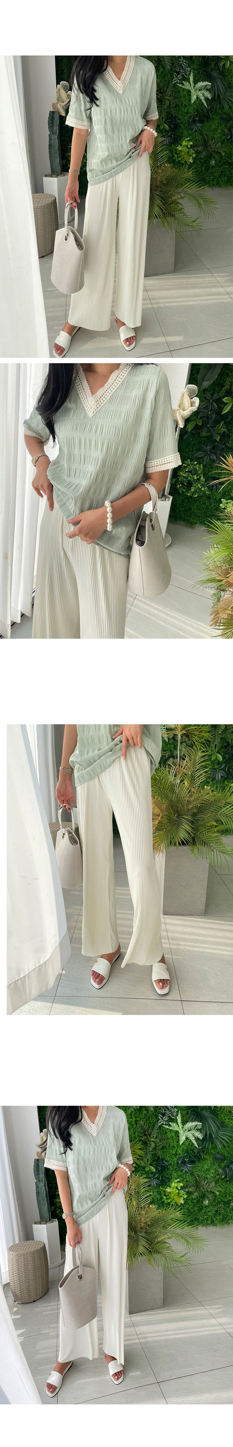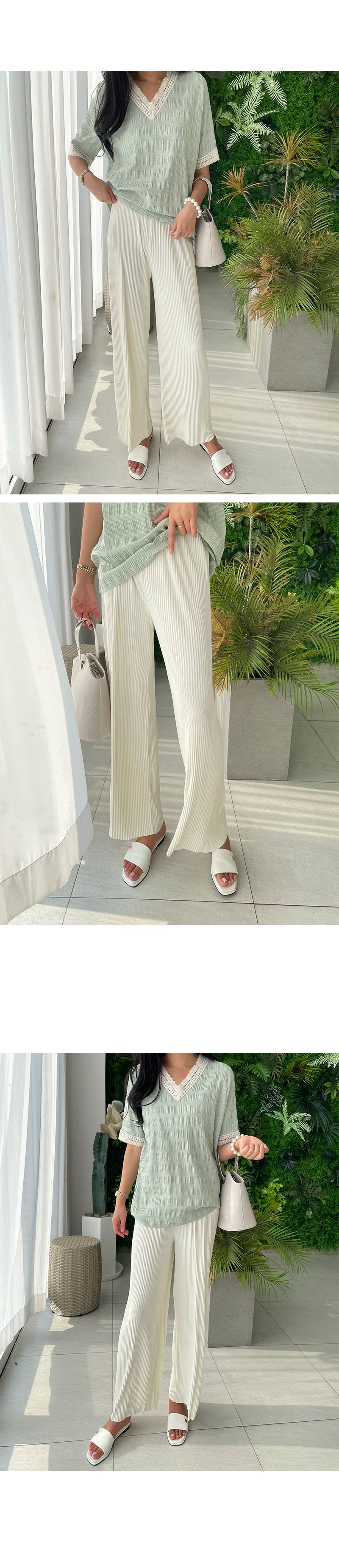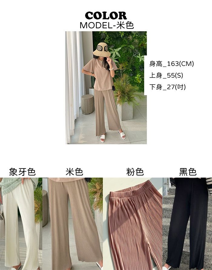 柔軟滑面/垂墜感/不收邊/無口袋/立體百褶壓紋 - 休閒居家渡假簡約百搭素面果凍感褶襉褲百褶褲全腰鬆緊直筒褲長褲象牙色米色粉色黑色