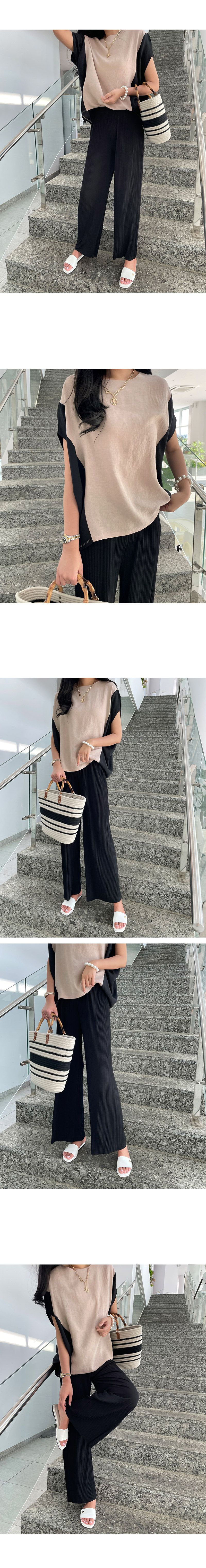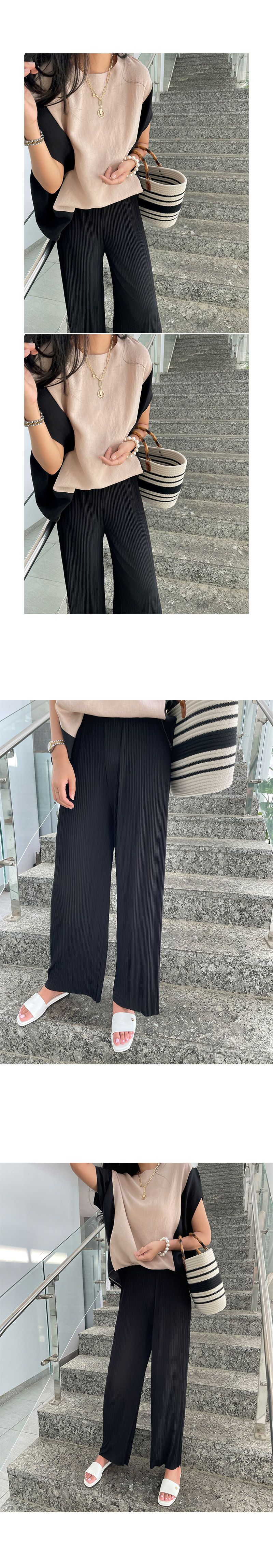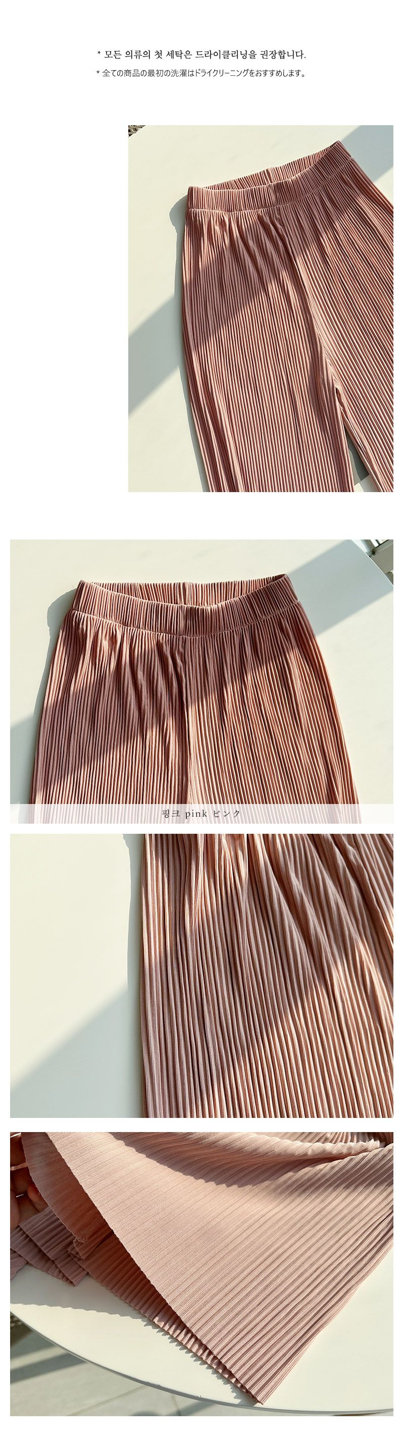 【C54274】韓國MNR 果凍感褶襉褲-素面全腰鬆緊不收邊百褶直筒長褲