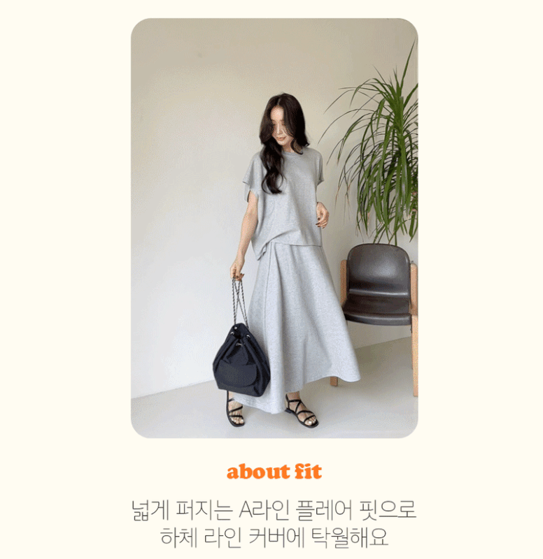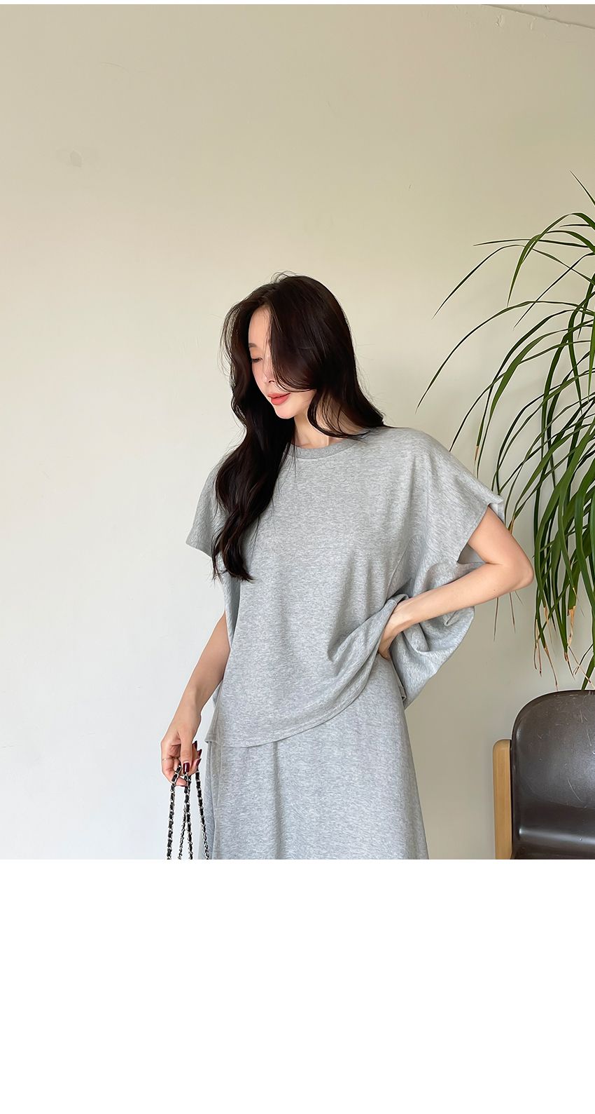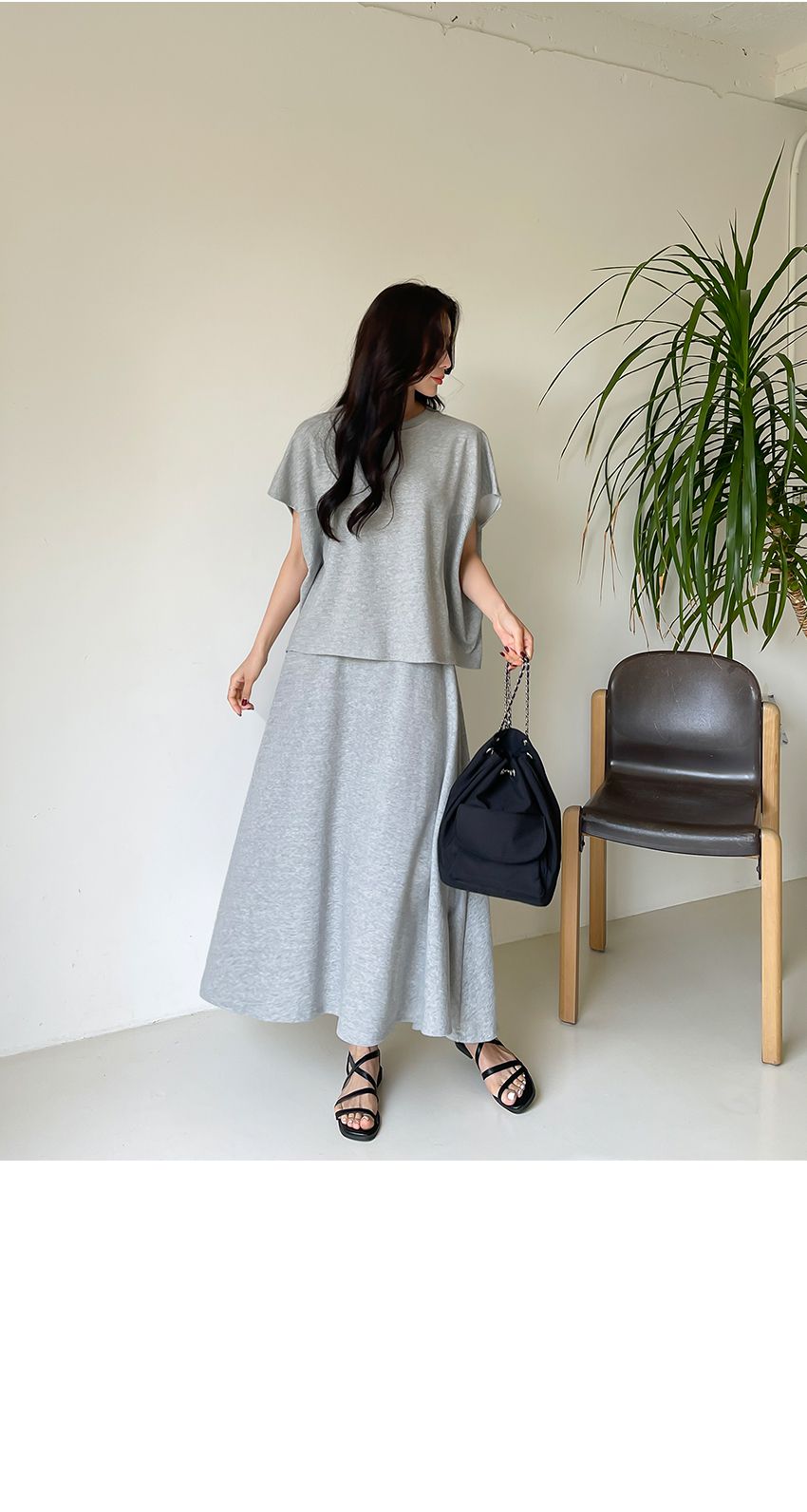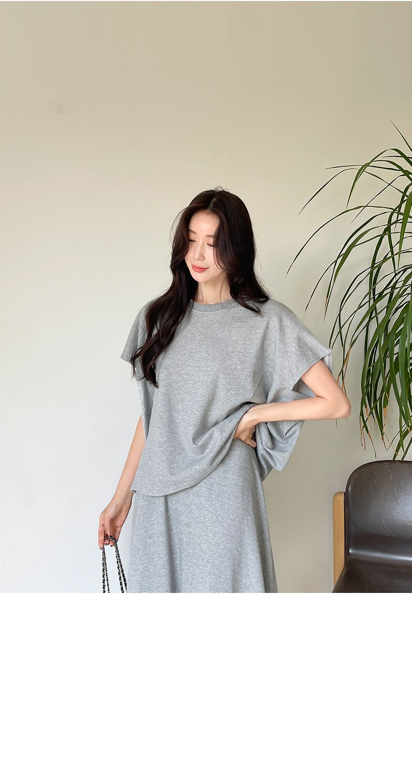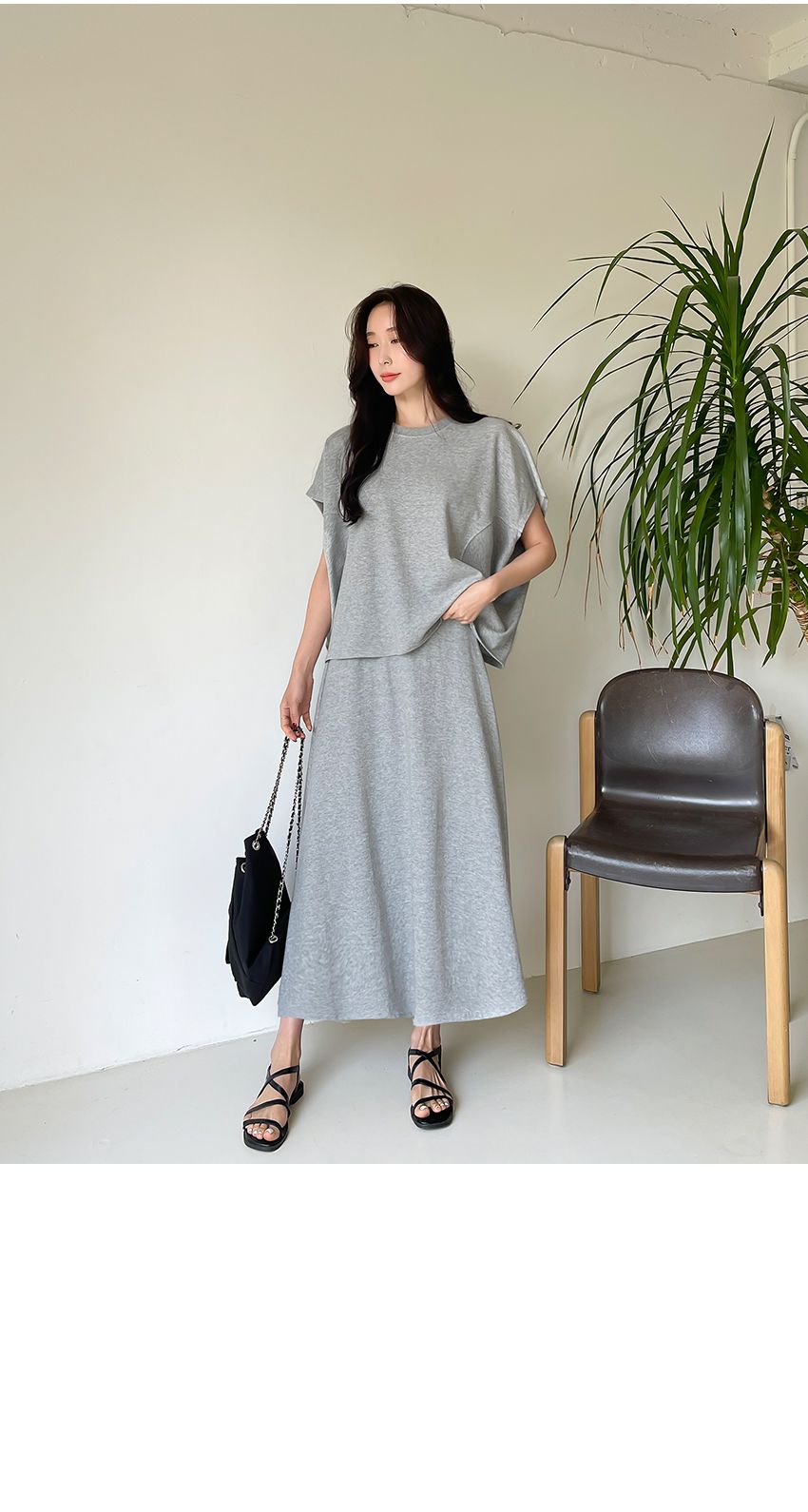 【C54487】韓國PSS 喇叭裙套裝-後開衩飛鼠短袖上衣+素面傘狀長裙