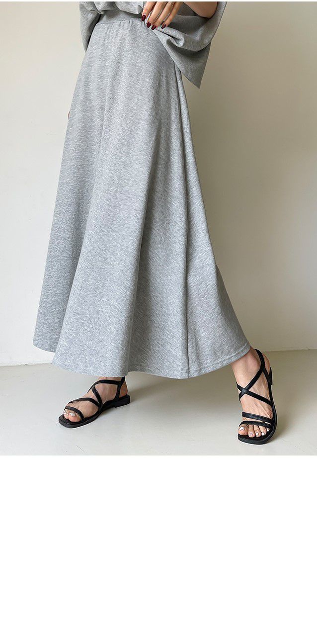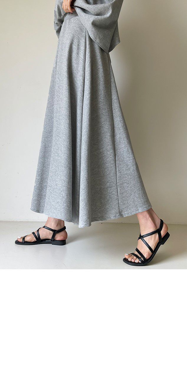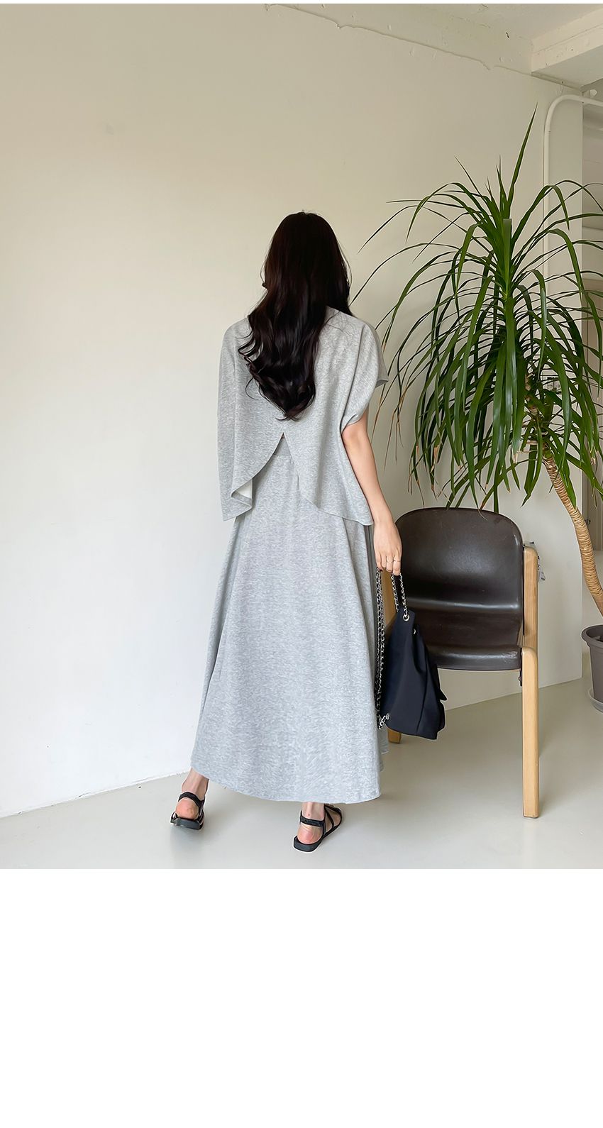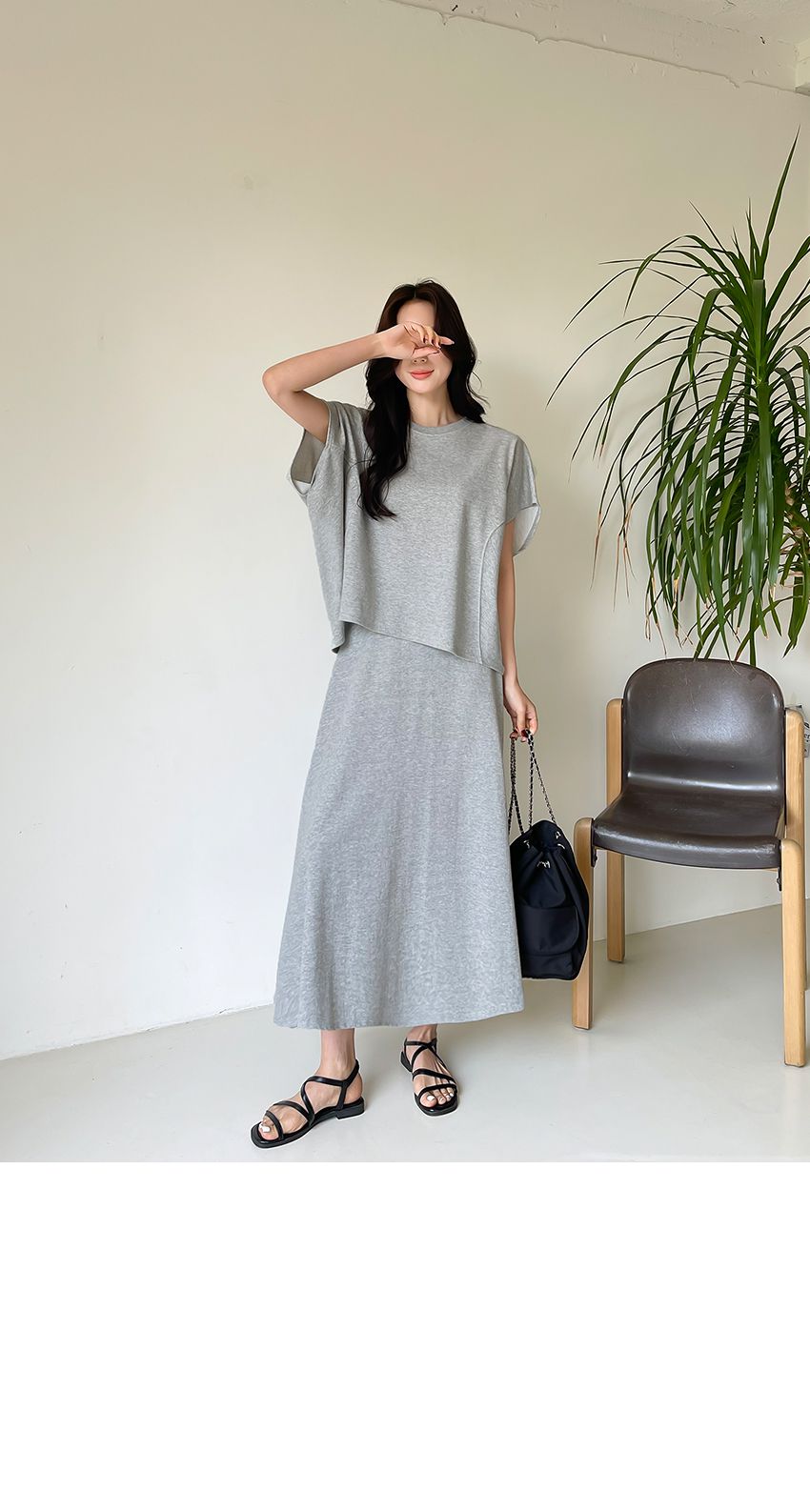 超值兩件組/內切腰線/圓領/連肩袖/後背交叉開衩/寬袖/全腰鬆緊/無口袋花瓣裙 - 休閒居家簡約百搭素面兩件式套裝喇叭裙套裝後開衩飛鼠短袖上衣傘狀長裙灰色黑色