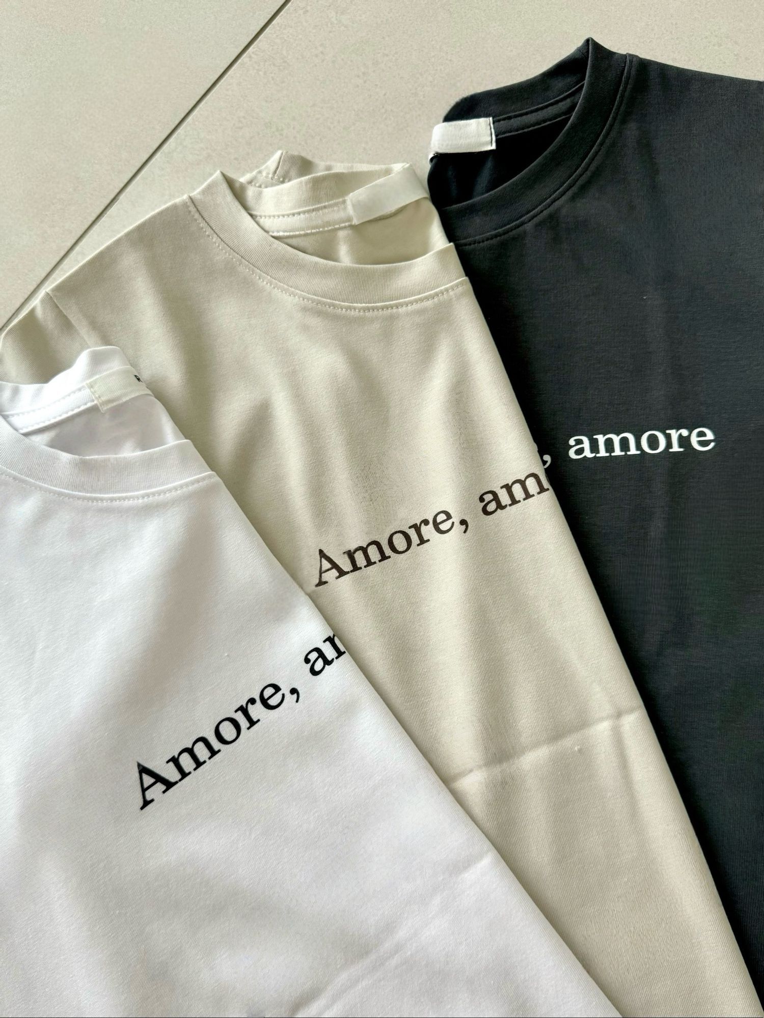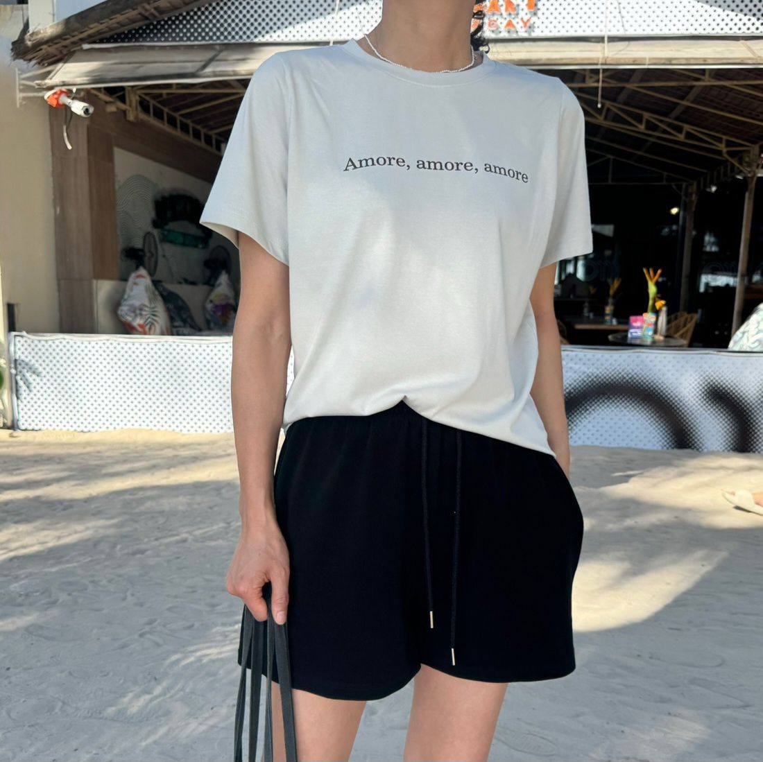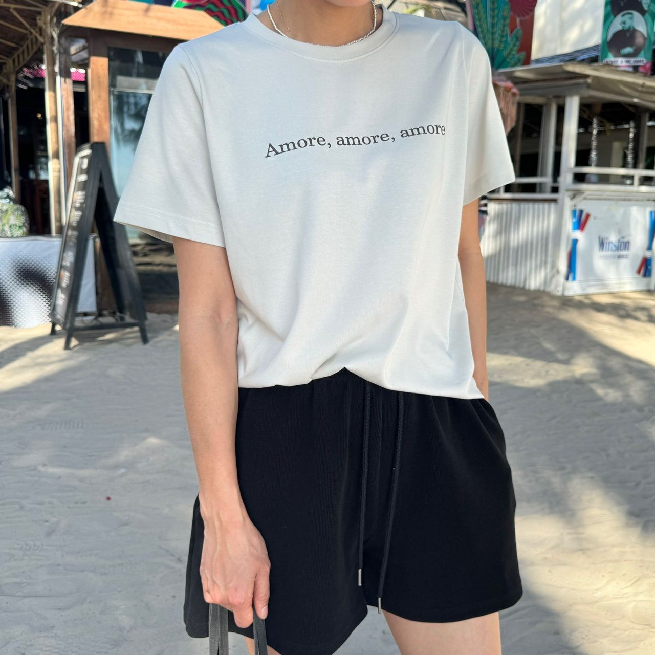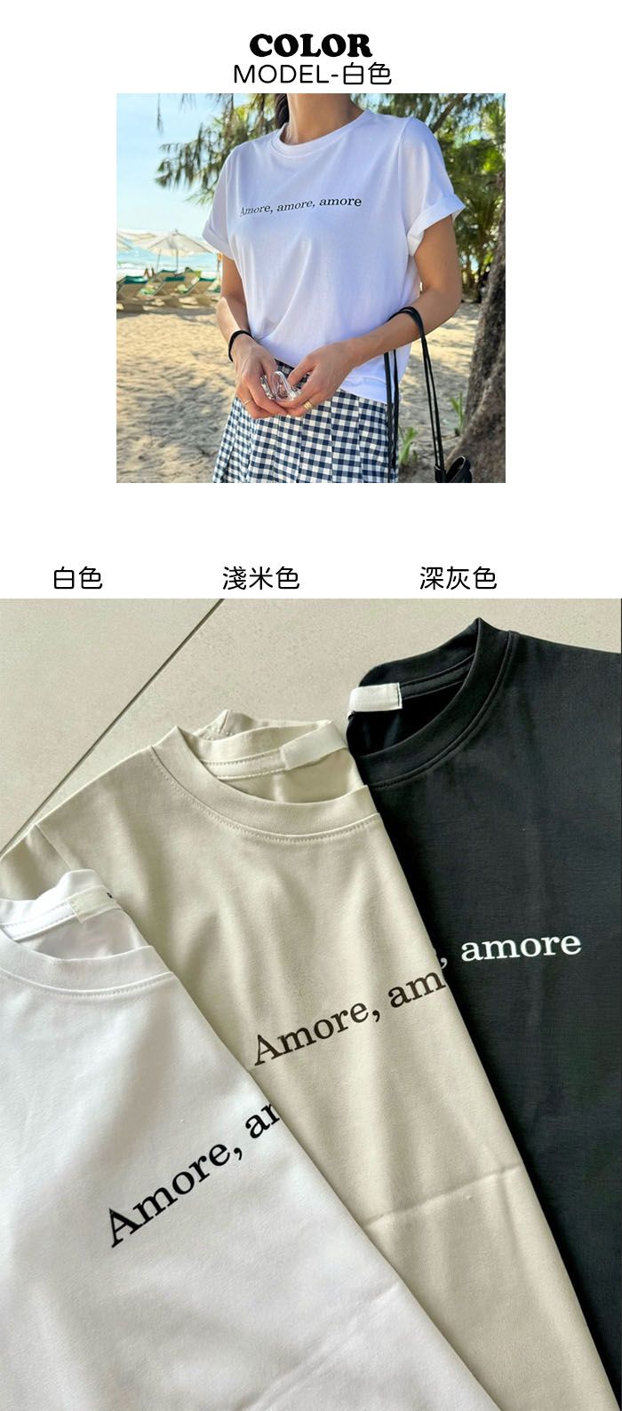 圓領/膠印英文字母 - 休閒居家英文字母上衣字母T恤TEE極簡字母T恤合身短袖上衣淺米色深灰色白色