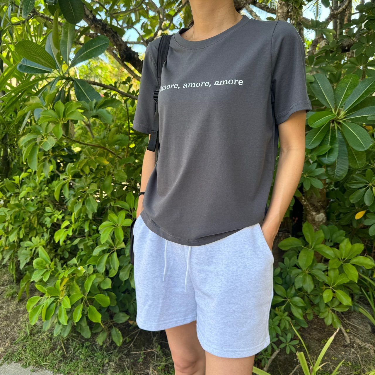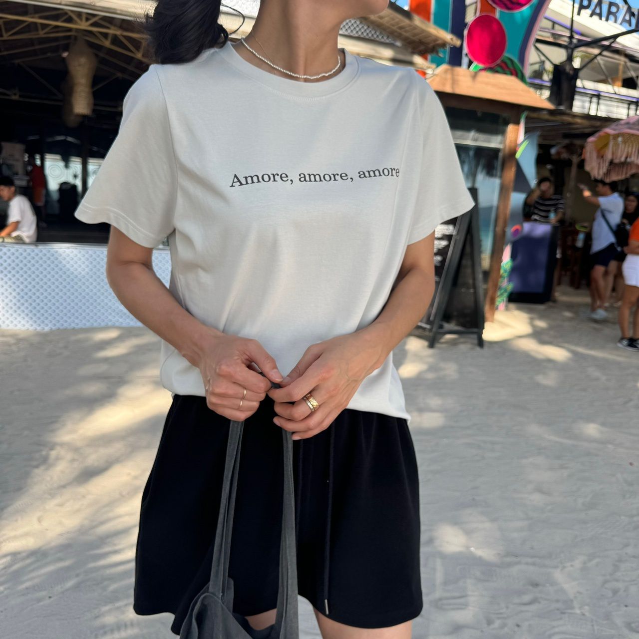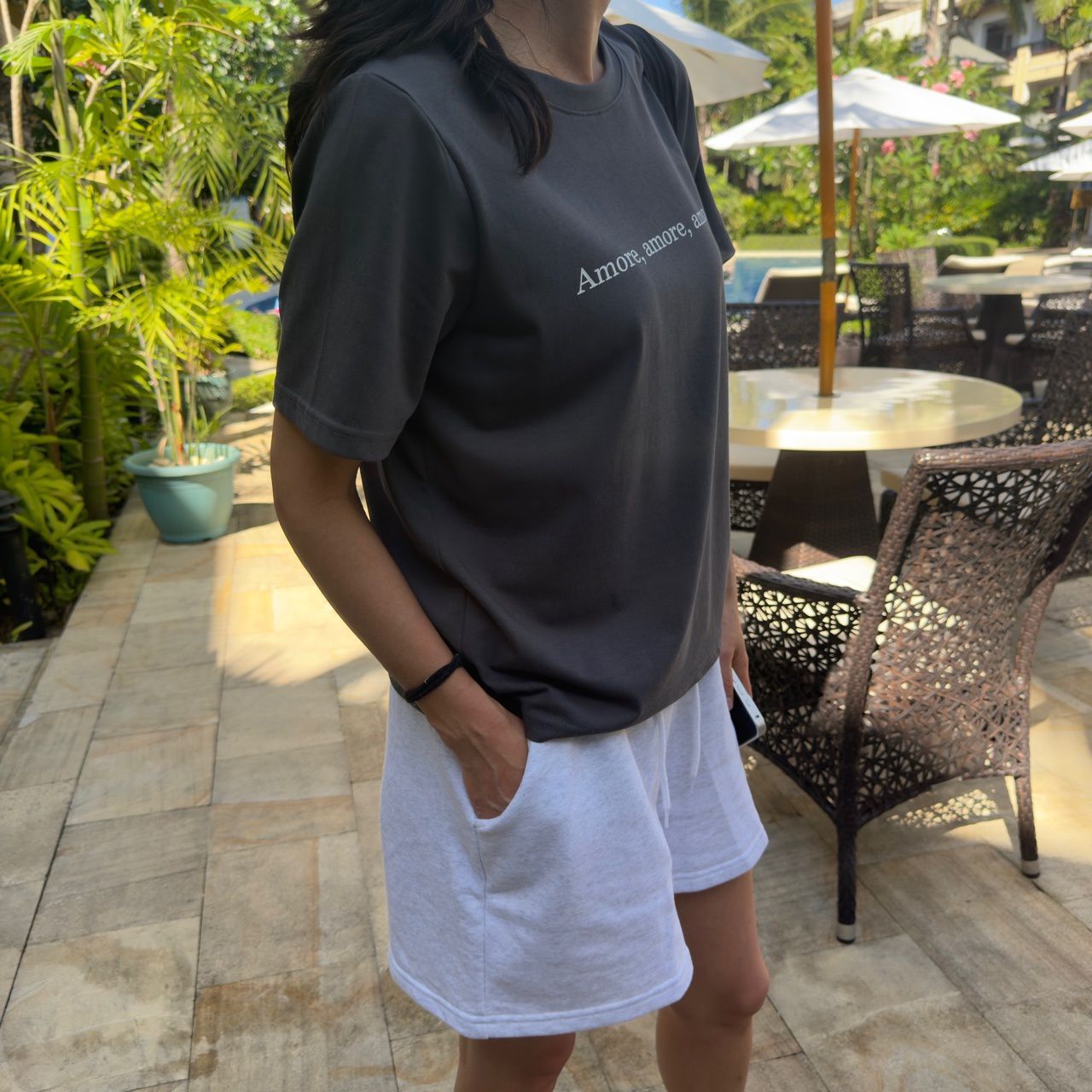 圓領/膠印英文字母 - 休閒居家英文字母上衣字母T恤TEE極簡字母T恤合身短袖上衣淺米色深灰色白色