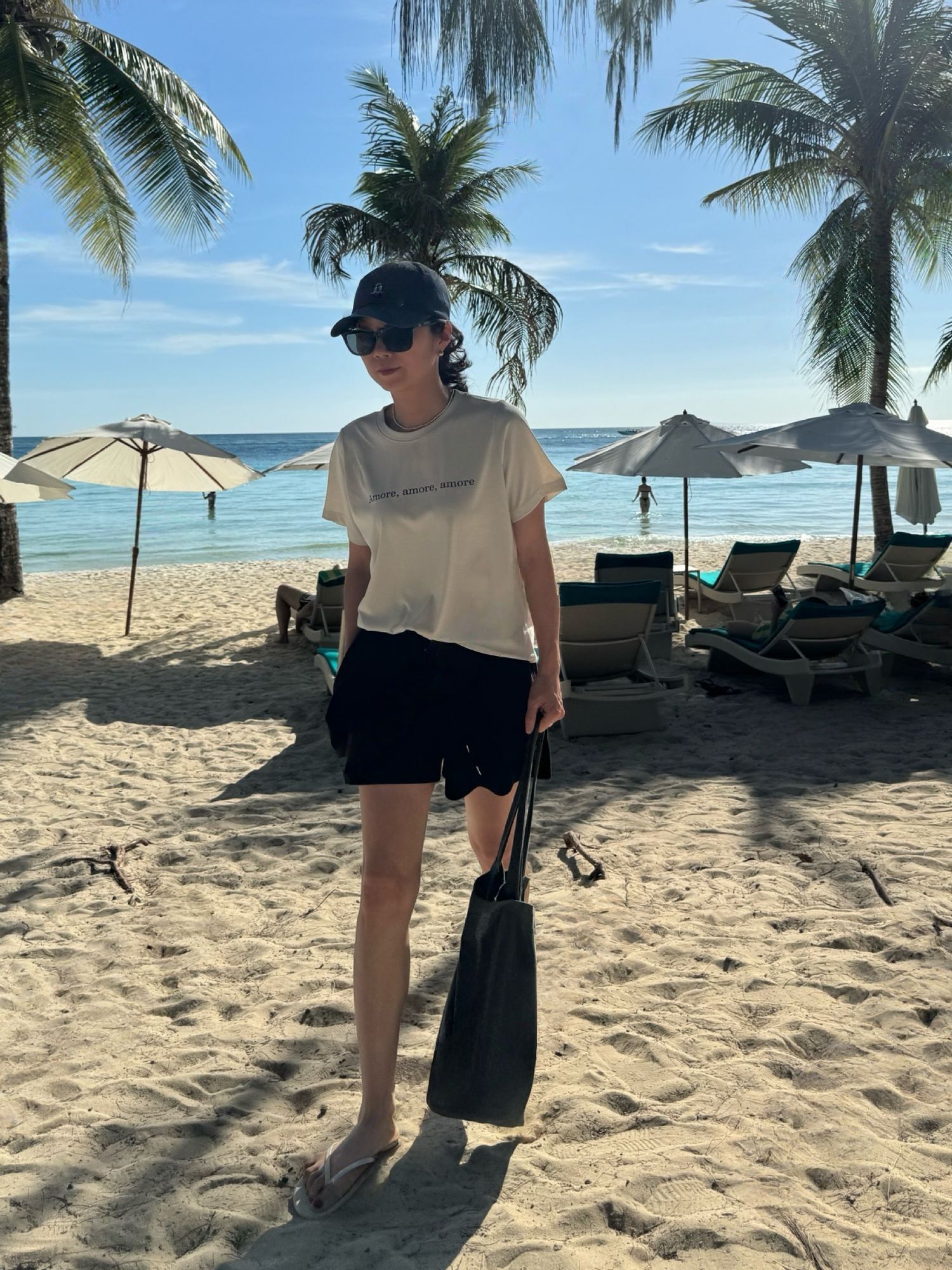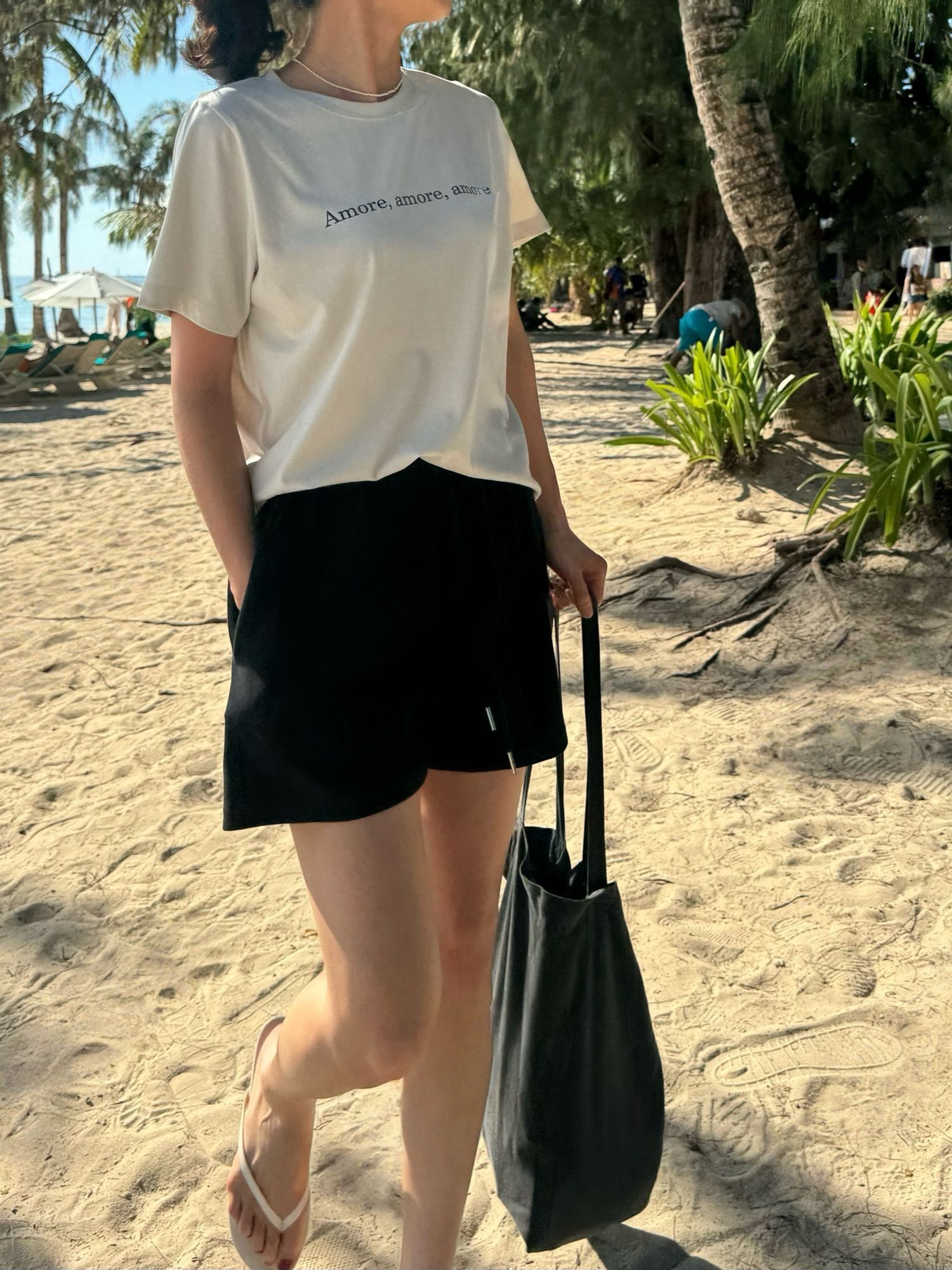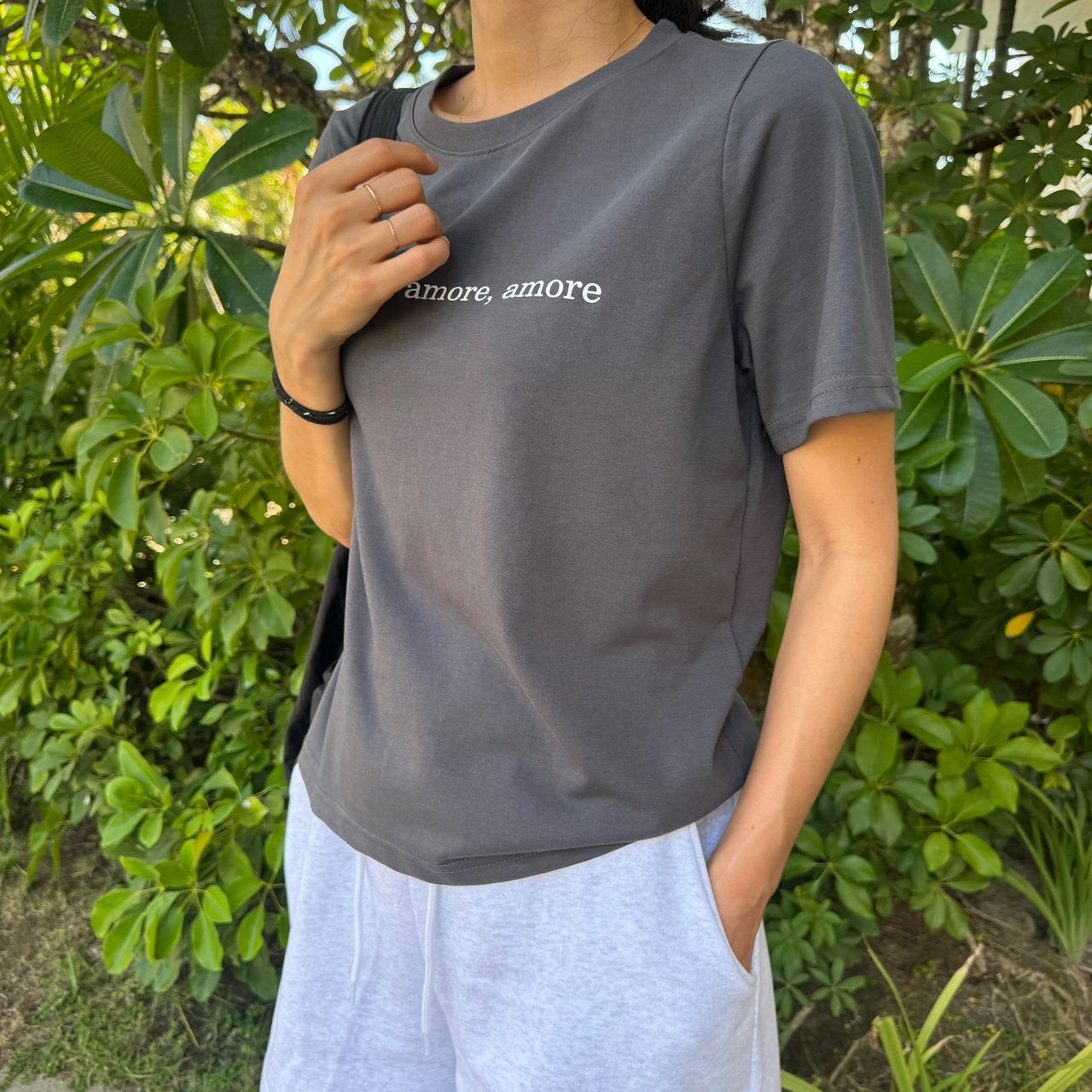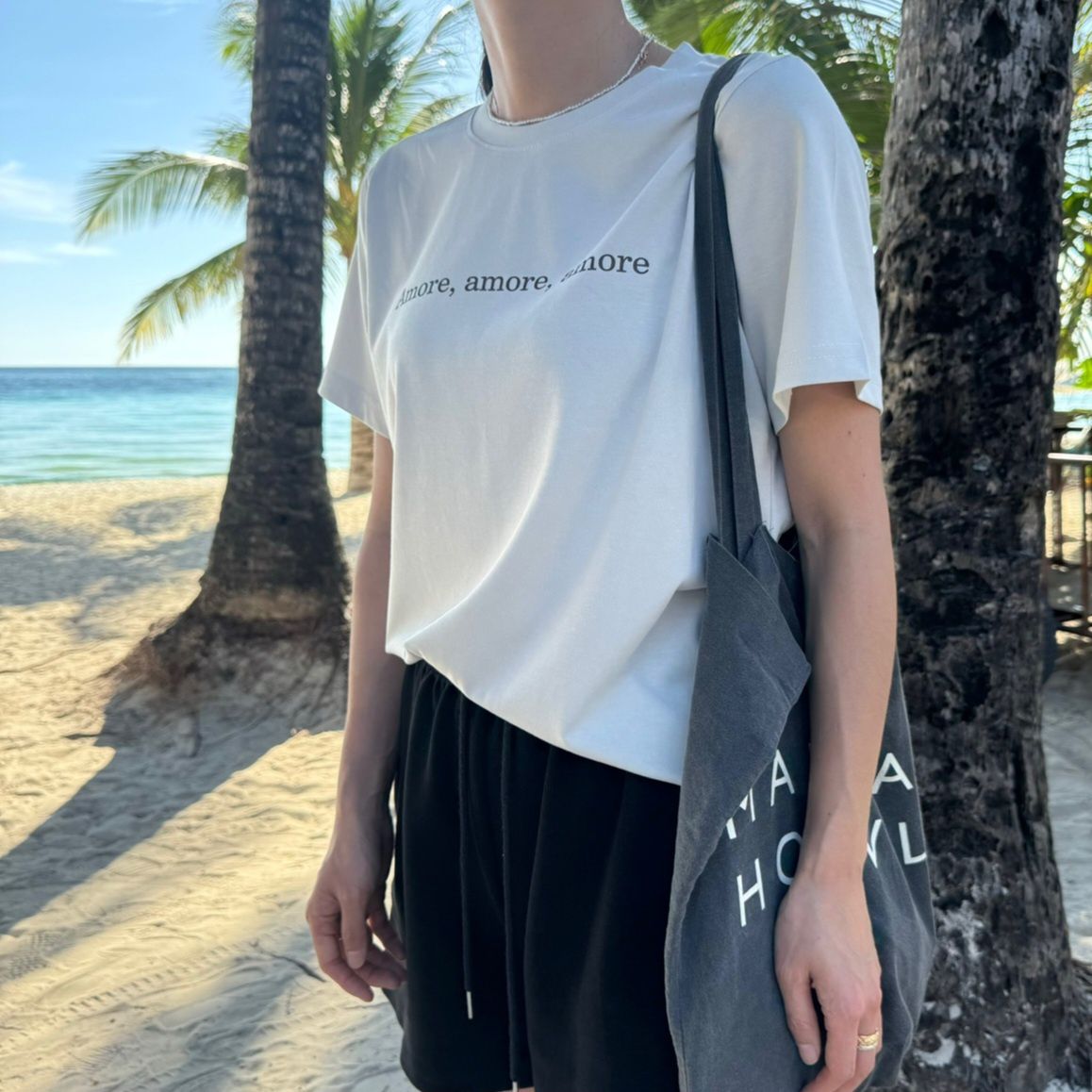 圓領/膠印英文字母 - 休閒居家英文字母上衣字母T恤TEE極簡字母T恤合身短袖上衣淺米色深灰色白色