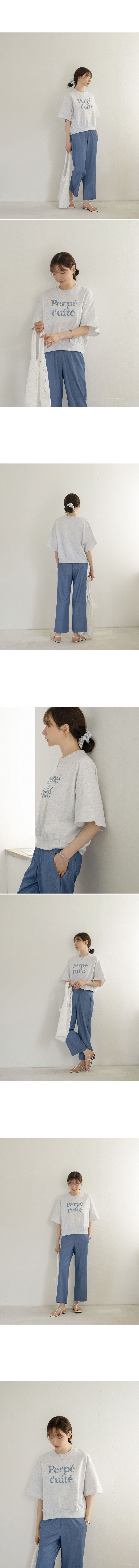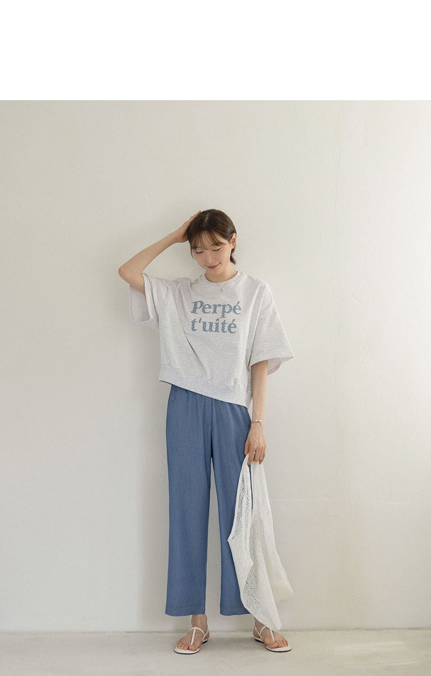【C54530】韓國MCD 牛仔拼字上衣-立體貼布英文圓領寬袖寬鬆五分袖