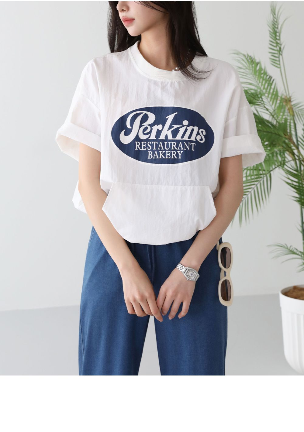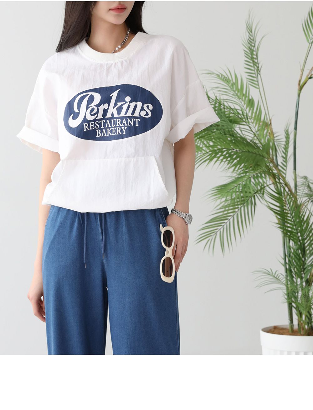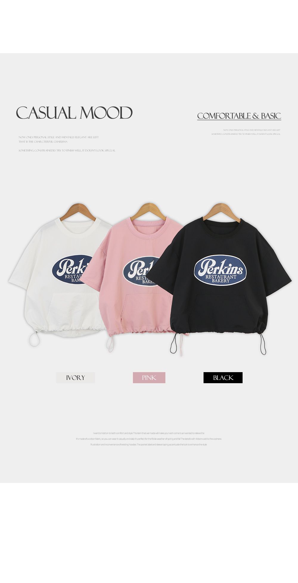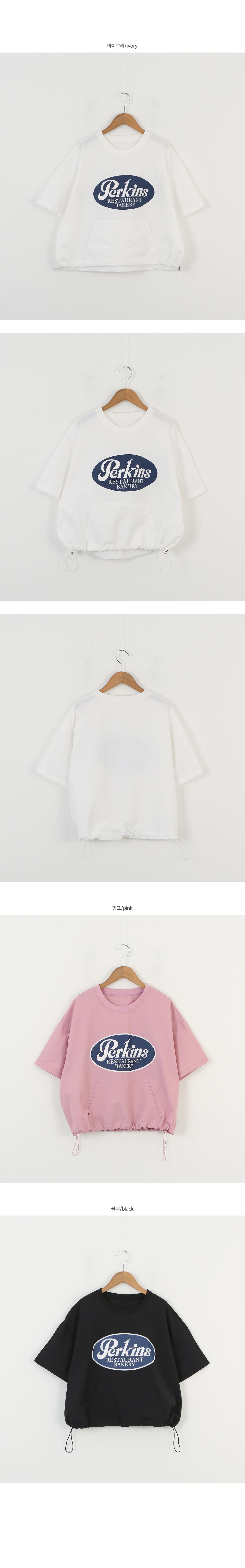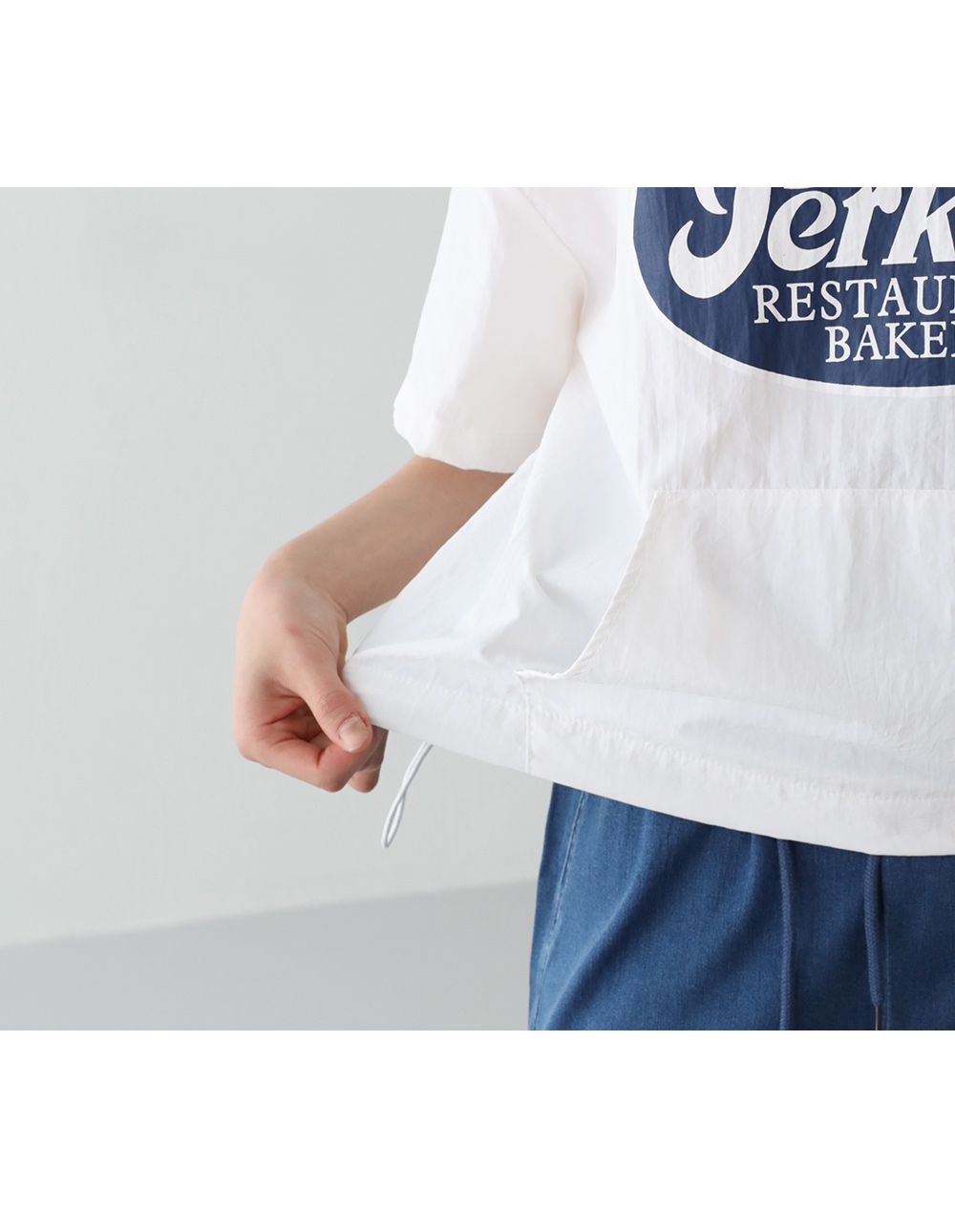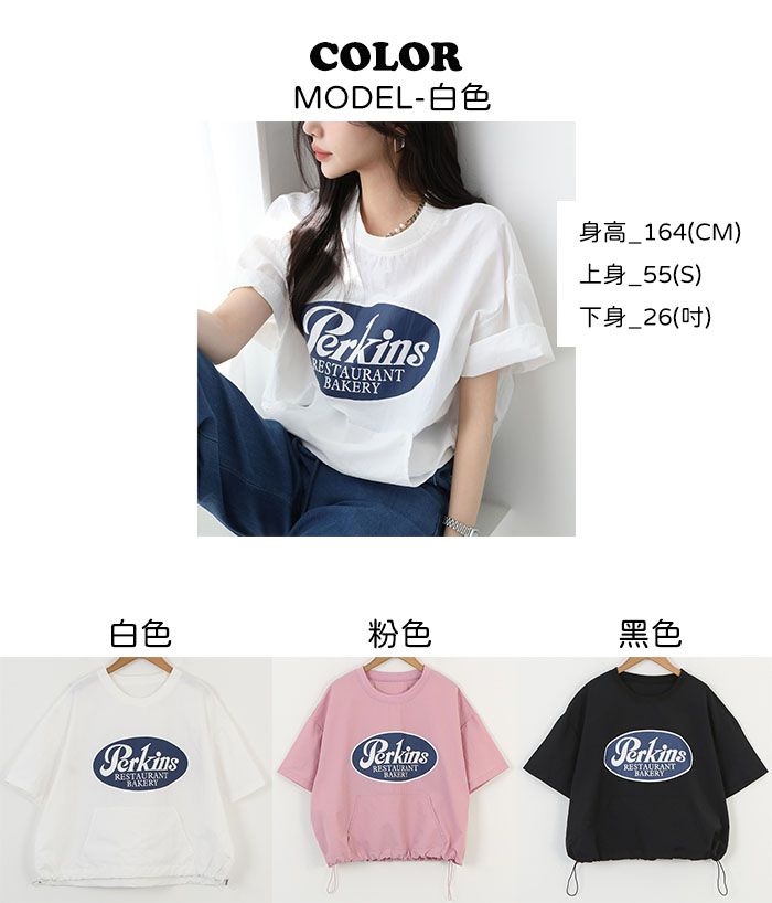 【C54763】韓國PPI 大口袋字母上衣-寬鬆抽繩收腰圓領落肩五分寬袖