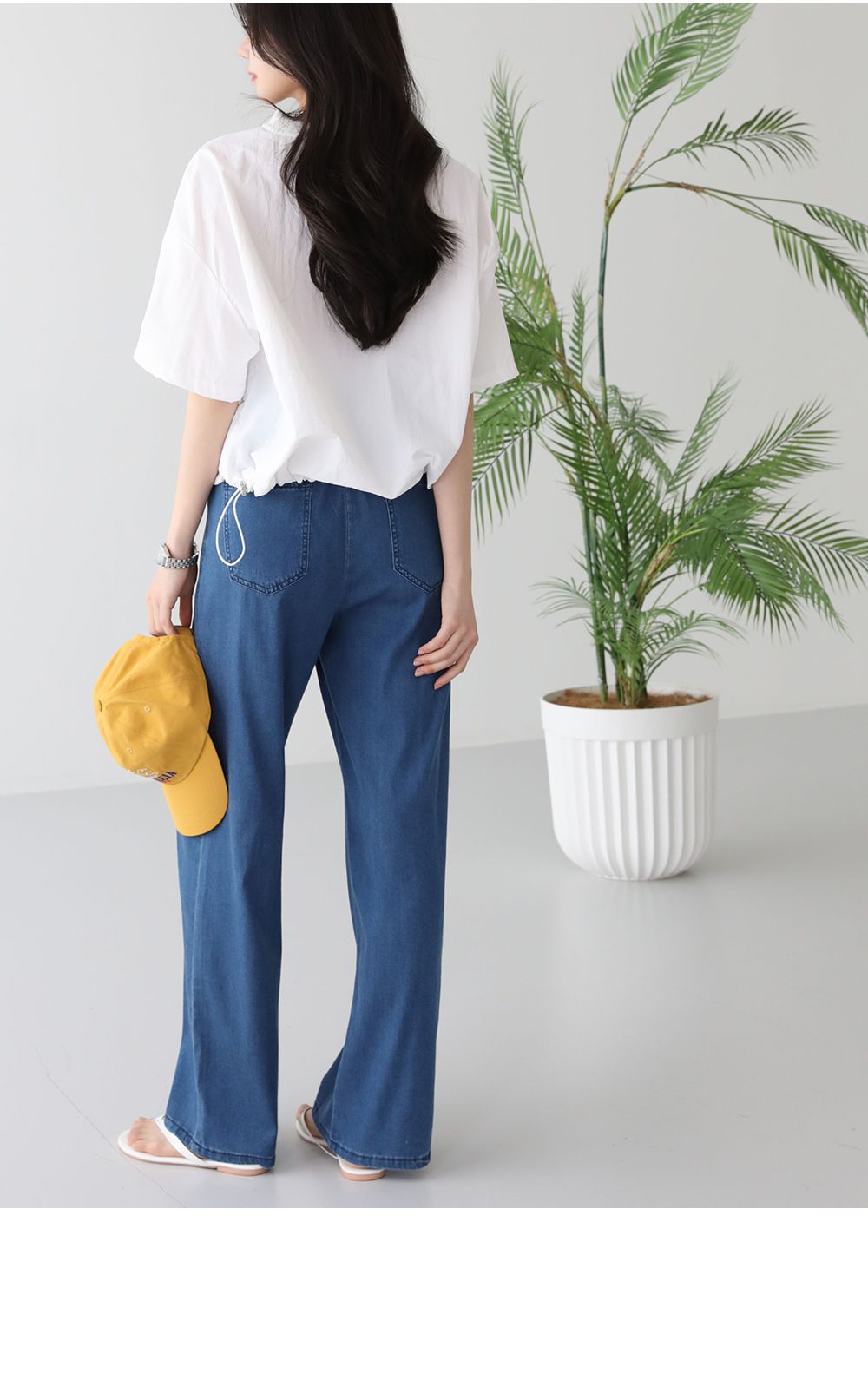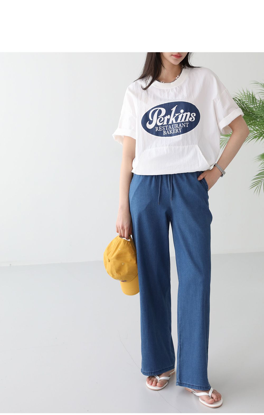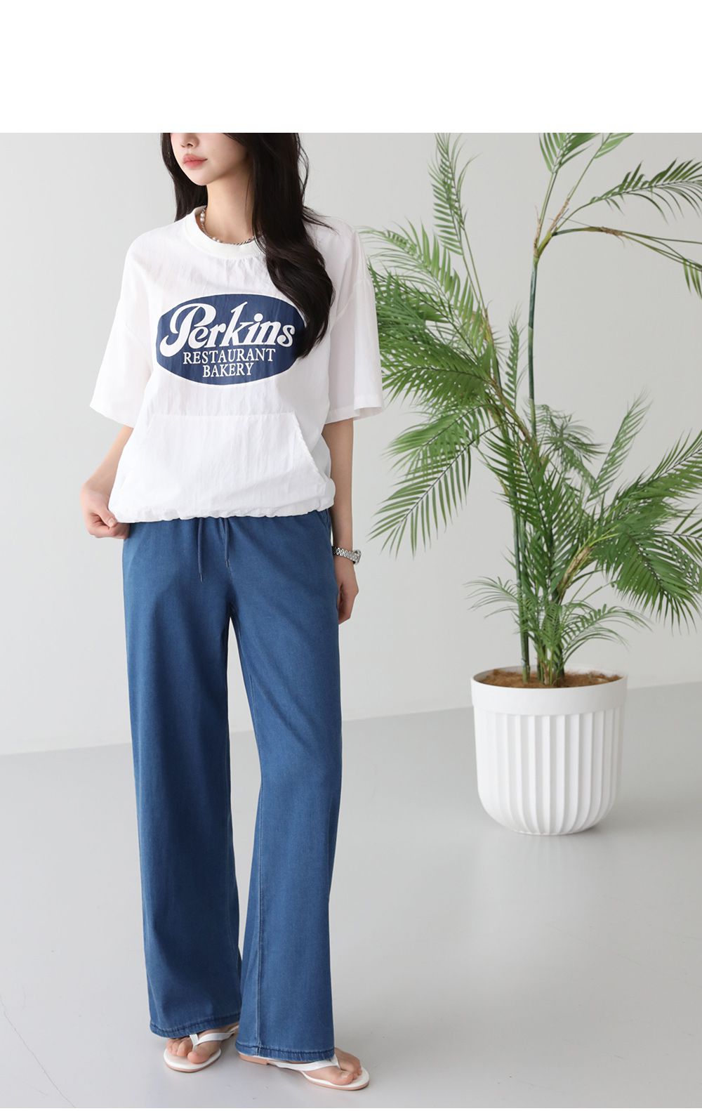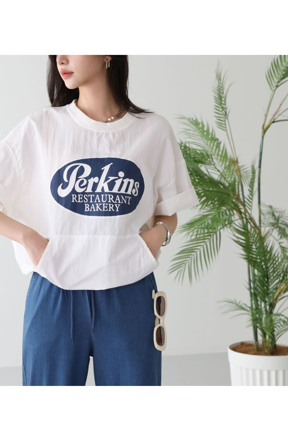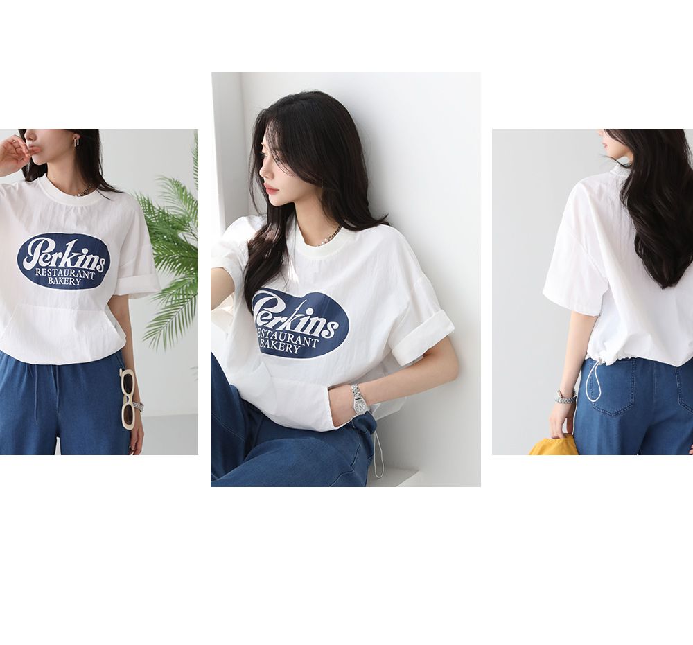 【C54763】韓國PPI 大口袋字母上衣-寬鬆抽繩收腰圓領落肩五分寬袖