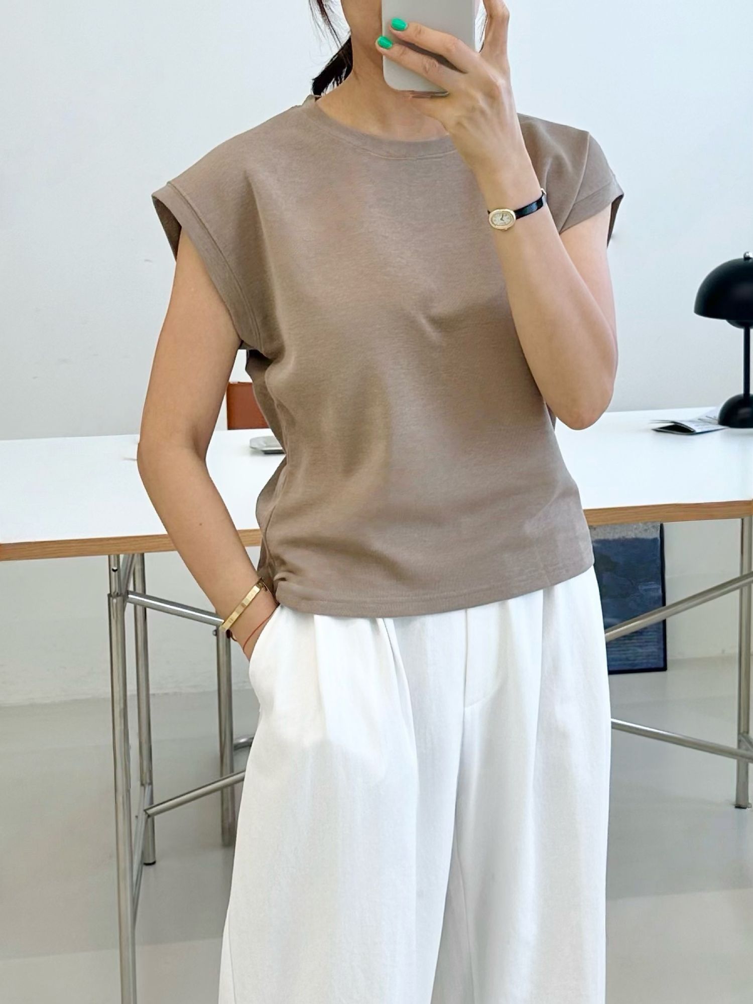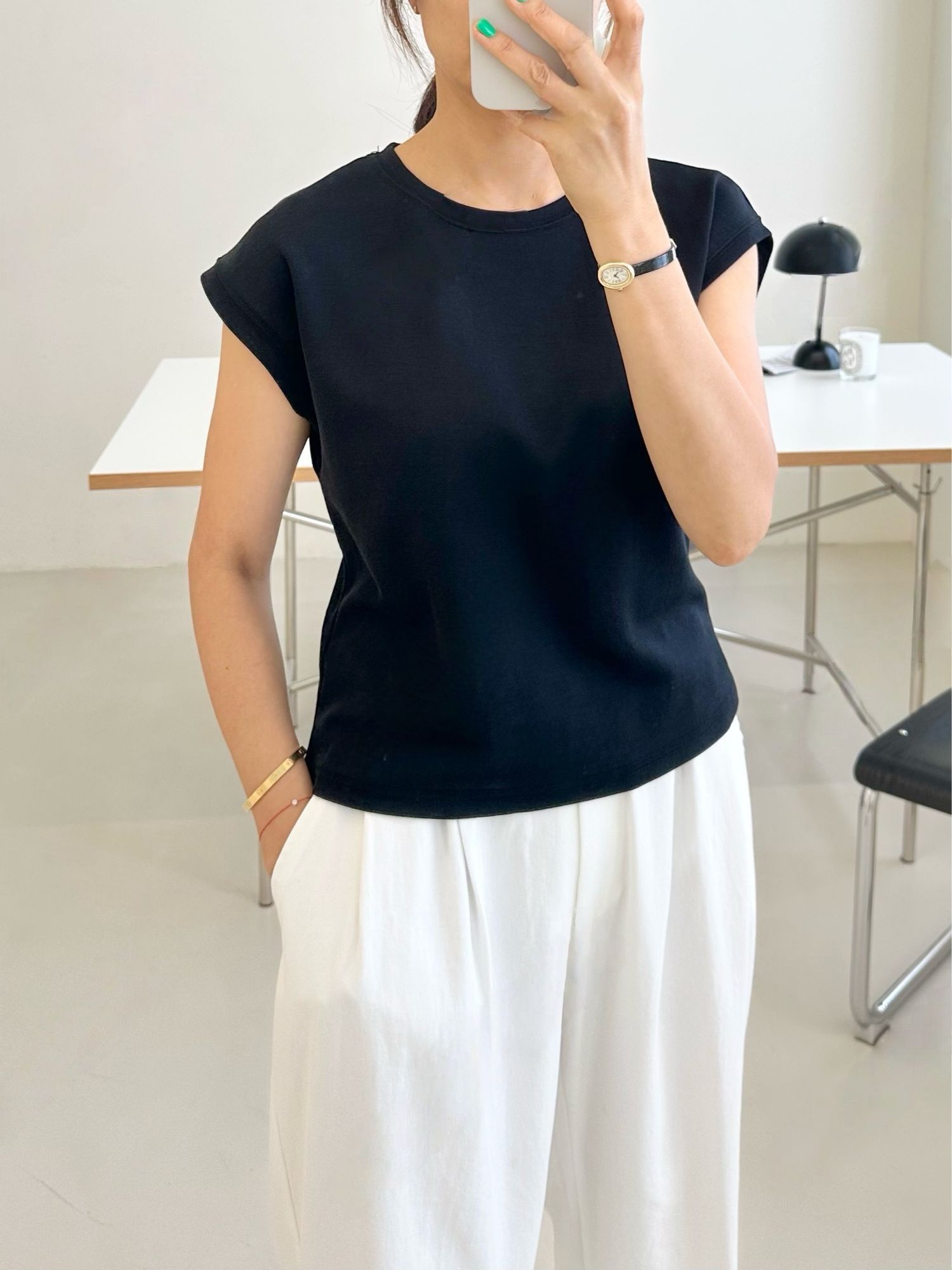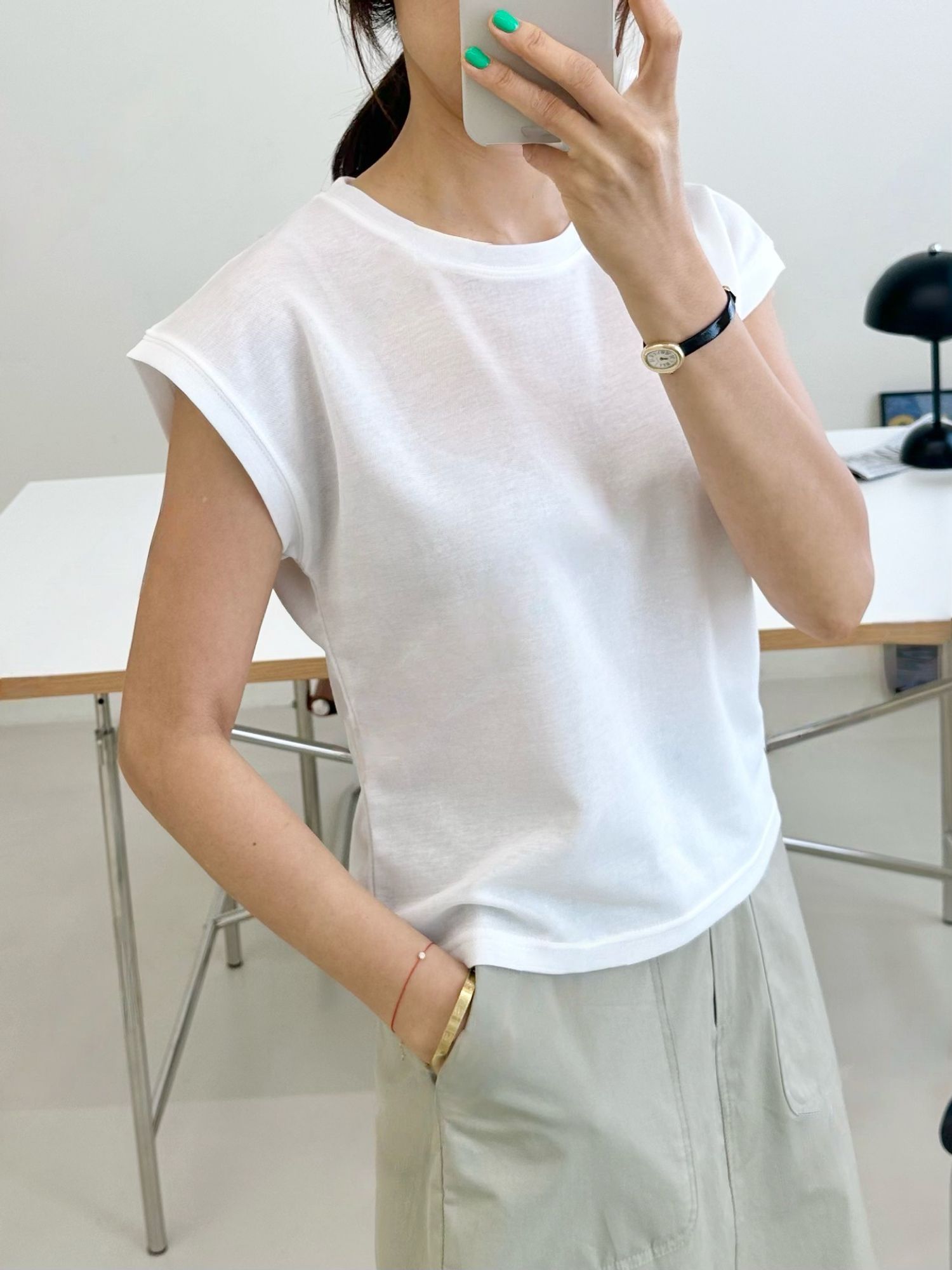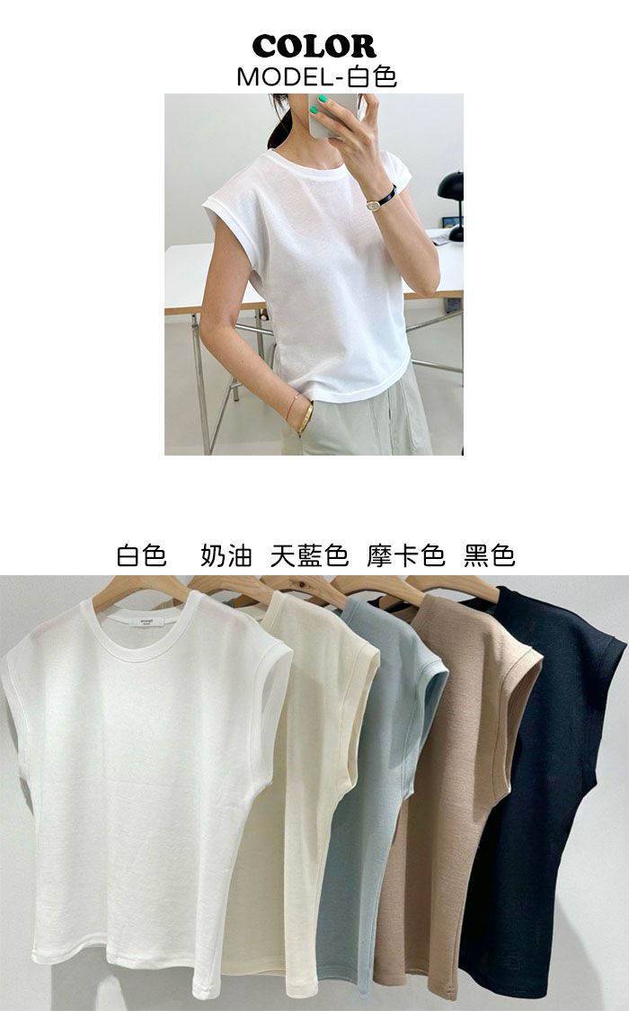 【C54789】韓國ENO 小包肩短袖上衣-素面圓領上寬下窄合身內搭T恤