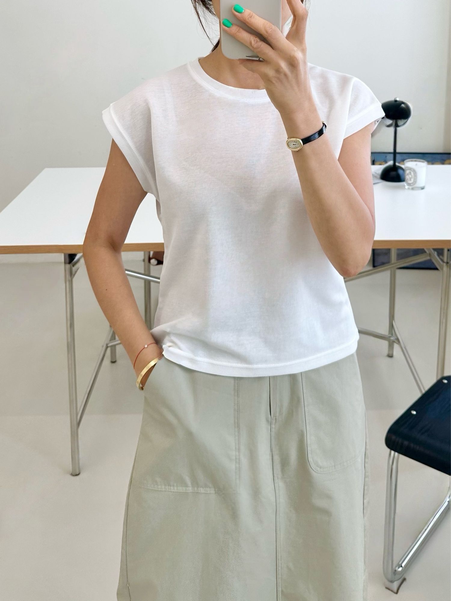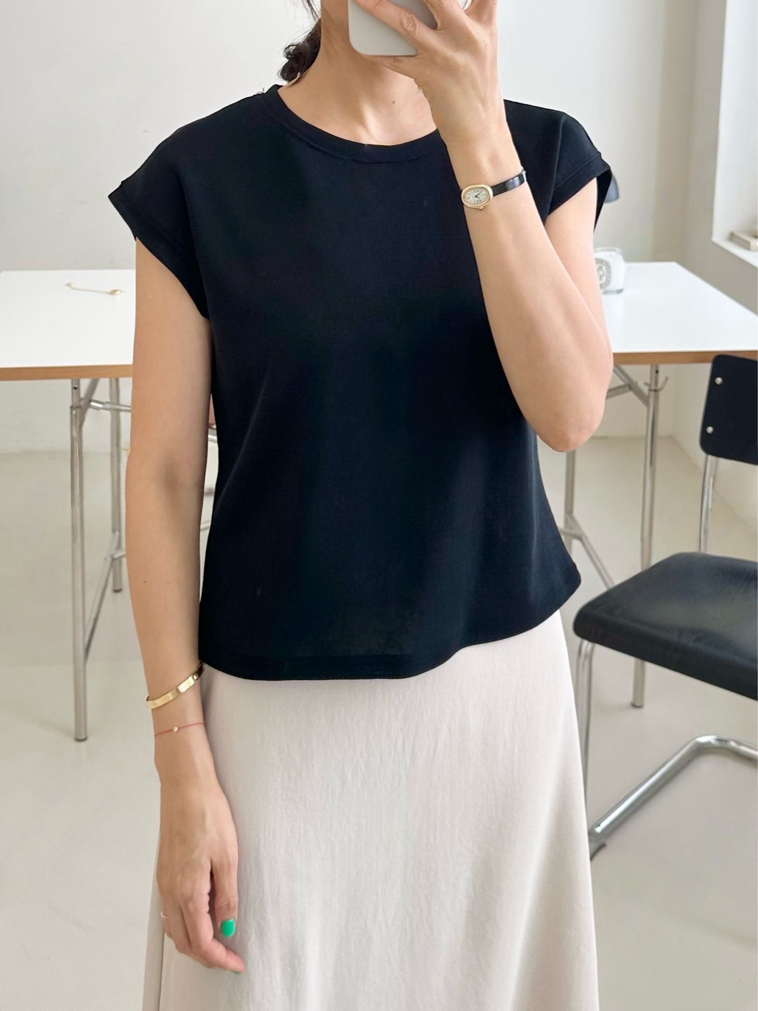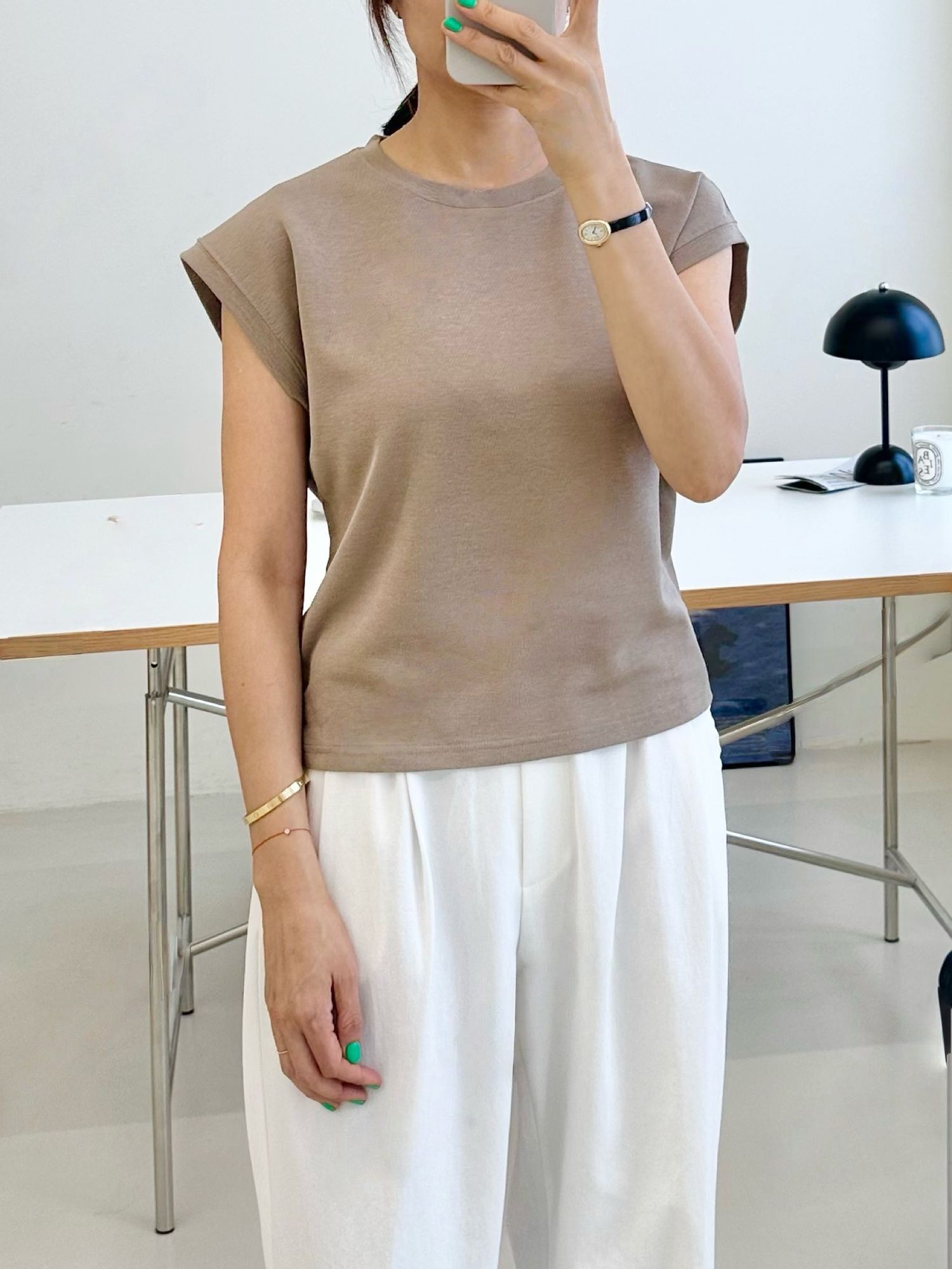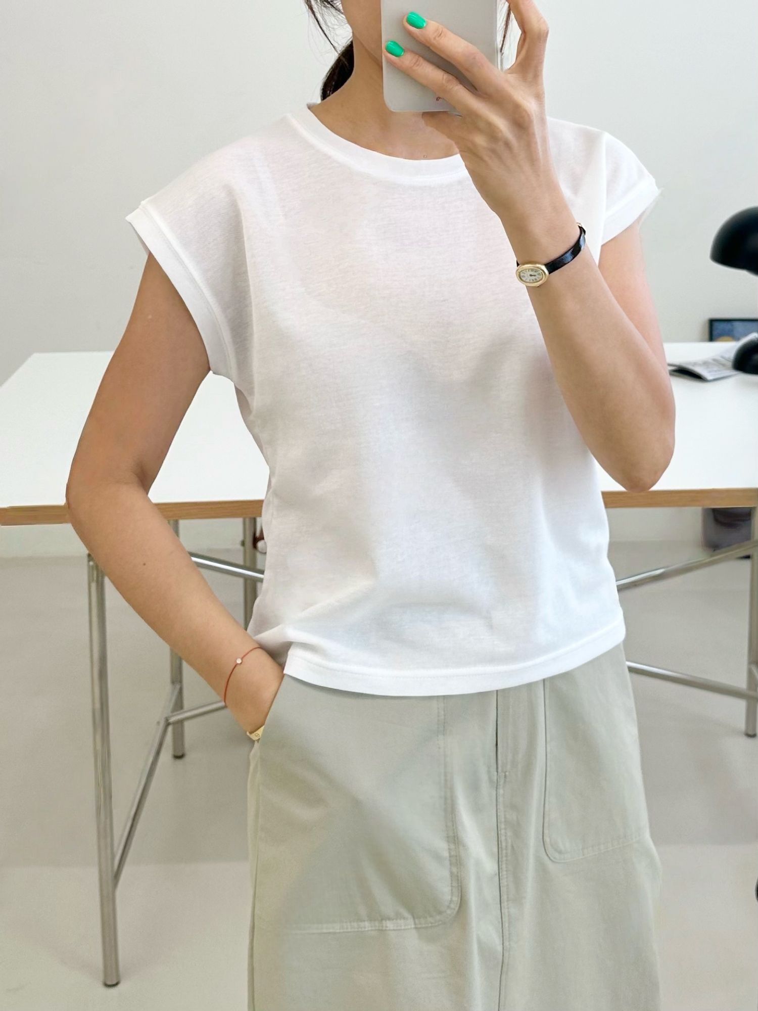 【C54789】韓國ENO 小包肩短袖上衣-素面圓領上寬下窄合身內搭T恤