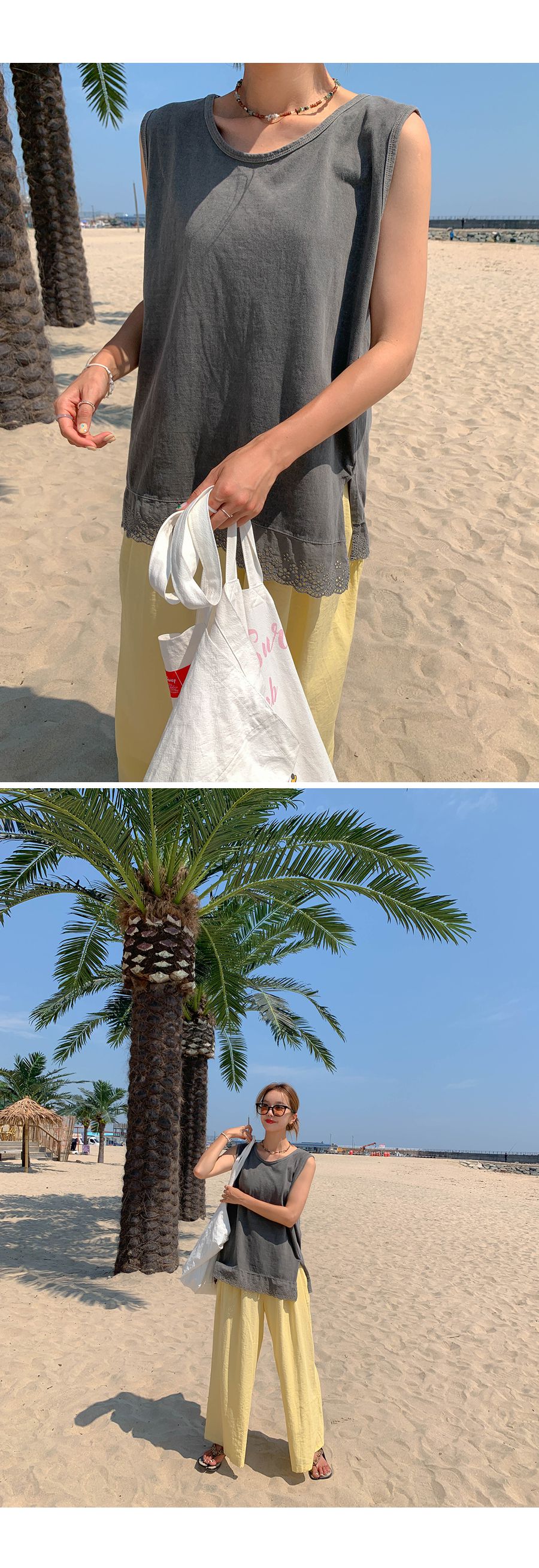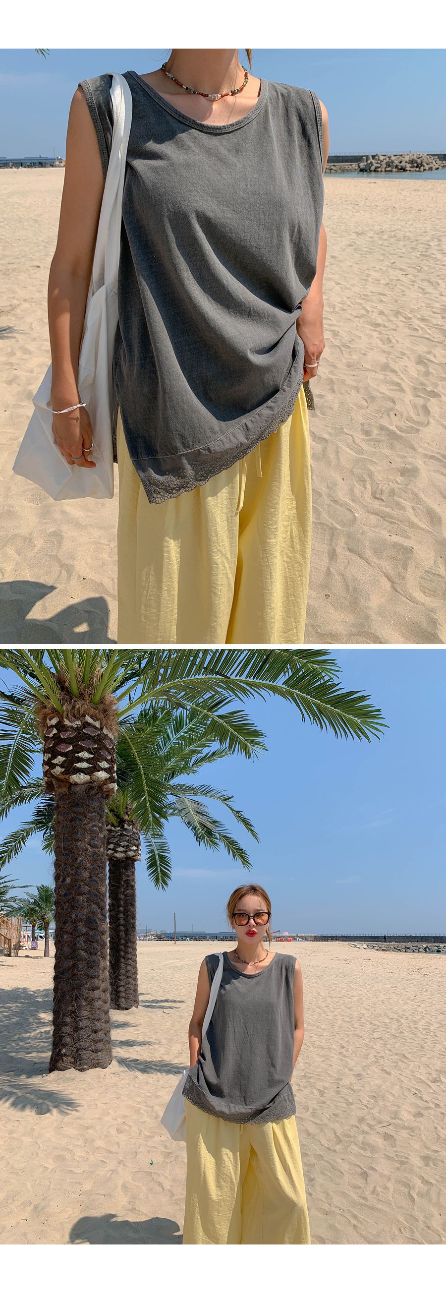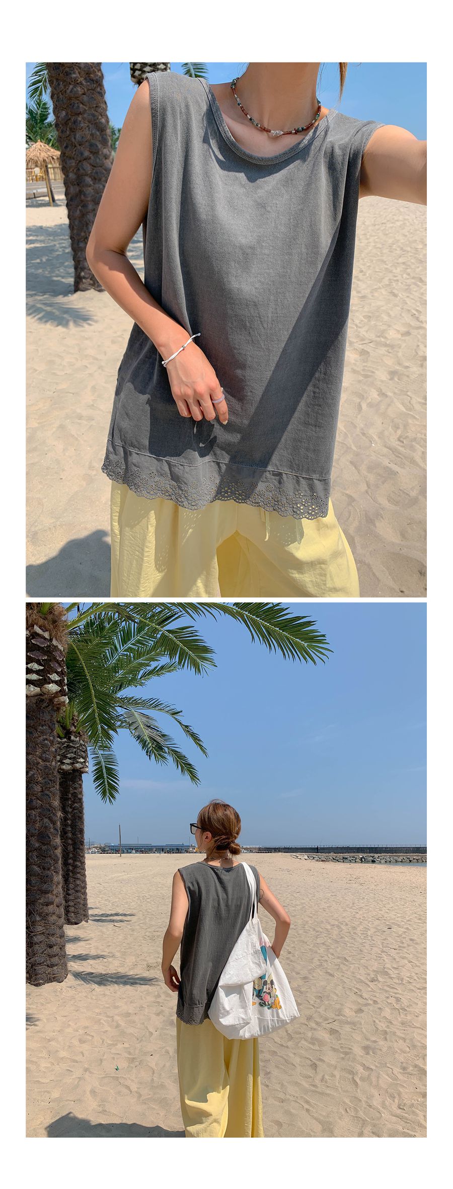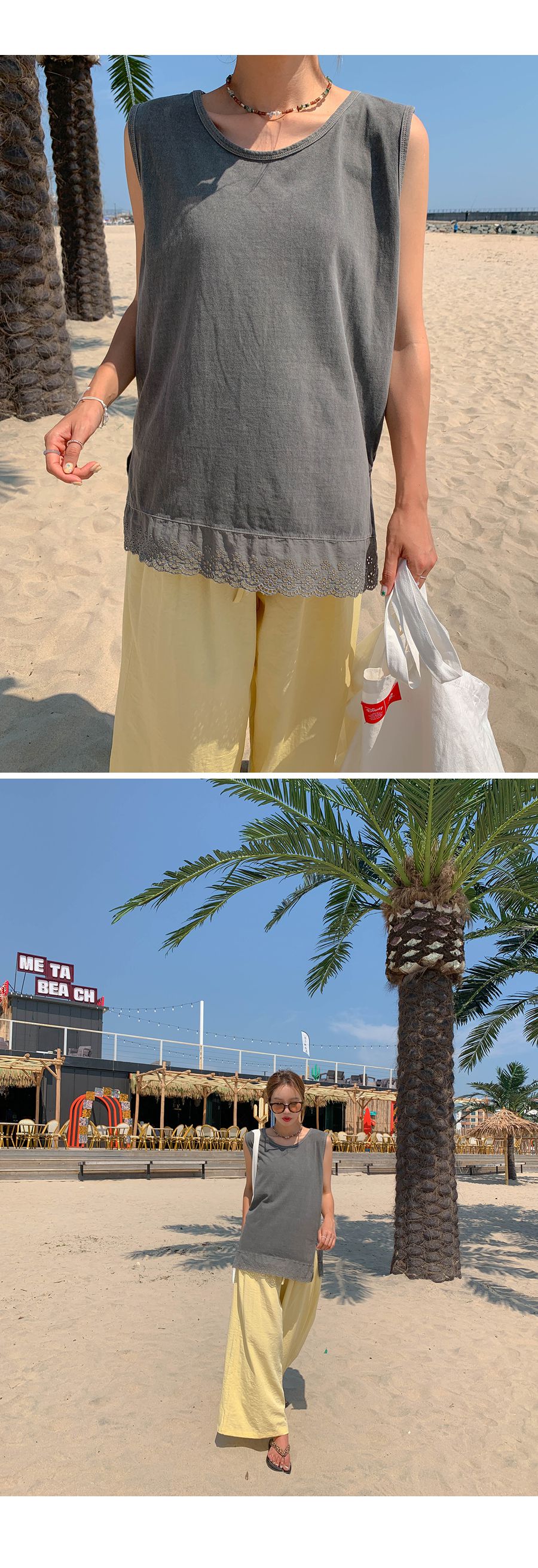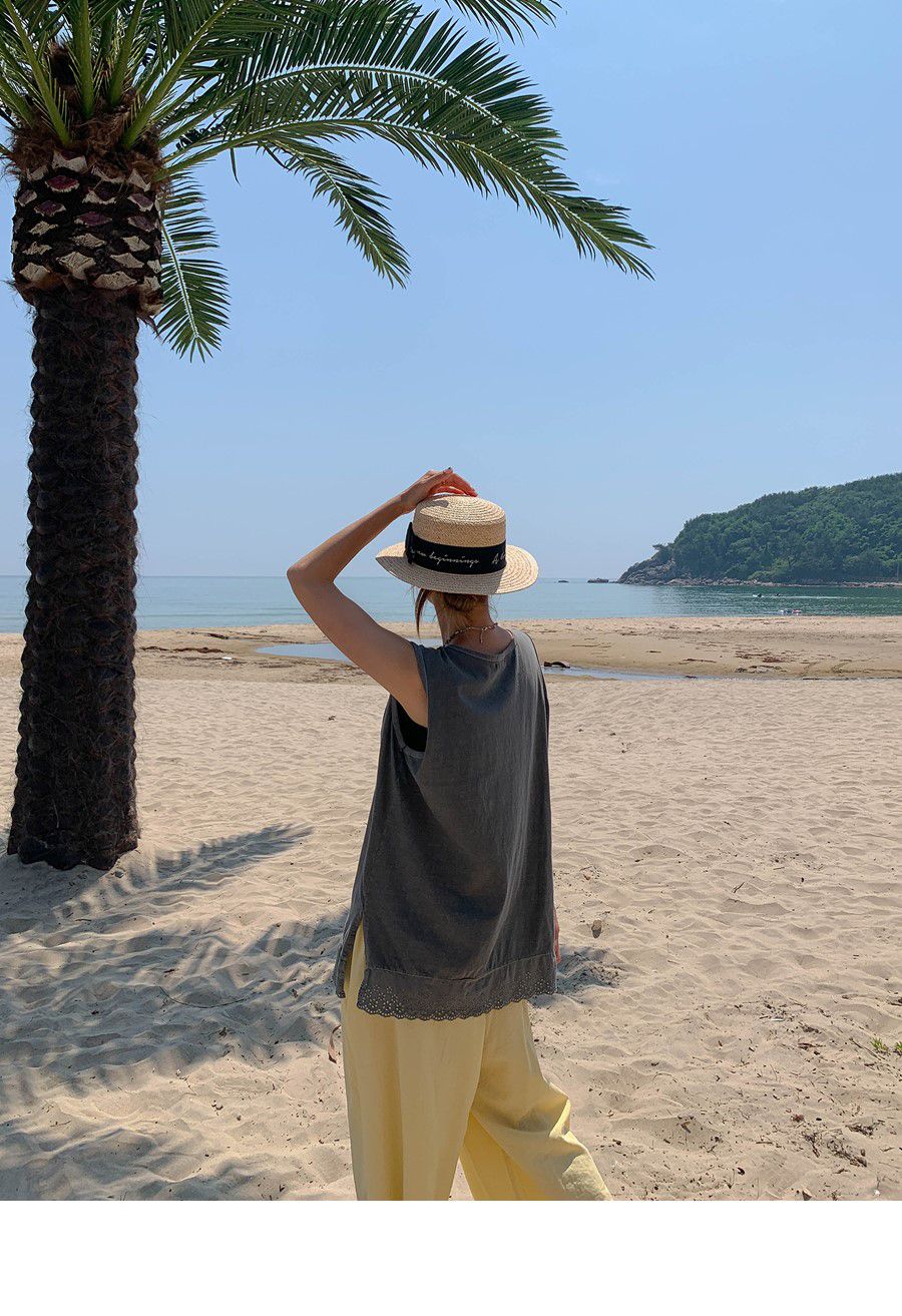 【C54955】韓國LLN 蕾絲花邊背心-素面水洗棉U領長版側開衩無袖上衣