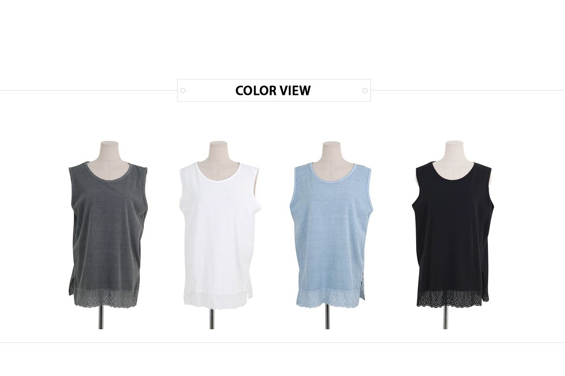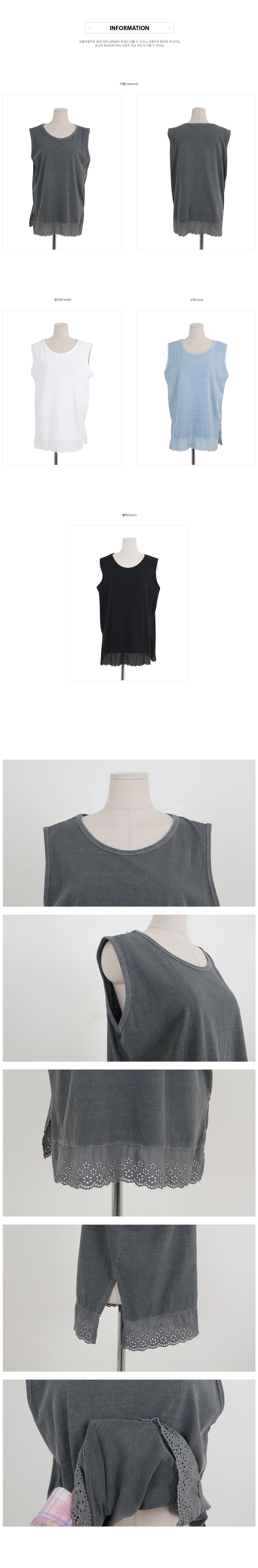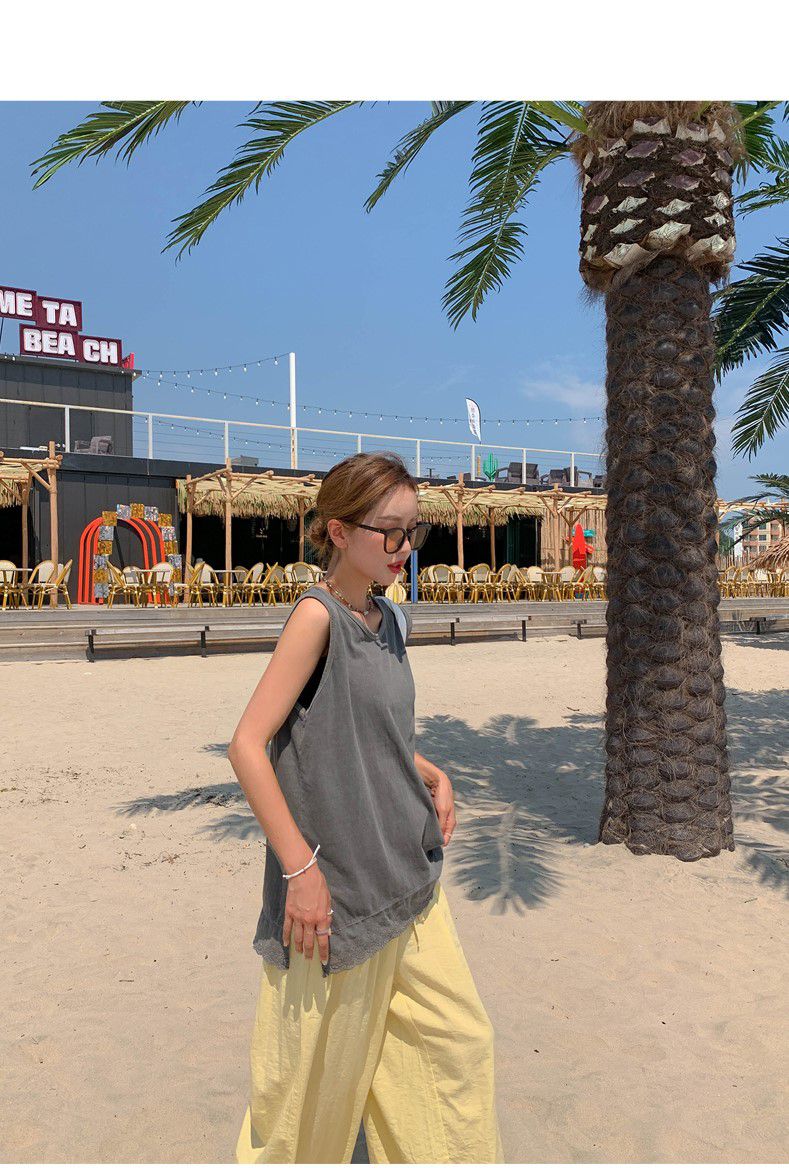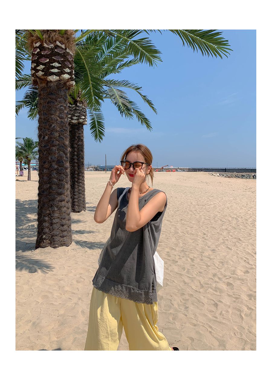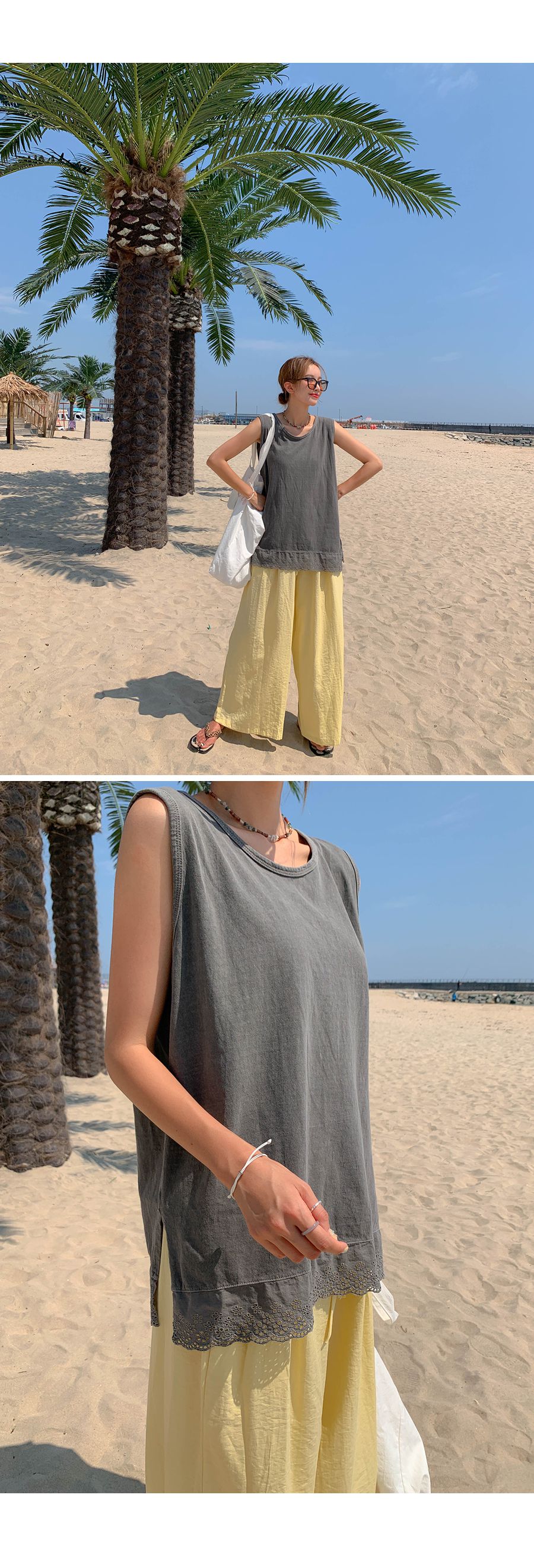 【C54955】韓國LLN 蕾絲花邊背心-素面水洗棉U領長版側開衩無袖上衣