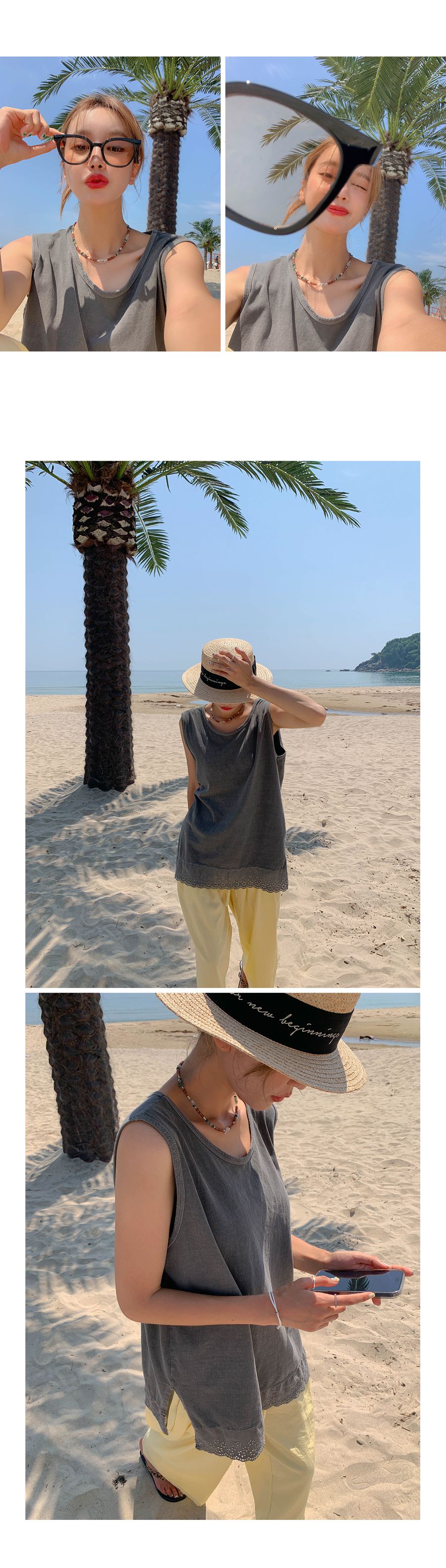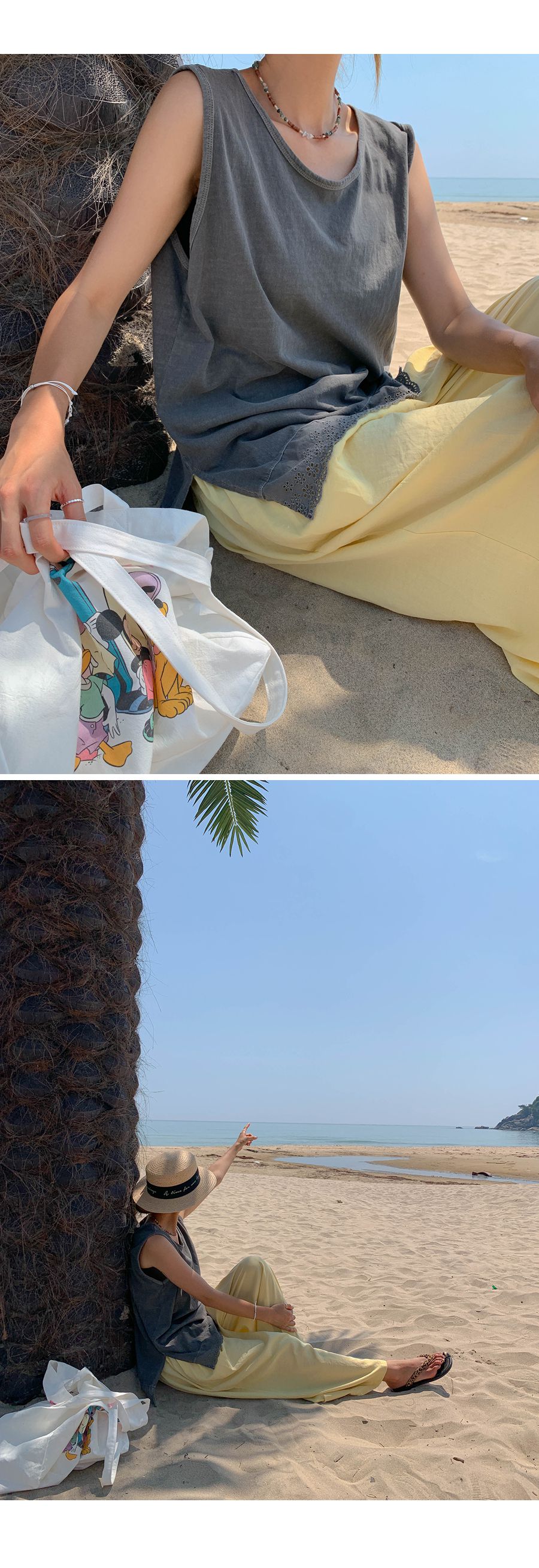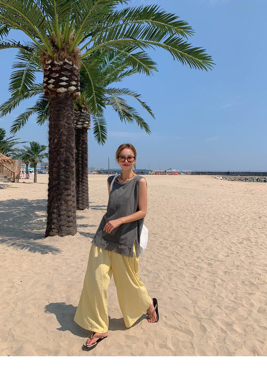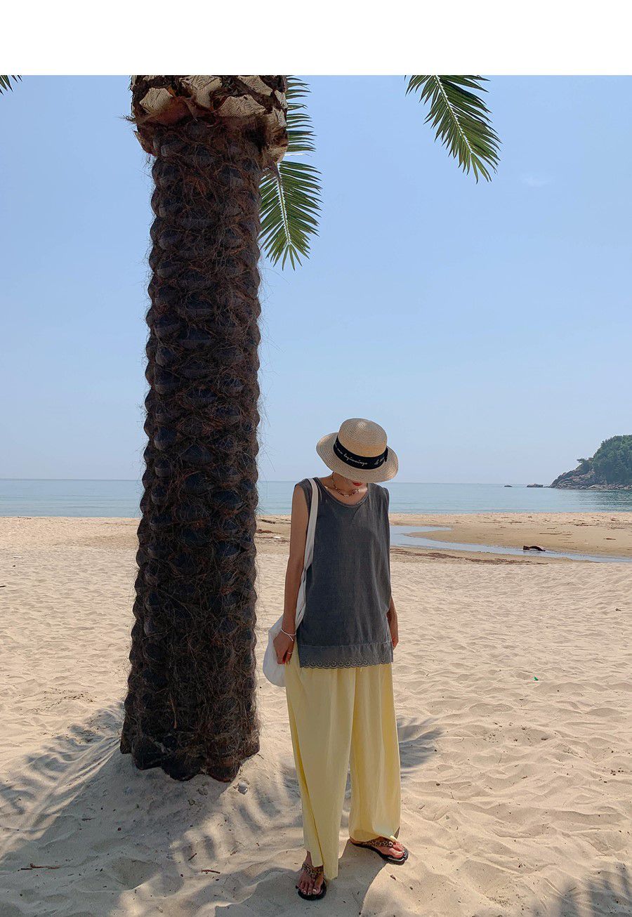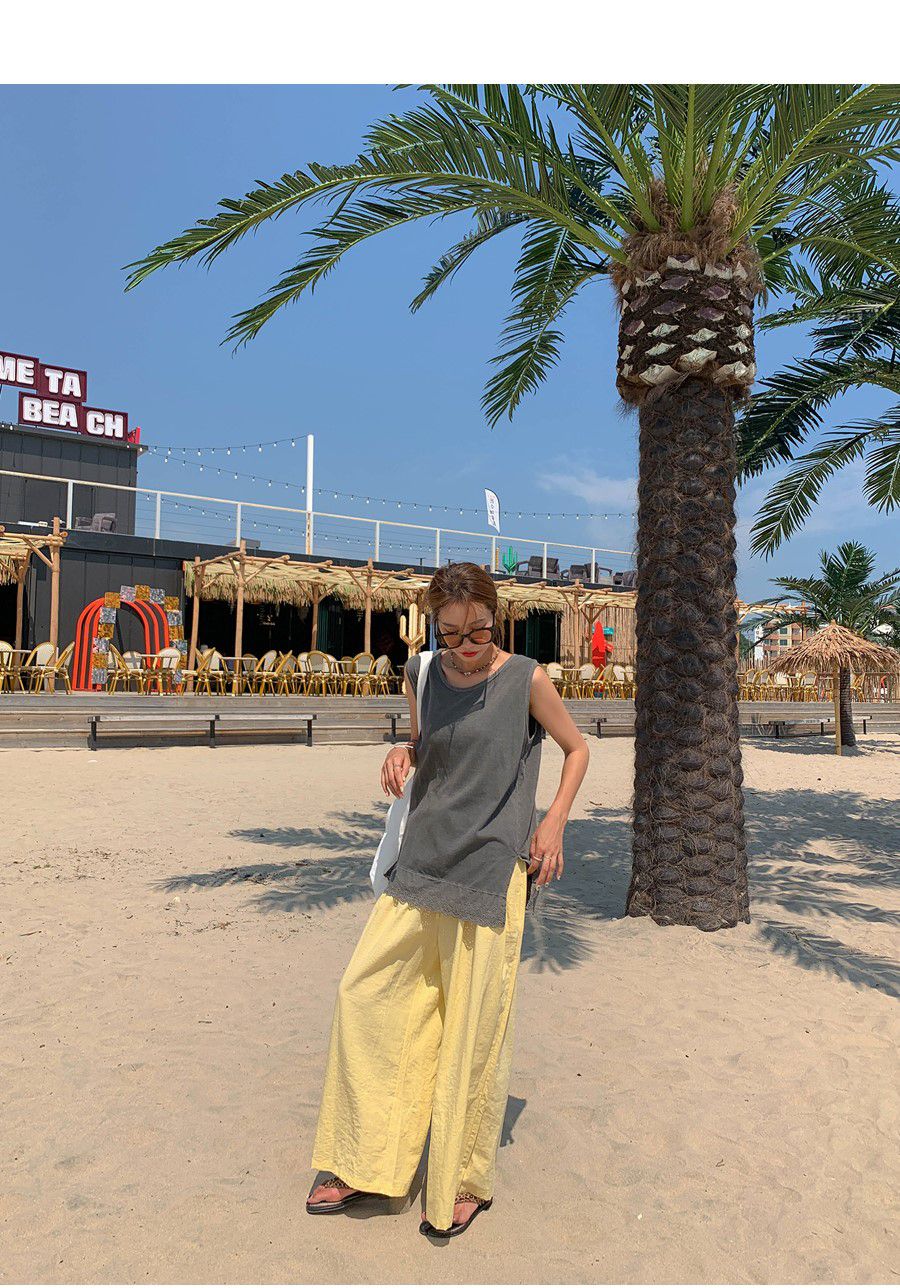 【C54955】韓國LLN 蕾絲花邊背心-素面水洗棉U領長版側開衩無袖上衣