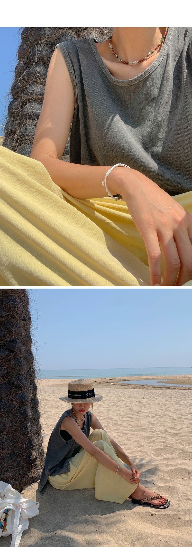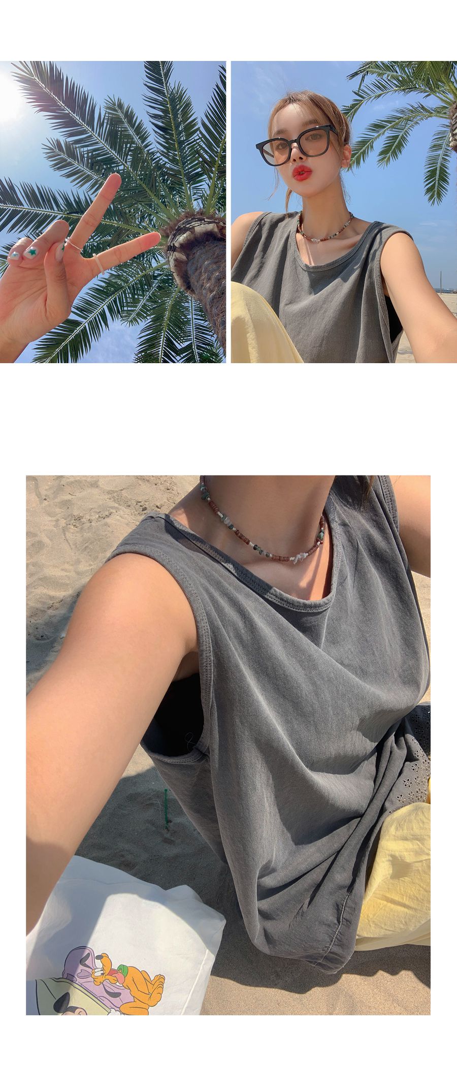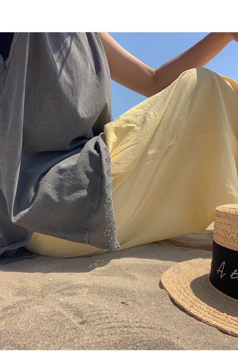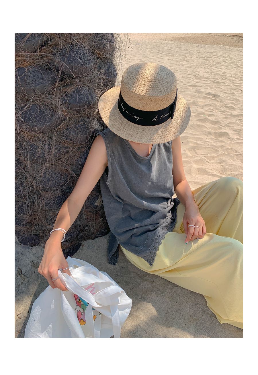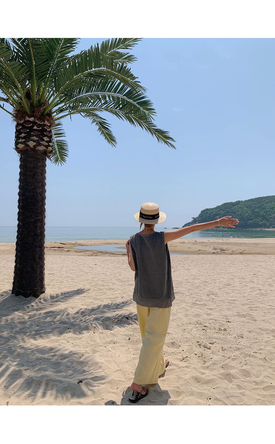 【C54955】韓國LLN 蕾絲花邊背心-素面水洗棉U領長版側開衩無袖上衣