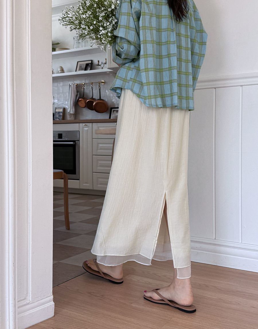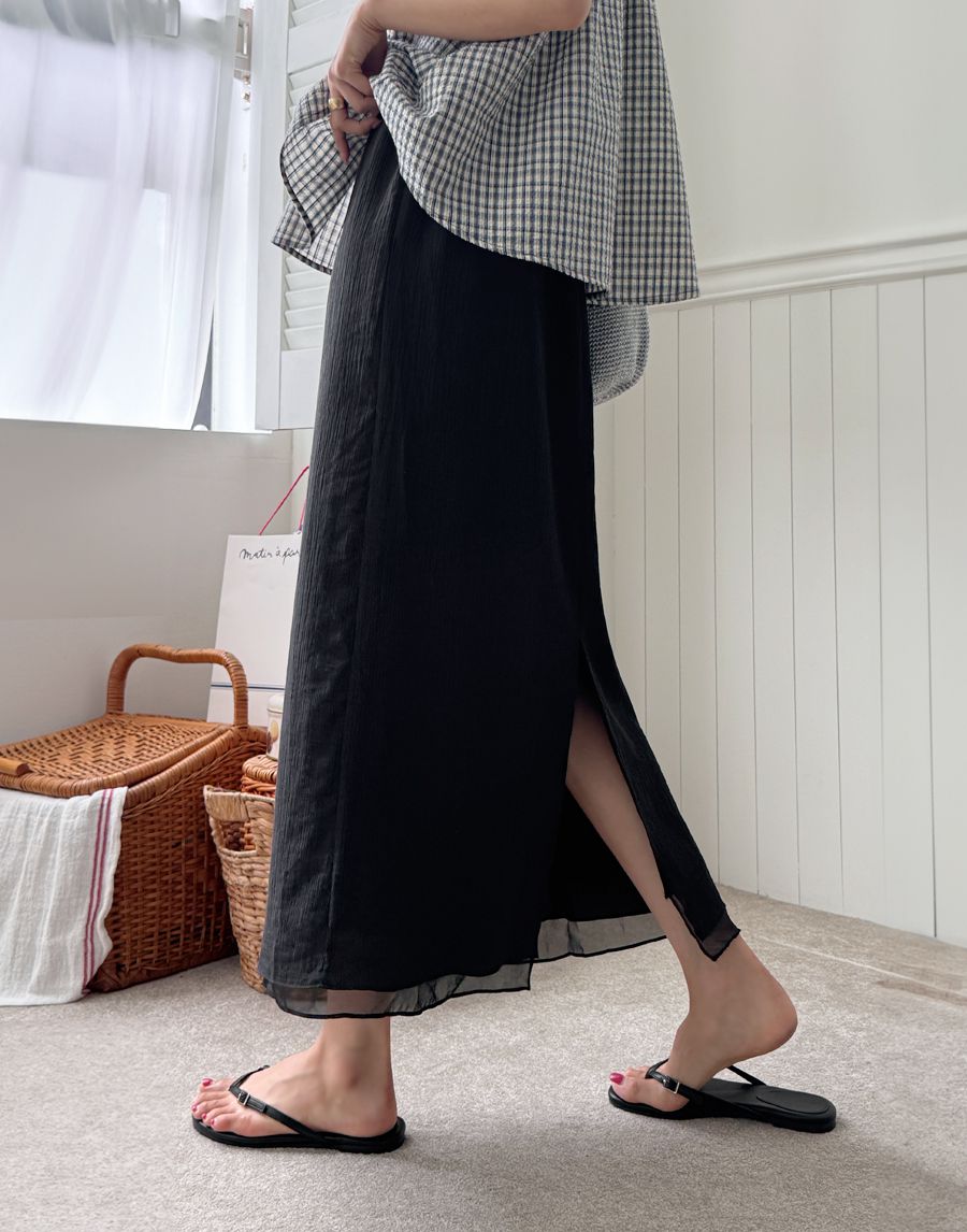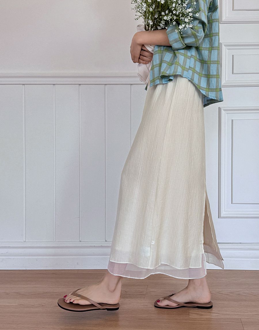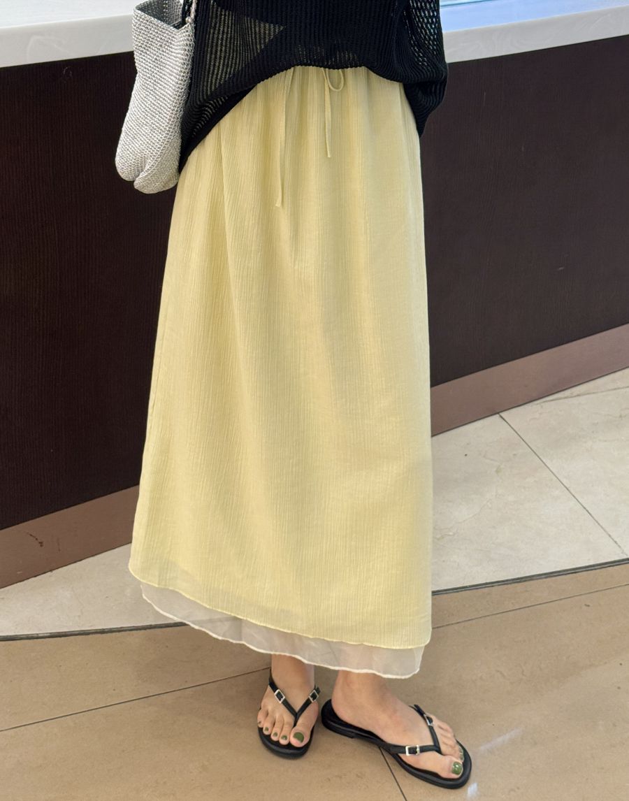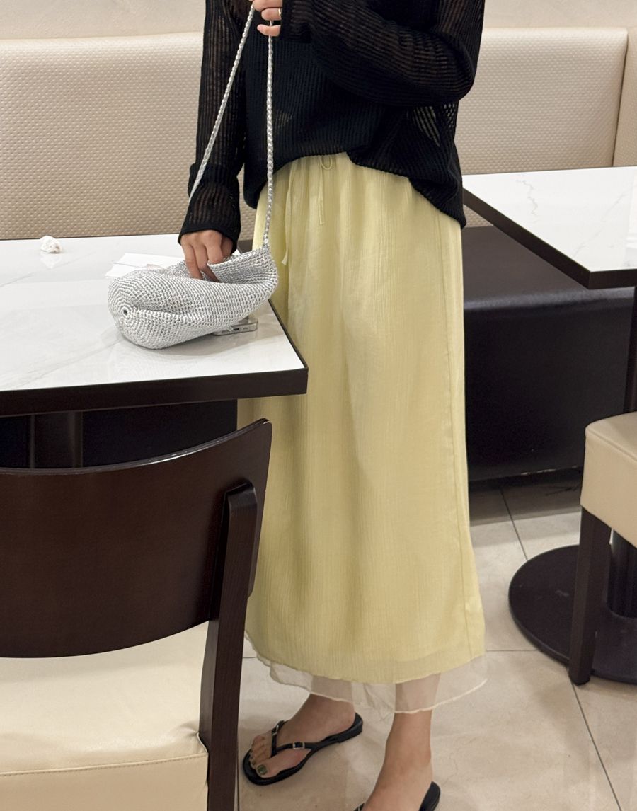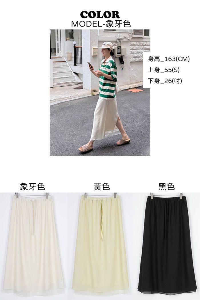 好氣色/抽繩收腰/後開衩/薄紗滾邊/有內裏/無口袋 - 休閒渡假婚禮簡約百搭素面雙層直筒紗裙直筒裙長裙象牙色黃色黑色