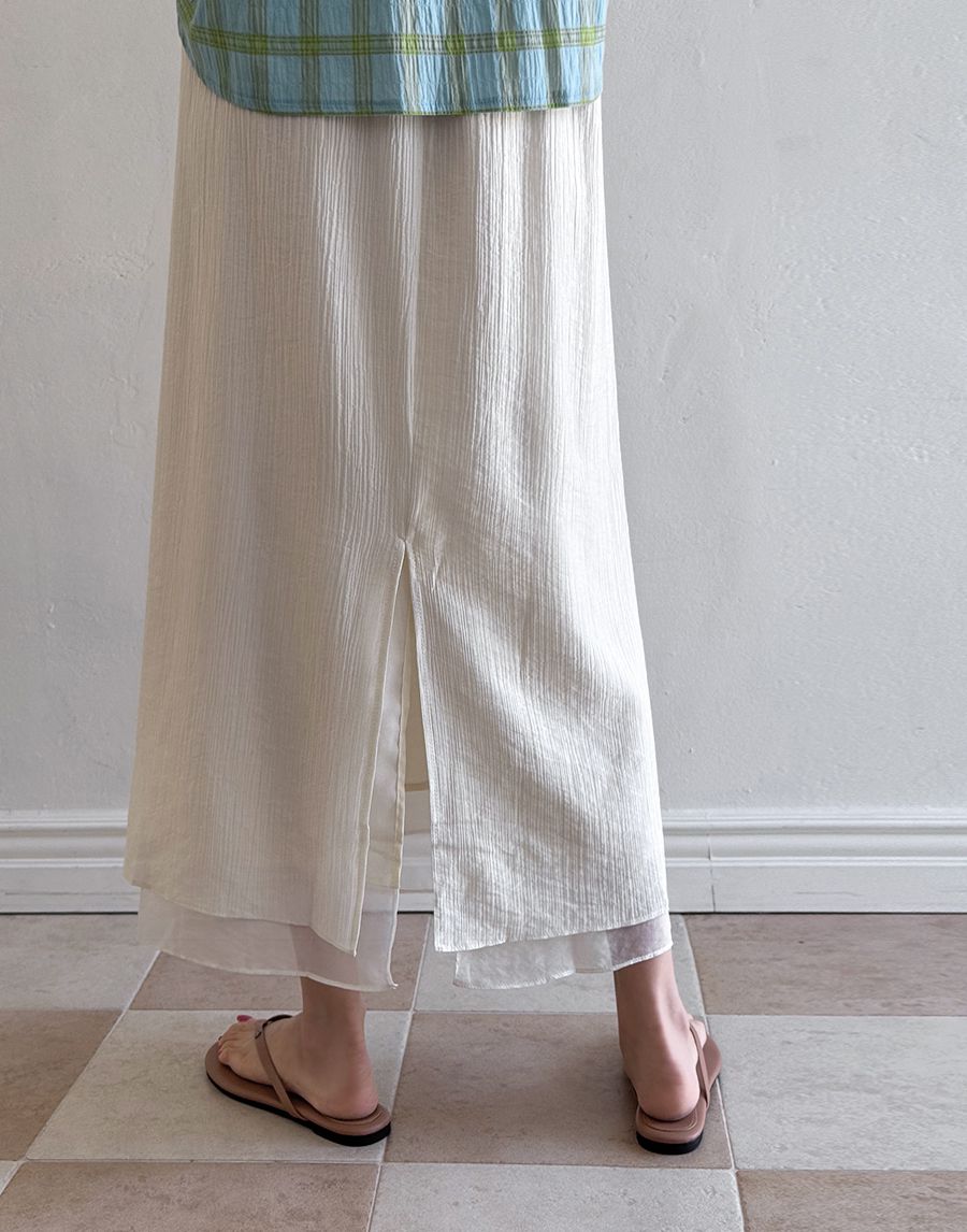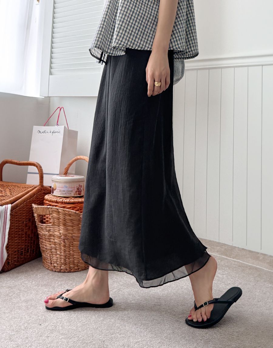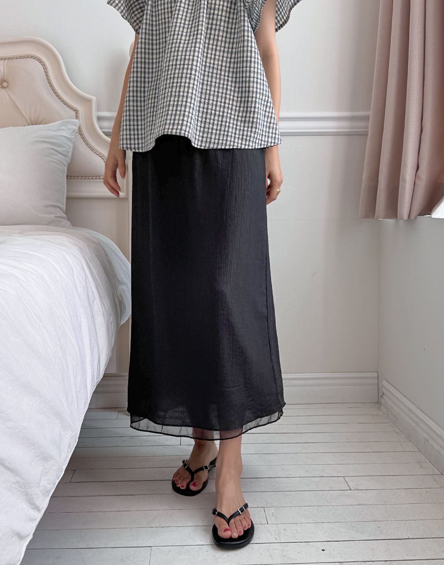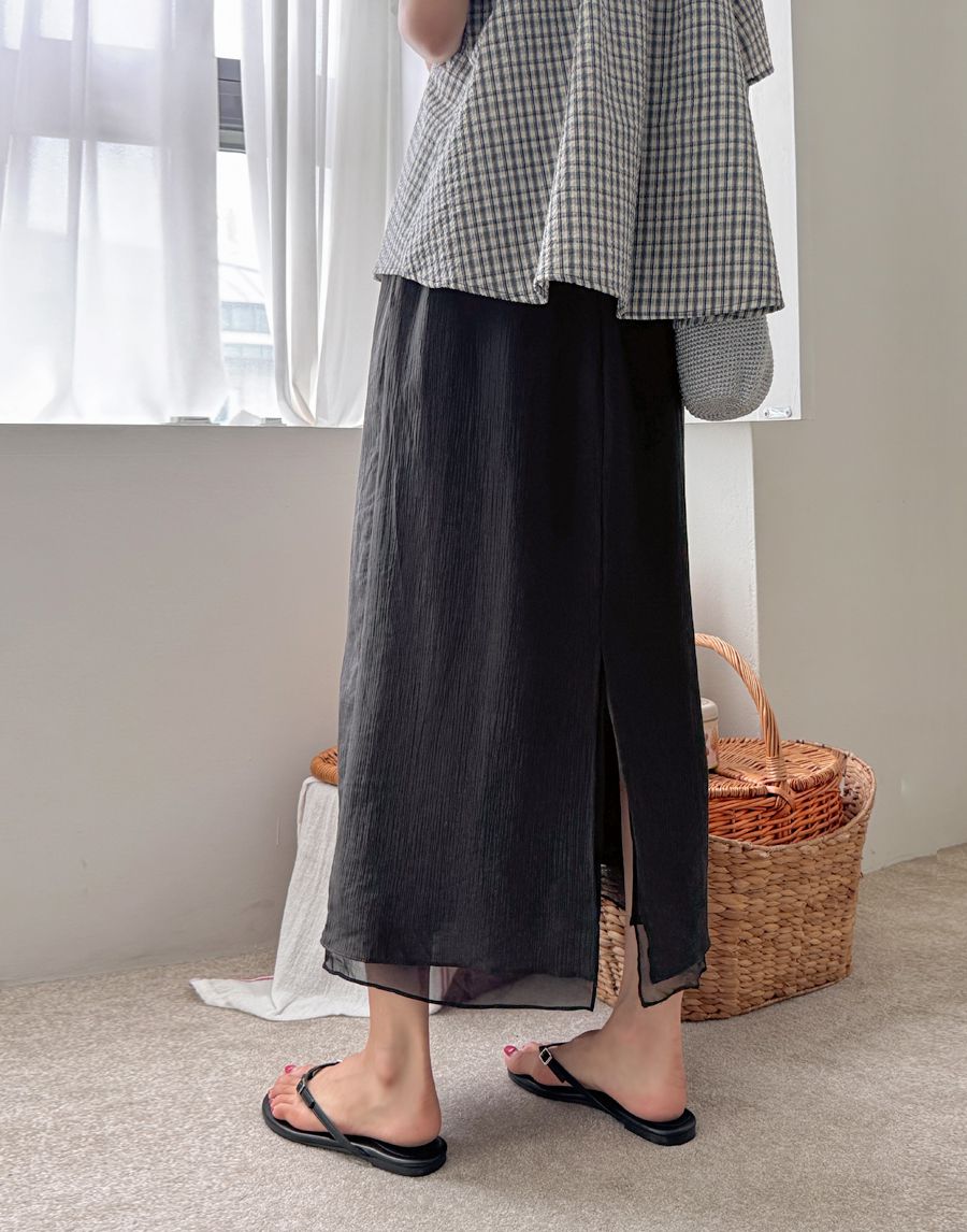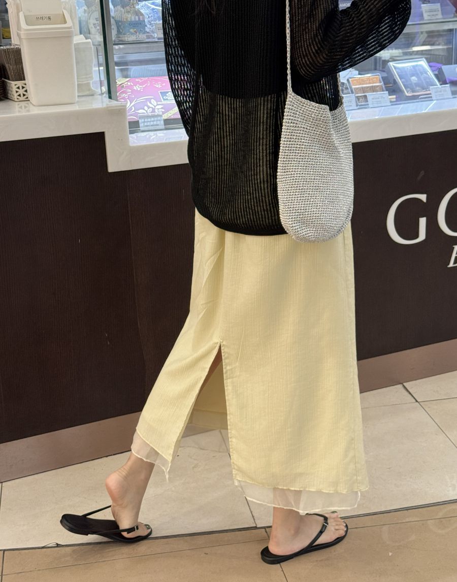 好氣色/抽繩收腰/後開衩/薄紗滾邊/有內裏/無口袋 - 休閒渡假婚禮簡約百搭素面雙層直筒紗裙直筒裙長裙象牙色黃色黑色