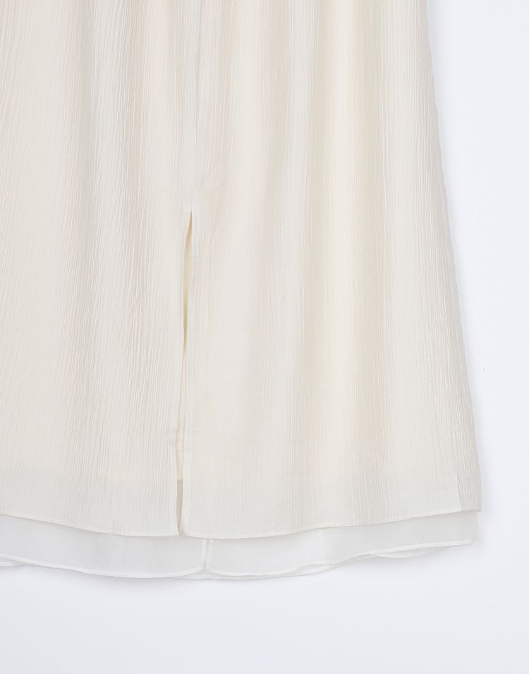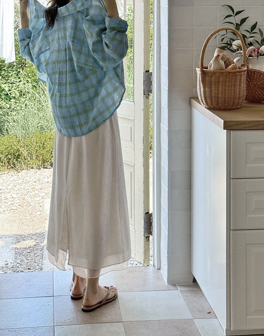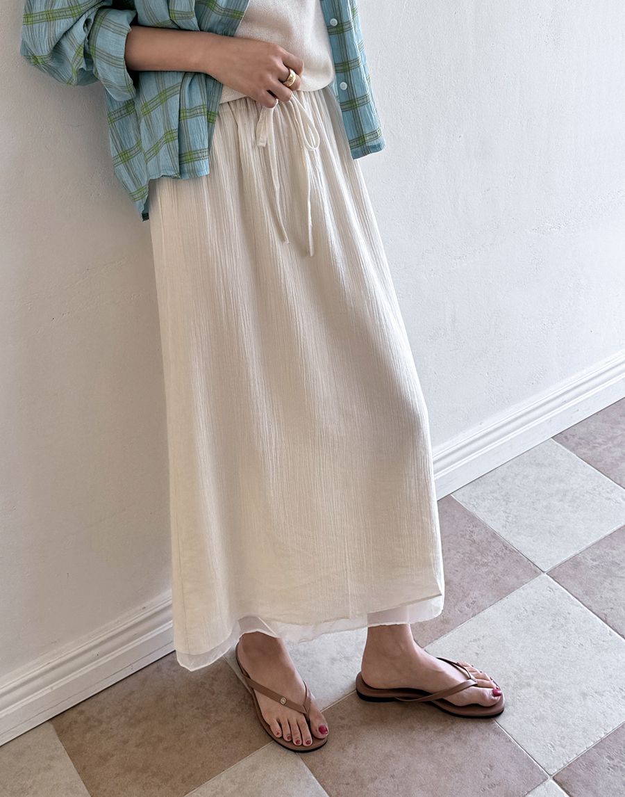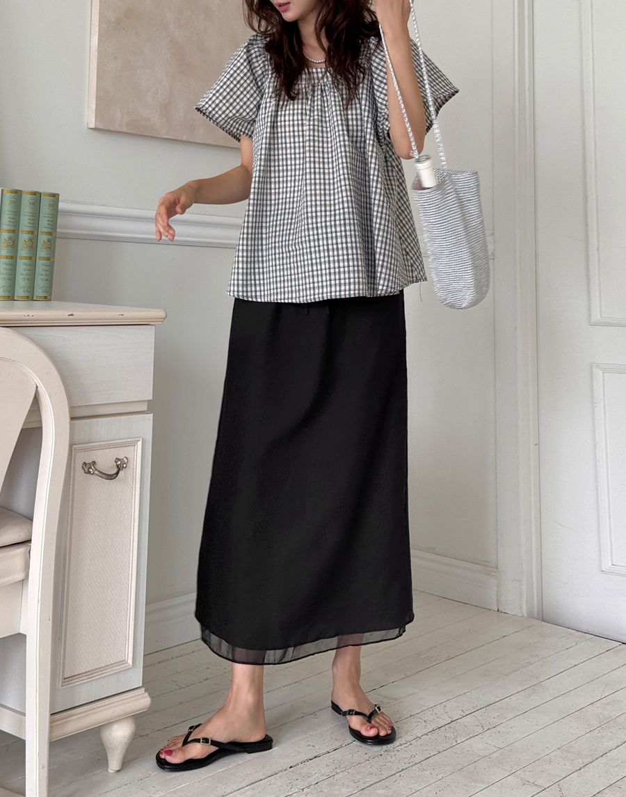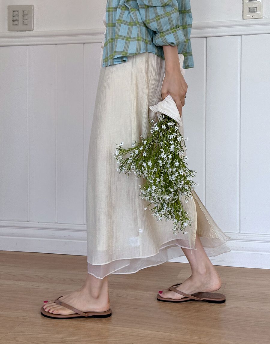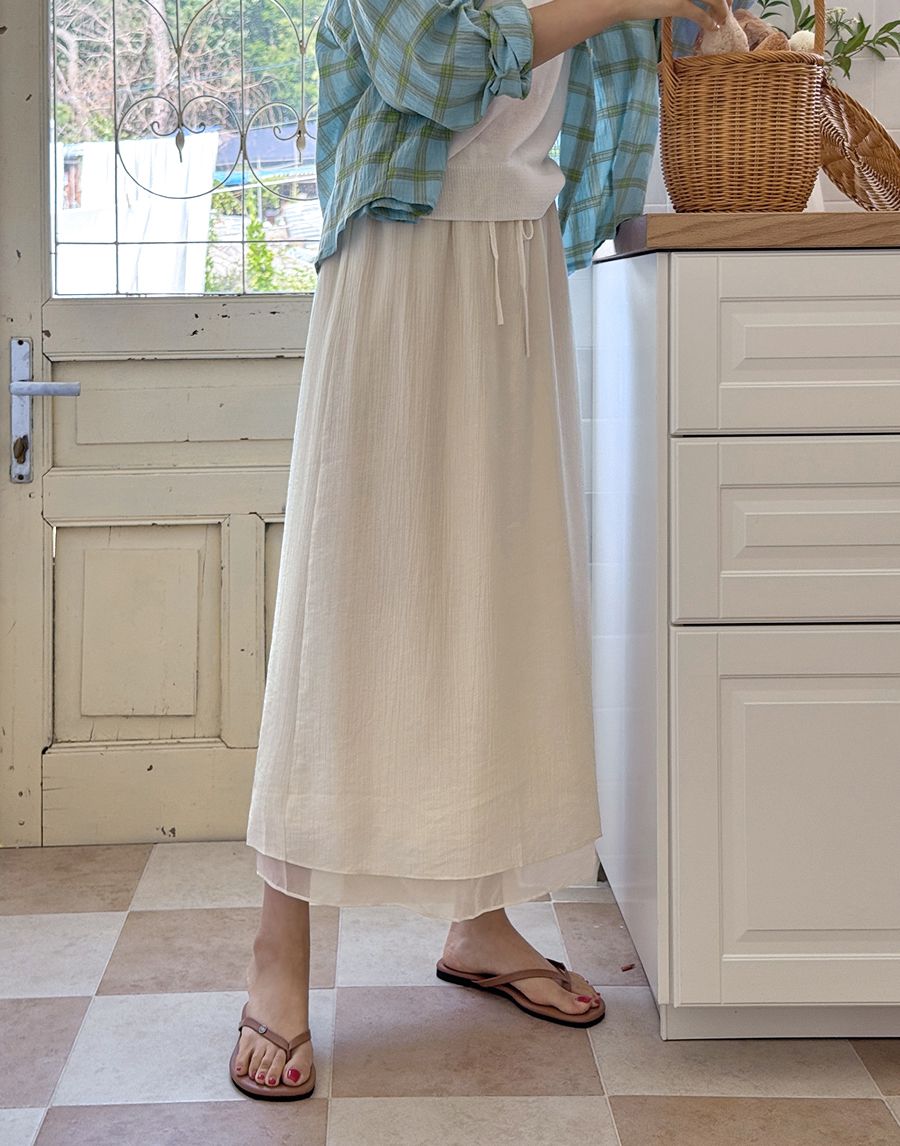 好氣色/抽繩收腰/後開衩/薄紗滾邊/有內裏/無口袋 - 休閒渡假婚禮簡約百搭素面雙層直筒紗裙直筒裙長裙象牙色黃色黑色