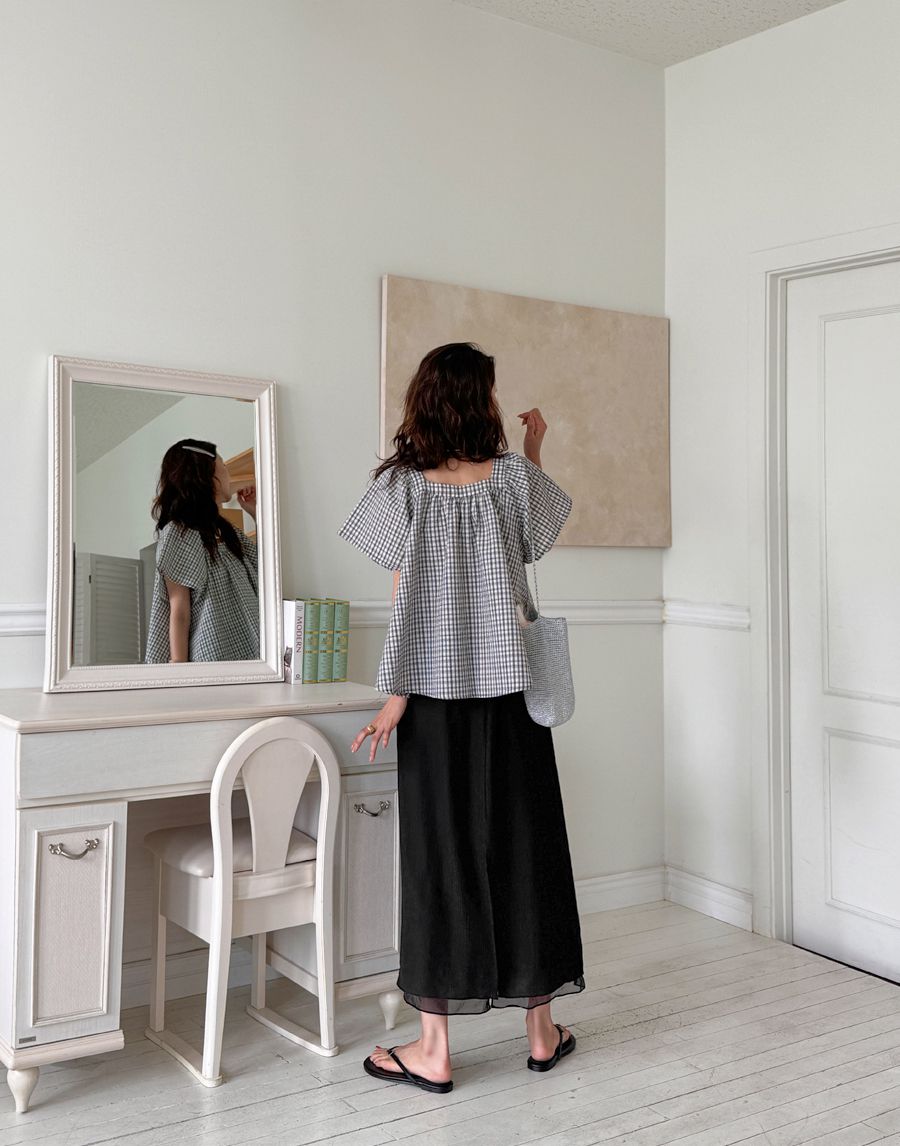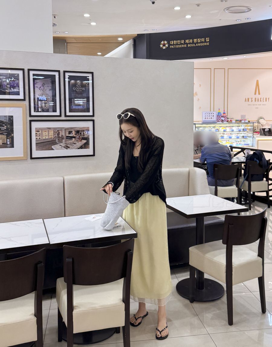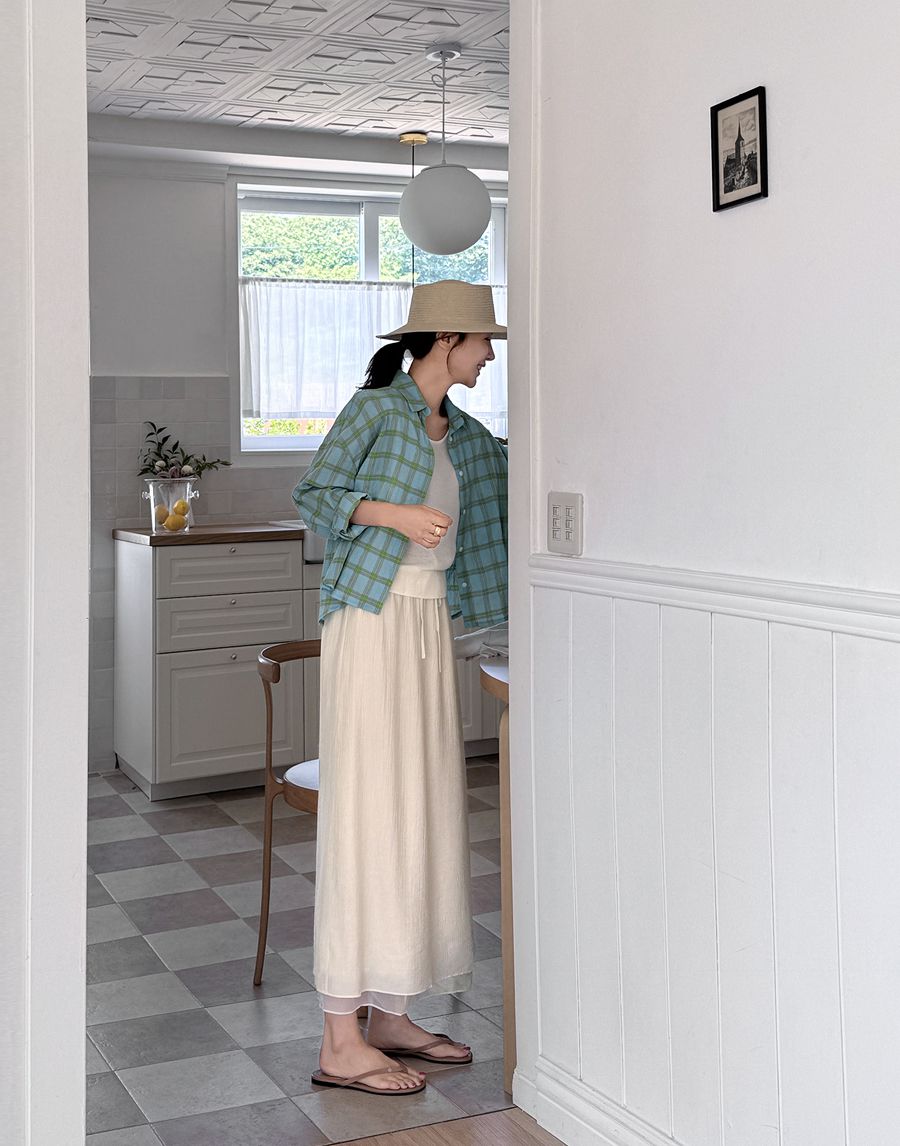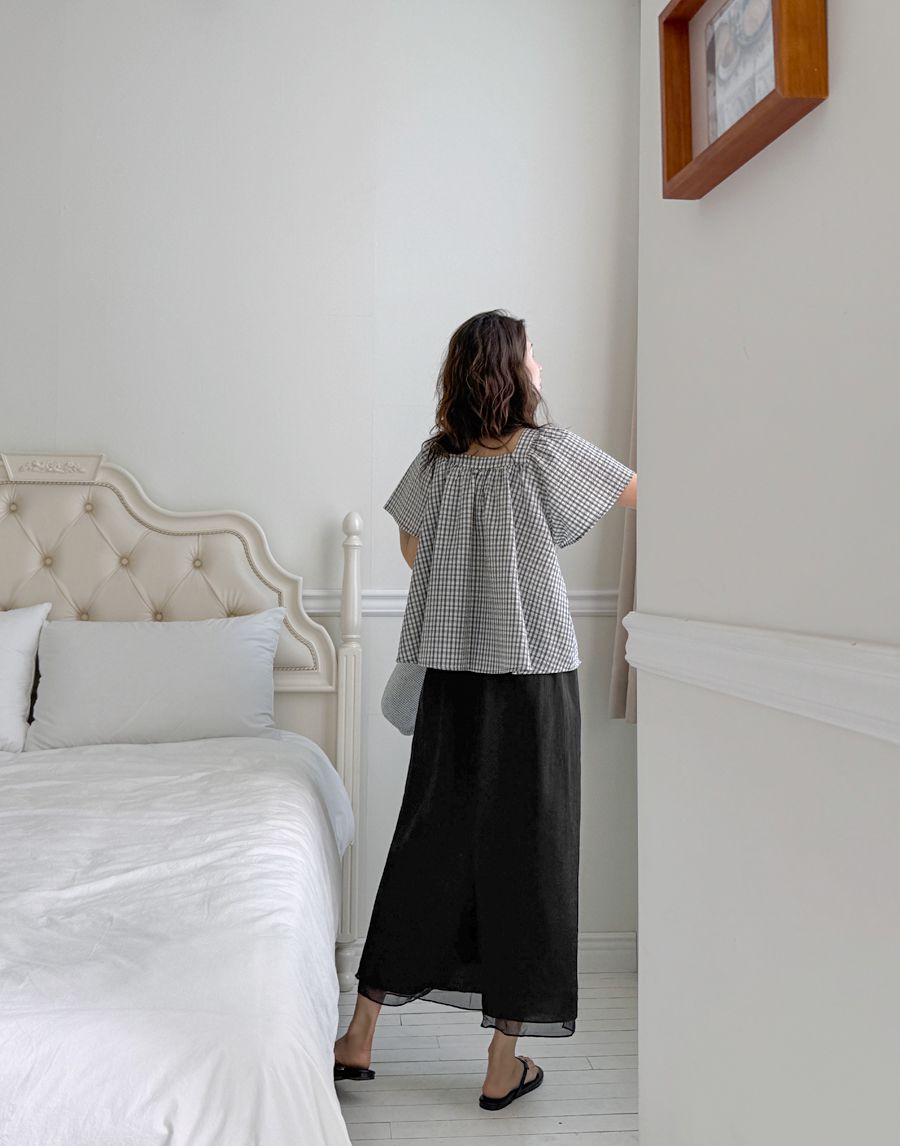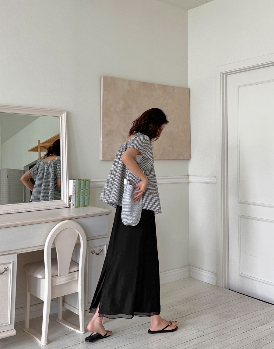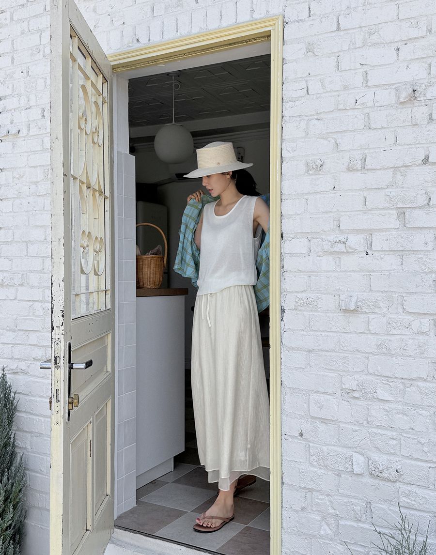 好氣色/抽繩收腰/後開衩/薄紗滾邊/有內裏/無口袋 - 休閒渡假婚禮簡約百搭素面雙層直筒紗裙直筒裙長裙象牙色黃色黑色