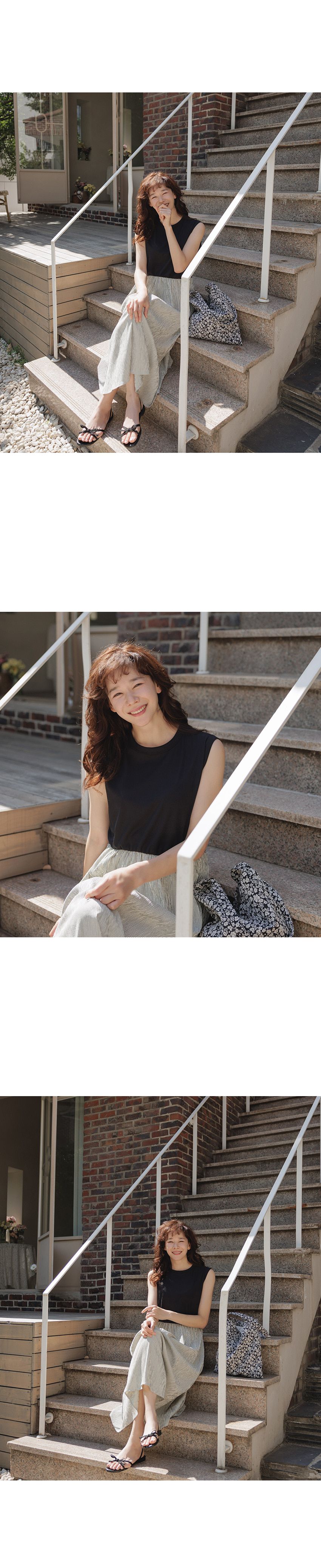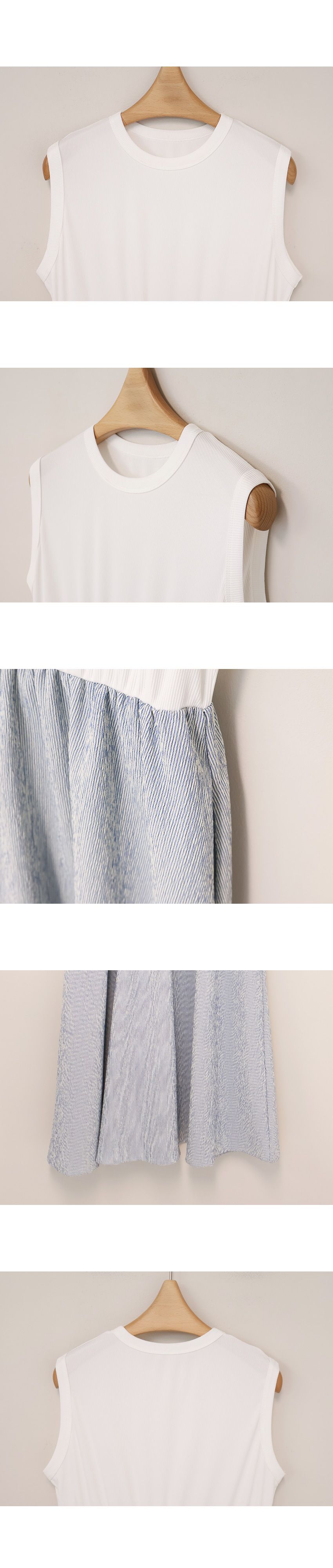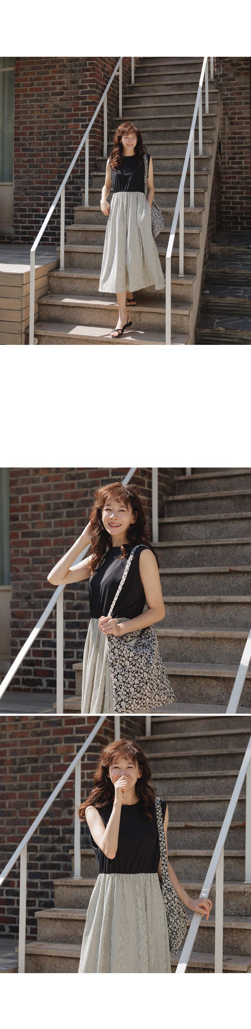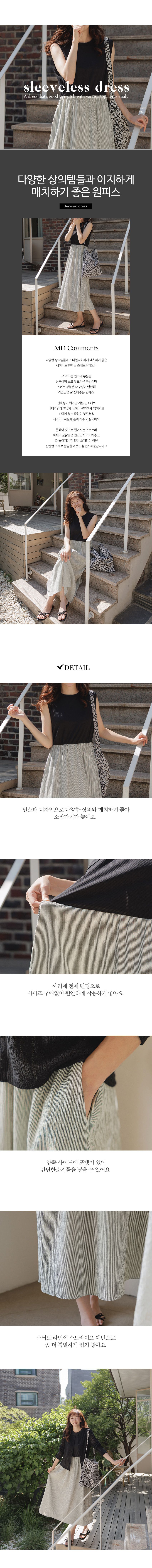 【C54961】韓國QUS 條紋拼接洋裝-圓領假兩件雙口袋寬肩無袖連身裙★★