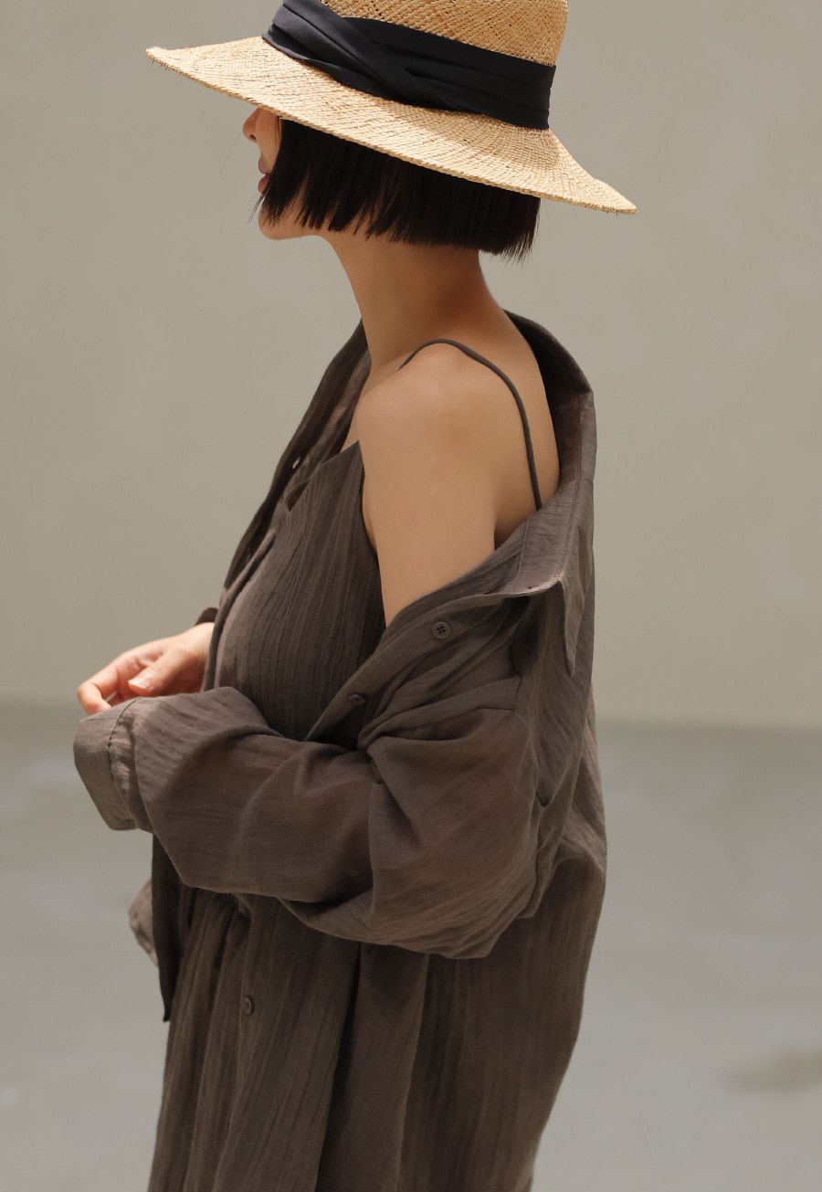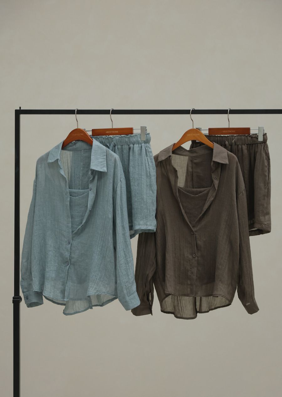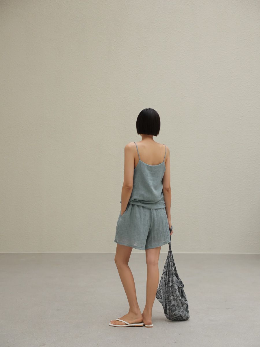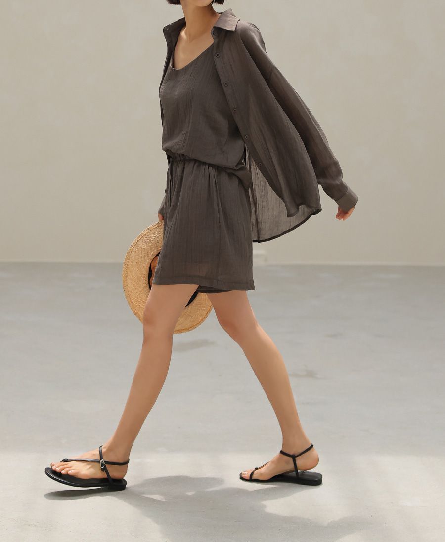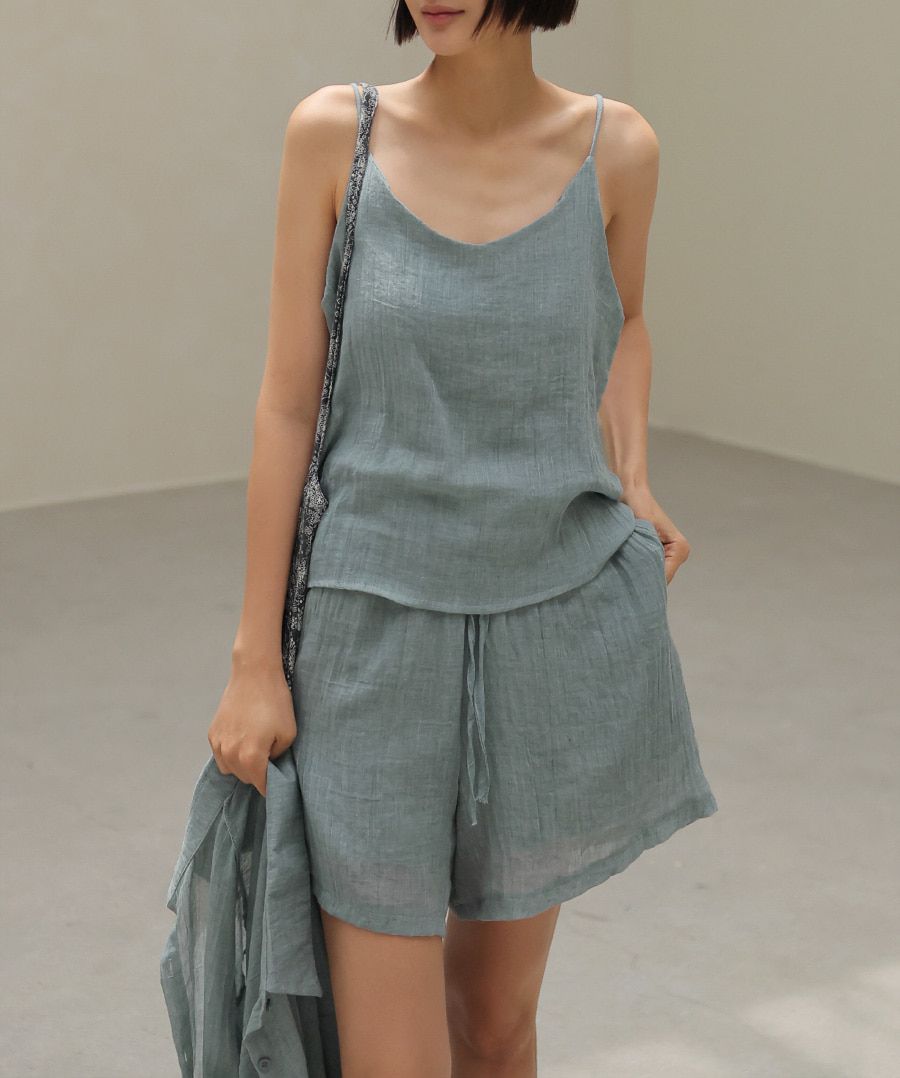 這款亞麻三件套裝 是夏天衣櫃裡最值得擁有的一組 輕盈、俐落又充滿呼吸感 由吊帶背心、長袖襯衫外套 以及素面短褲組成 一套就能輕鬆解決「今天要穿什麼」的煩惱! - 亞麻混棉的布料透氣又柔軟 穿上身有種自然的涼感 帶著一點慵懶的波紋質地 更增添了生活的時尚氣息~ 吊帶背心單穿就很俐落性感 而且可以正 / 反兩穿實在很貼心~ 加上長袖外套一罩瞬間變得氣質又不失自在 綁在腰間更顯歐系女孩的自在俐落 短褲鬆緊腰設計讓比例更修長,活動也超舒適 - 適合散步的午後、出遊的假日 或咖啡廳裡的微風午後 這套衣服都能讓你看起來自然又有品味~ 隨手一穿就像度假回來一樣放鬆