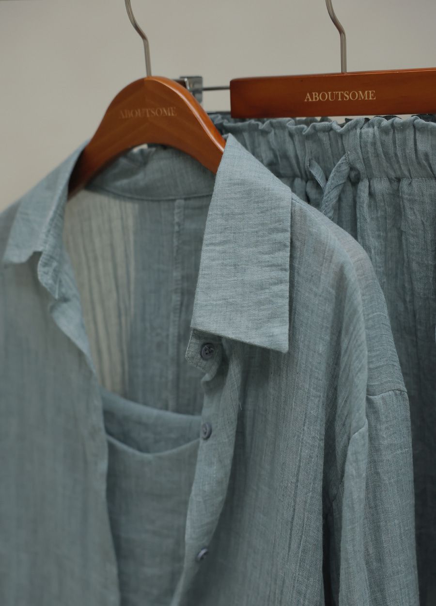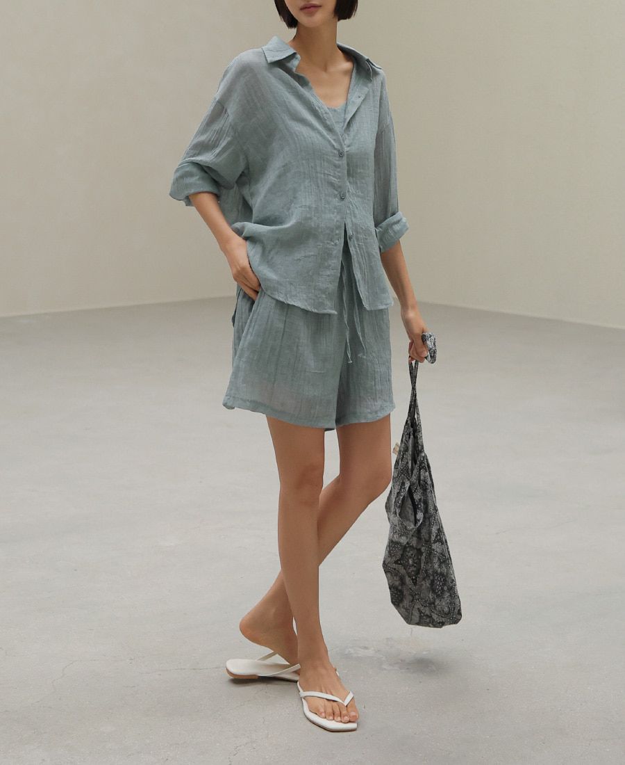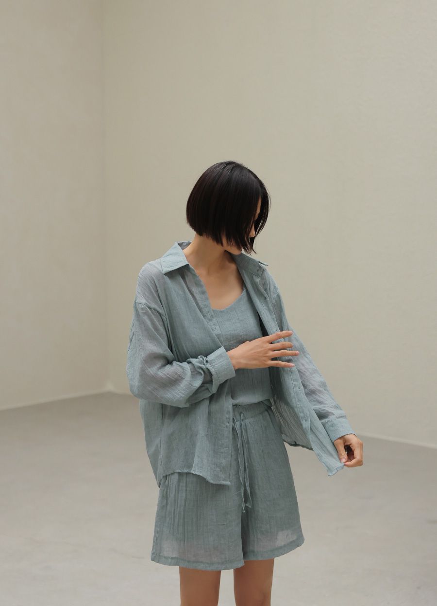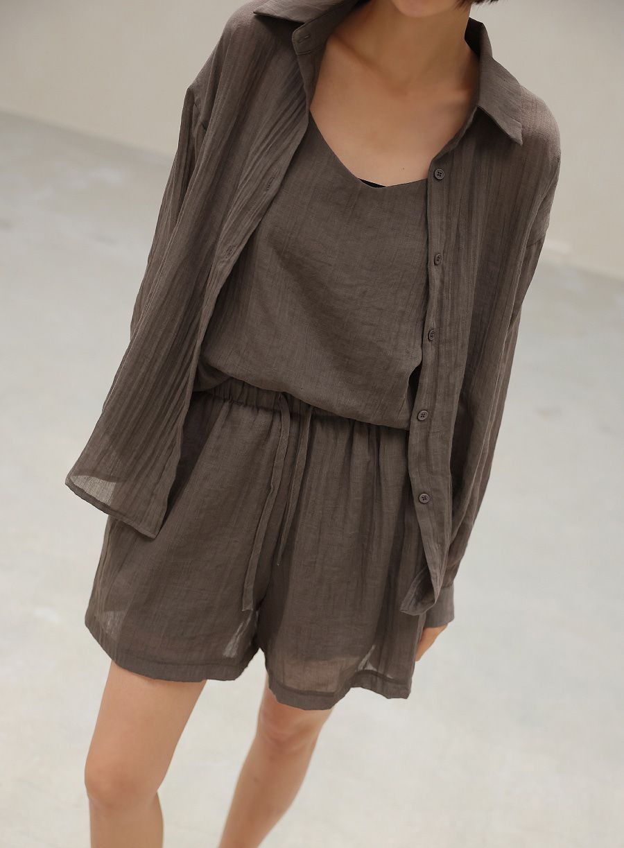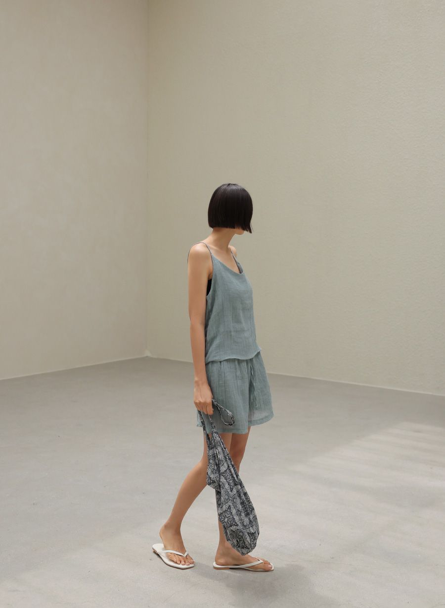 這款亞麻三件套裝 是夏天衣櫃裡最值得擁有的一組 輕盈、俐落又充滿呼吸感 由吊帶背心、長袖襯衫外套 以及素面短褲組成 一套就能輕鬆解決「今天要穿什麼」的煩惱! - 亞麻混棉的布料透氣又柔軟 穿上身有種自然的涼感 帶著一點慵懶的波紋質地 更增添了生活的時尚氣息~ 吊帶背心單穿就很俐落性感 而且可以正 / 反兩穿實在很貼心~ 加上長袖外套一罩瞬間變得氣質又不失自在 綁在腰間更顯歐系女孩的自在俐落 短褲鬆緊腰設計讓比例更修長,活動也超舒適 - 適合散步的午後、出遊的假日 或咖啡廳裡的微風午後 這套衣服都能讓你看起來自然又有品味~ 隨手一穿就像度假回來一樣放鬆