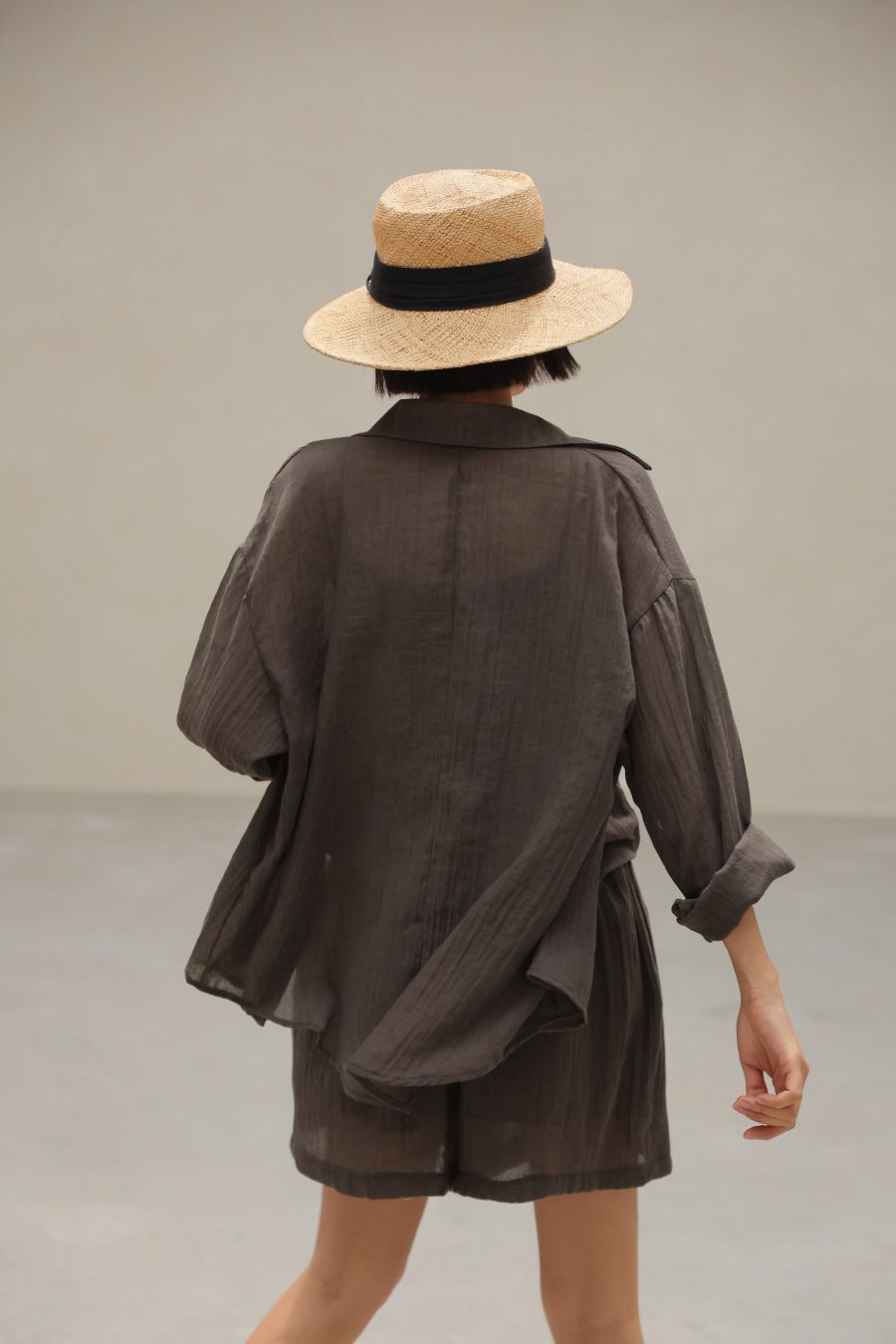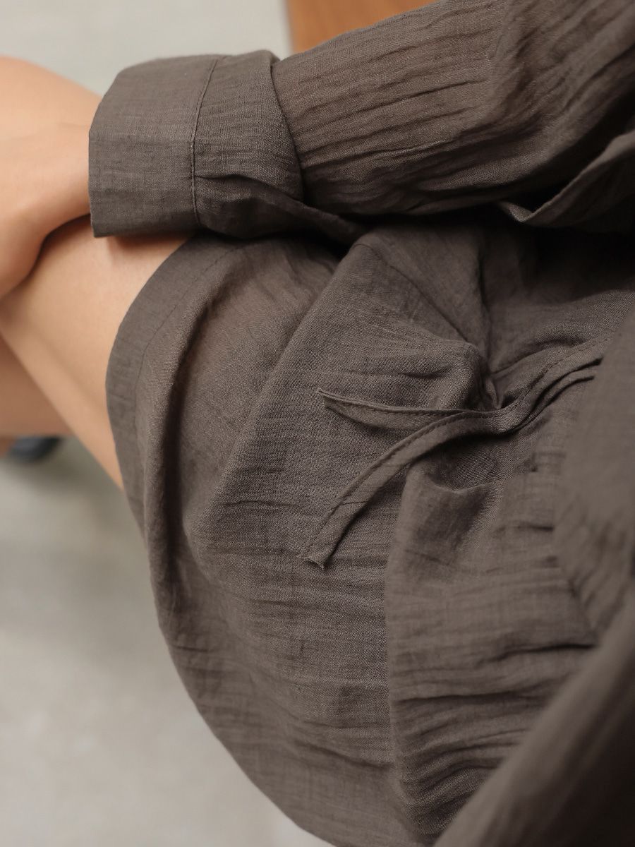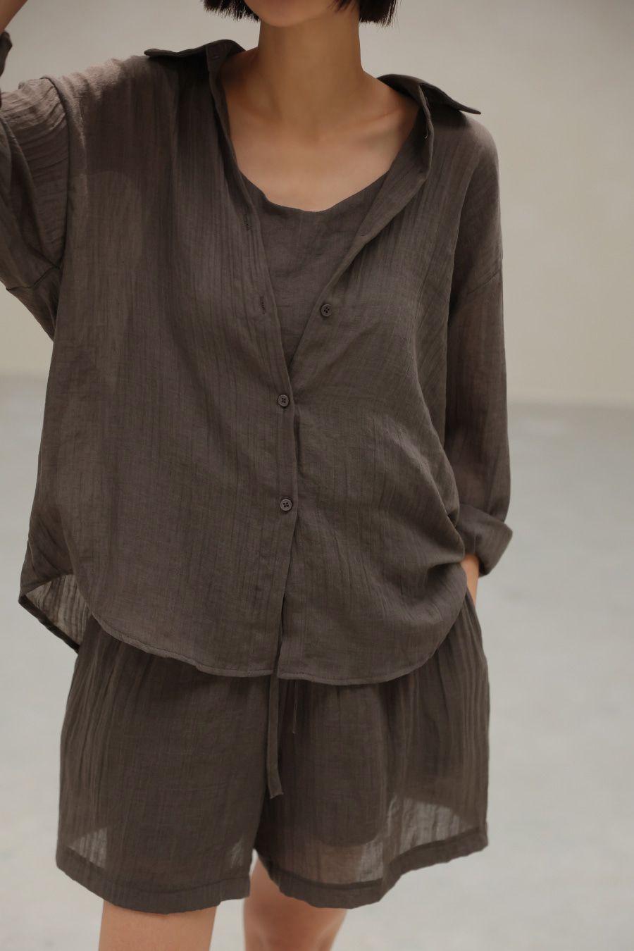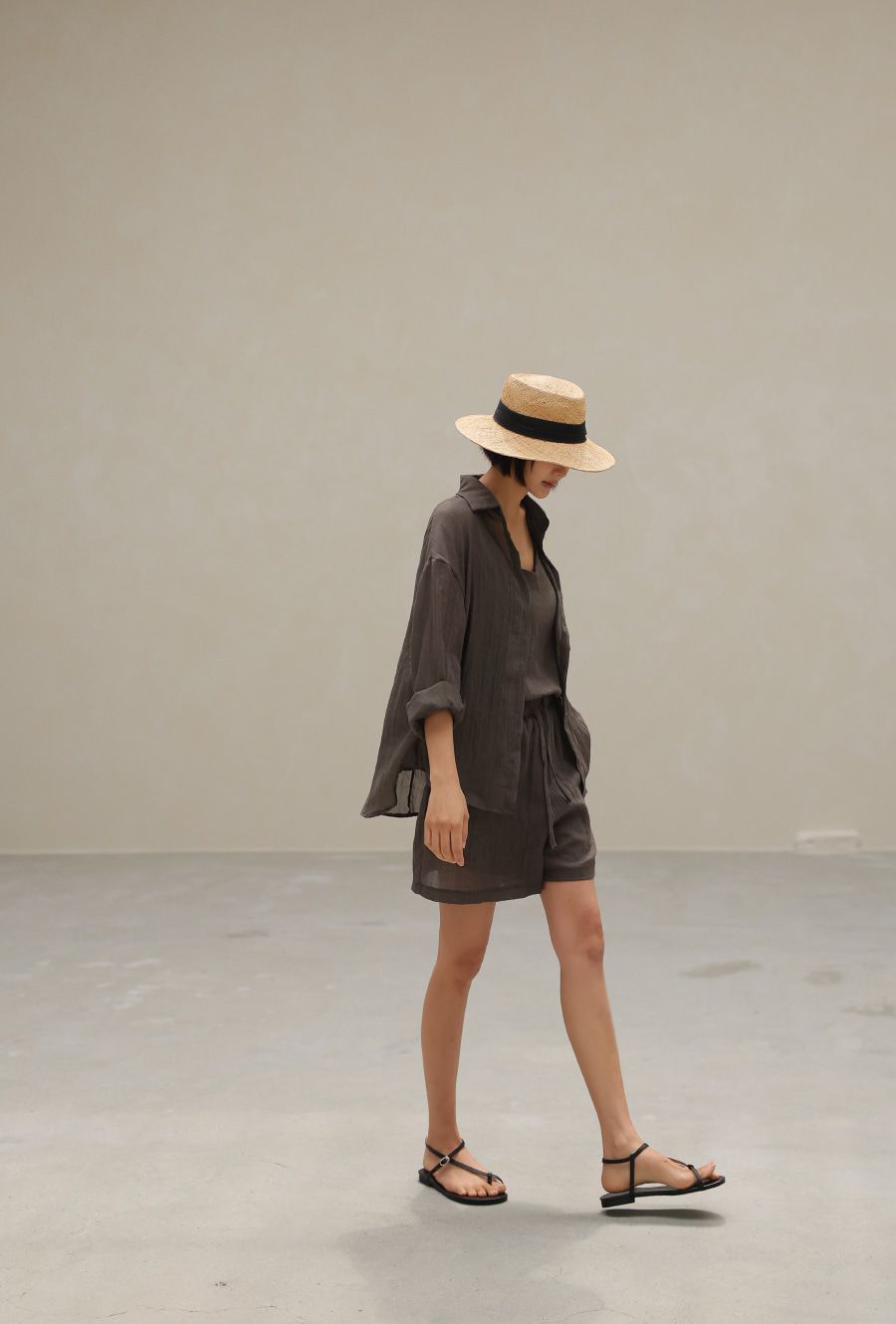 這款亞麻三件套裝 是夏天衣櫃裡最值得擁有的一組 輕盈、俐落又充滿呼吸感 由吊帶背心、長袖襯衫外套 以及素面短褲組成 一套就能輕鬆解決「今天要穿什麼」的煩惱! - 亞麻混棉的布料透氣又柔軟 穿上身有種自然的涼感 帶著一點慵懶的波紋質地 更增添了生活的時尚氣息~ 吊帶背心單穿就很俐落性感 而且可以正 / 反兩穿實在很貼心~ 加上長袖外套一罩瞬間變得氣質又不失自在 綁在腰間更顯歐系女孩的自在俐落 短褲鬆緊腰設計讓比例更修長,活動也超舒適 - 適合散步的午後、出遊的假日 或咖啡廳裡的微風午後 這套衣服都能讓你看起來自然又有品味~ 隨手一穿就像度假回來一樣放鬆
