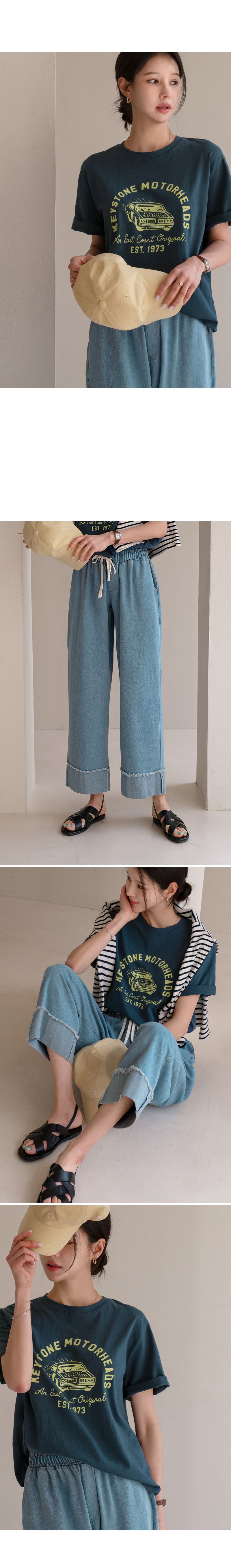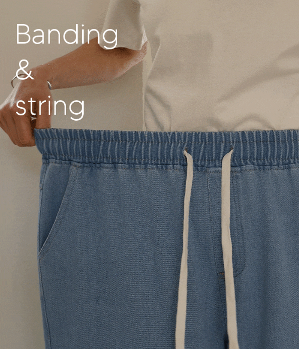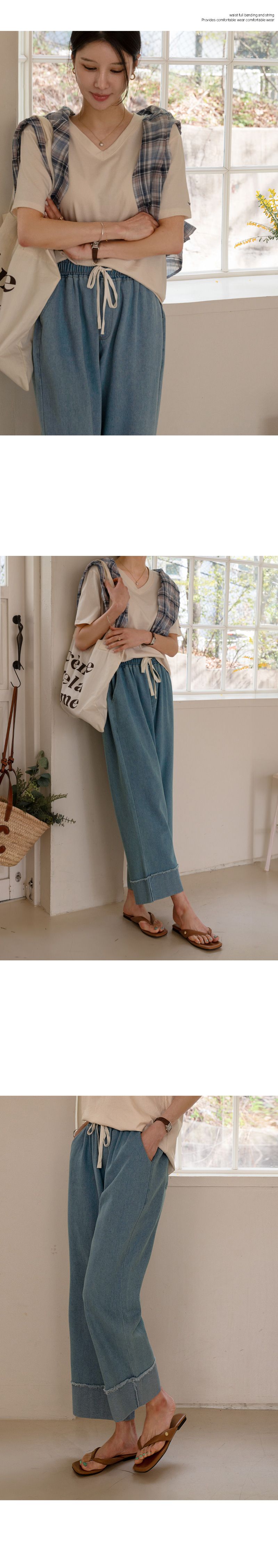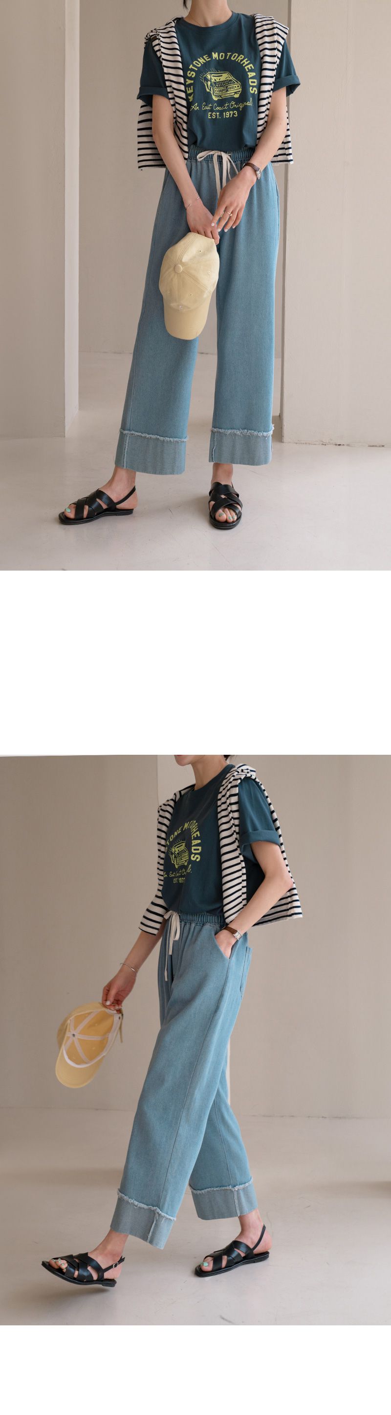 【C54984】韓國CAN 流蘇捲邊牛仔褲-素面抽繩腰反摺褲腳直筒九分褲★★