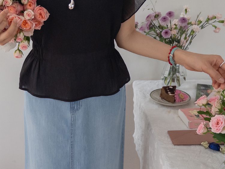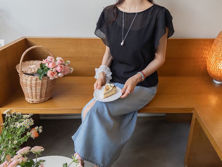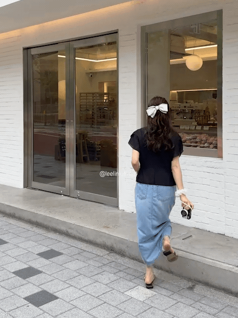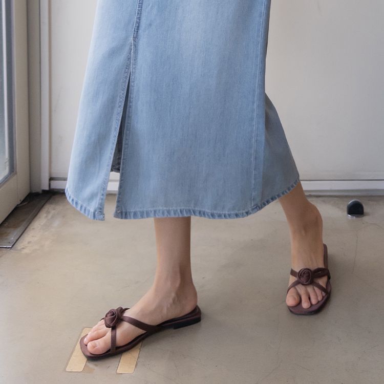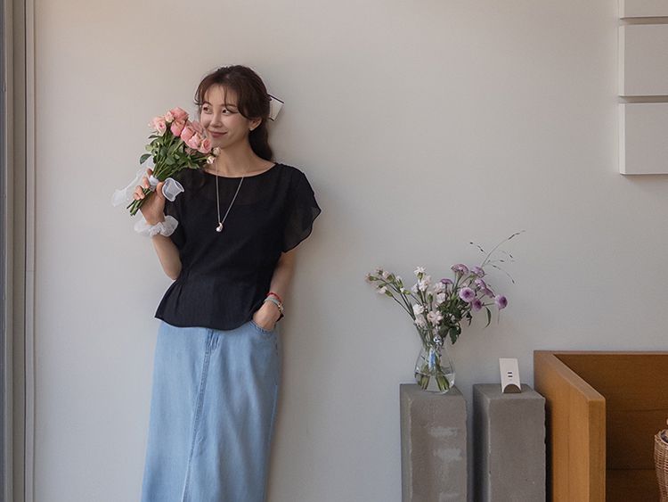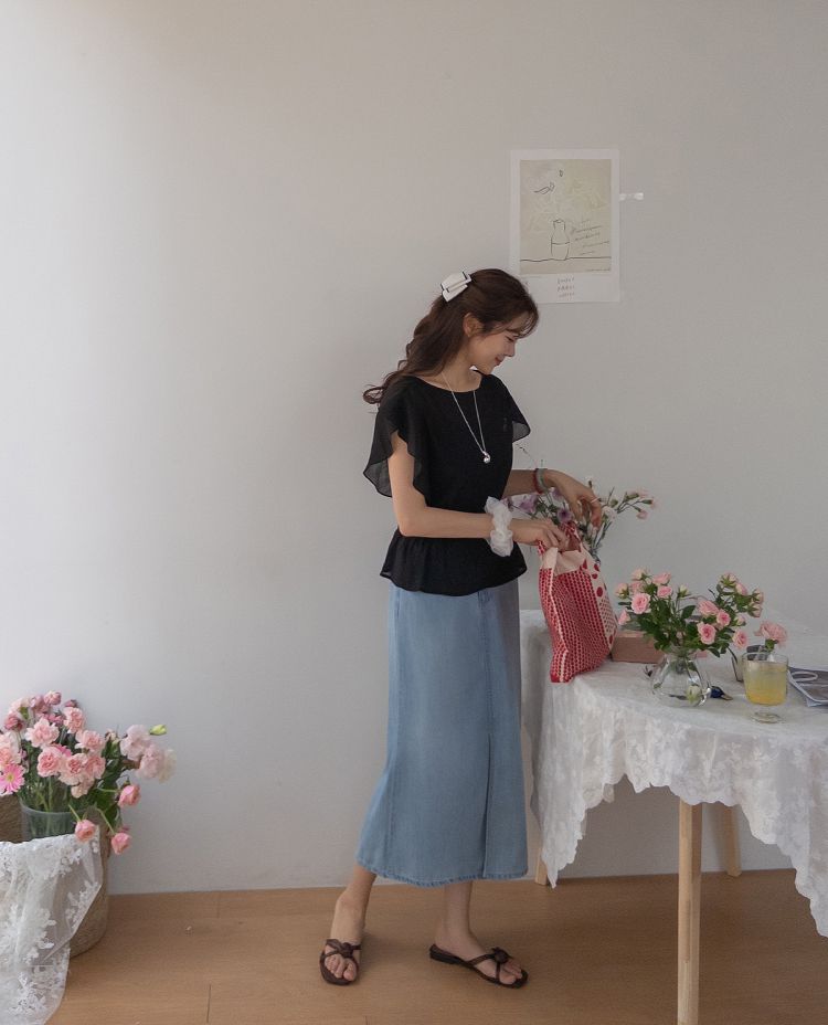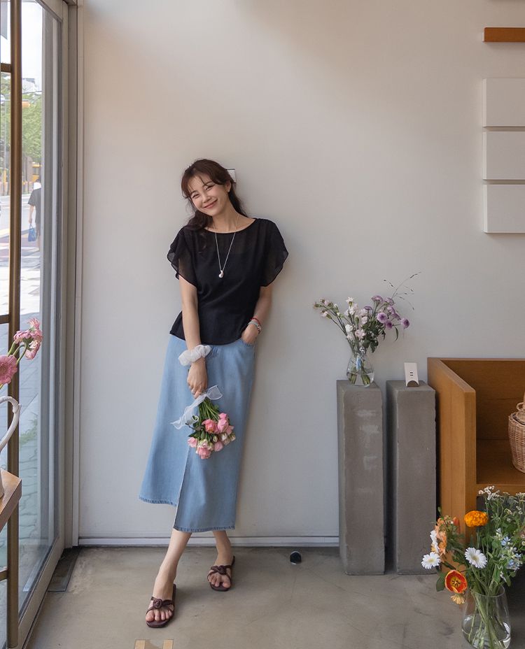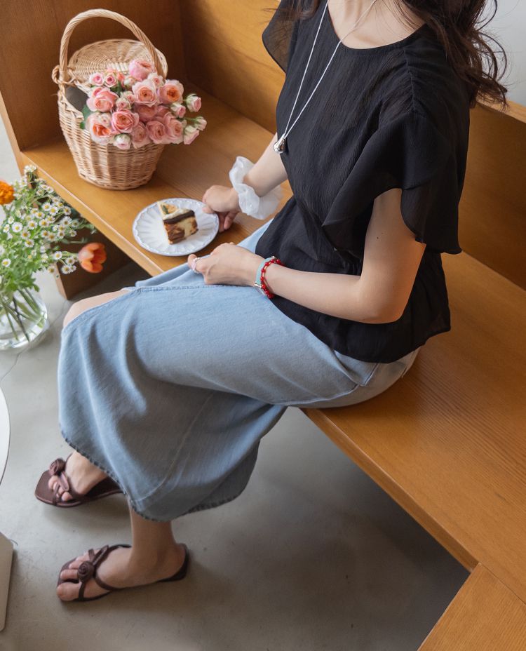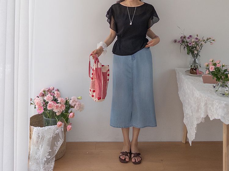 【C55004】韓國LEE 輕薄牛仔裙-素面柔軟水洗棉後腰鬆緊前開衩裙子★★
