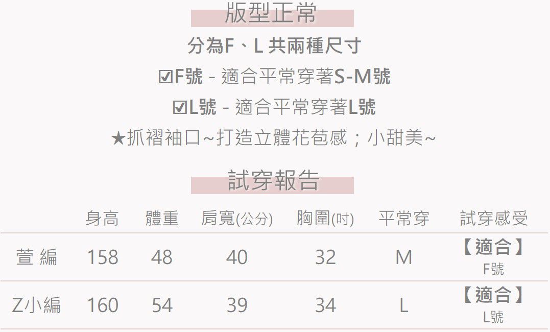 影片內穿著顏色/尺寸: 白 . 粉 . 黑 / F