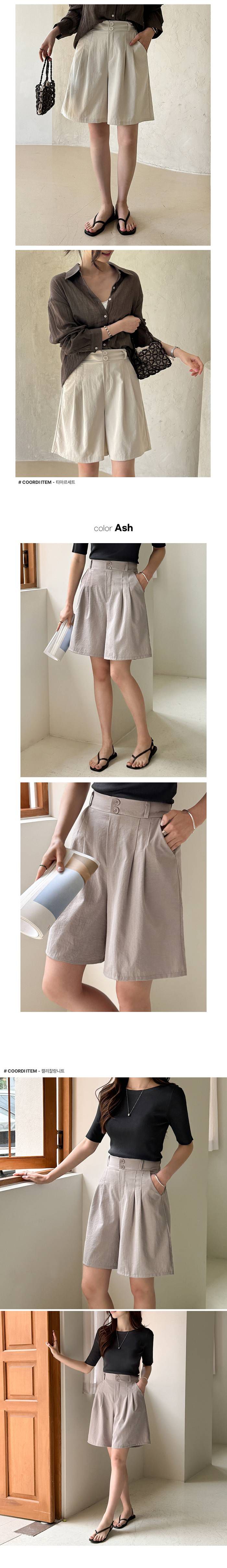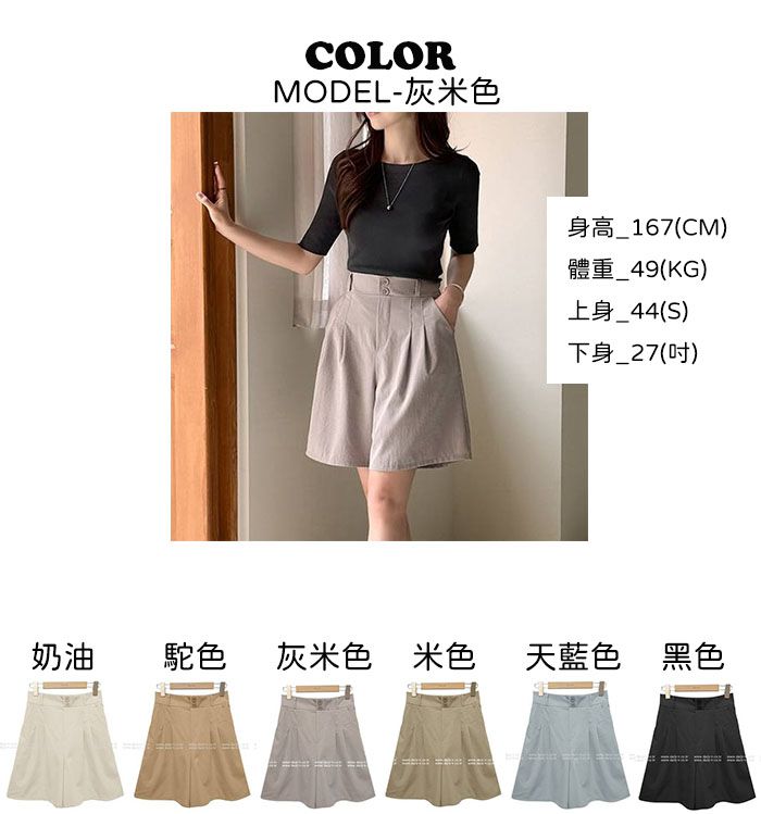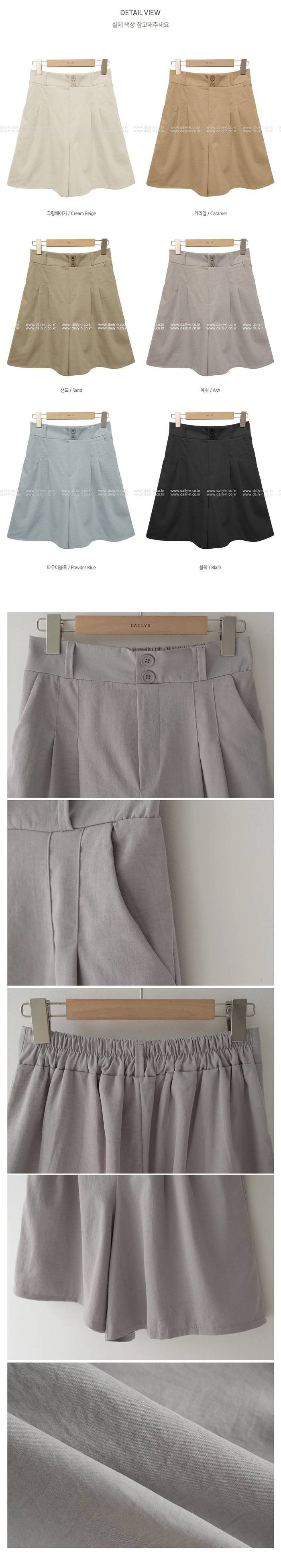 【C55046】韓國DLY 雙車褶短褲-素面雙釦造型後腰鬆緊A字休閒褲