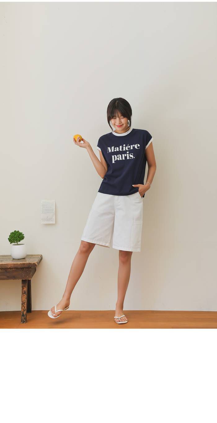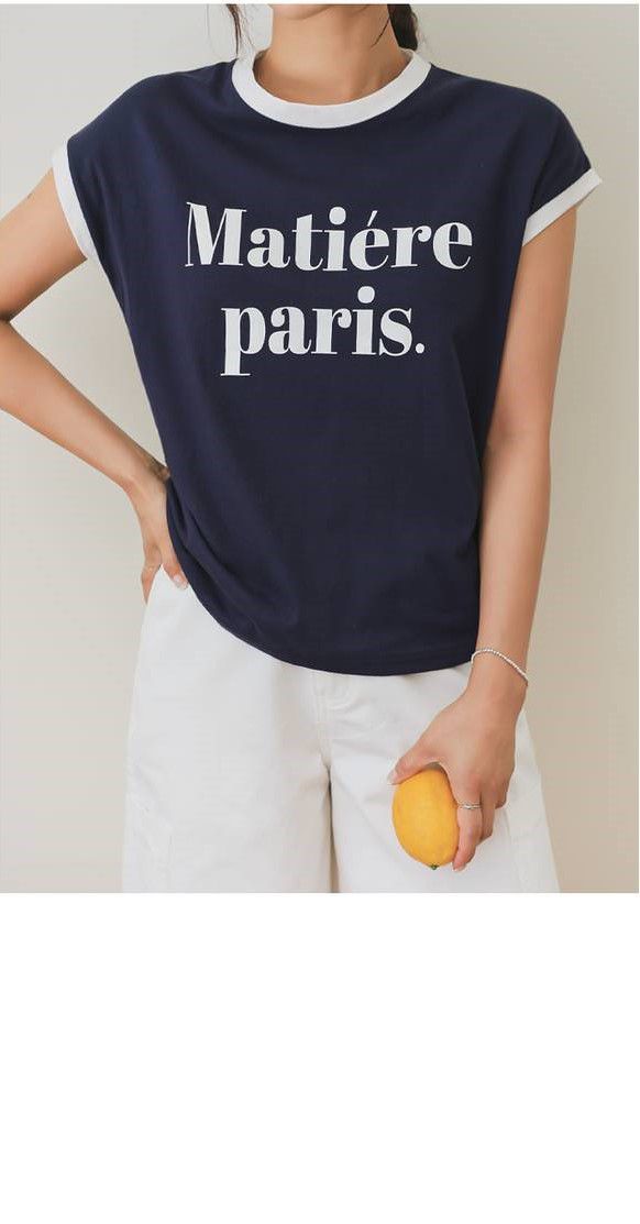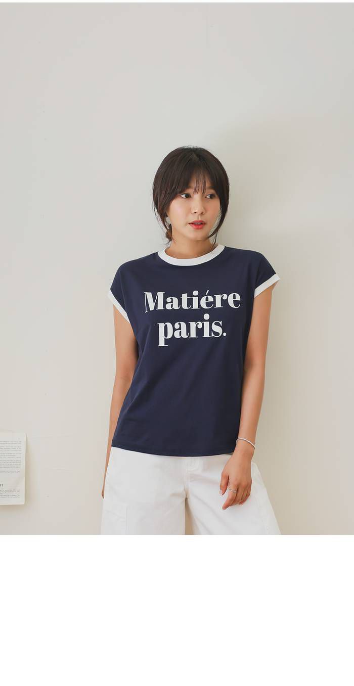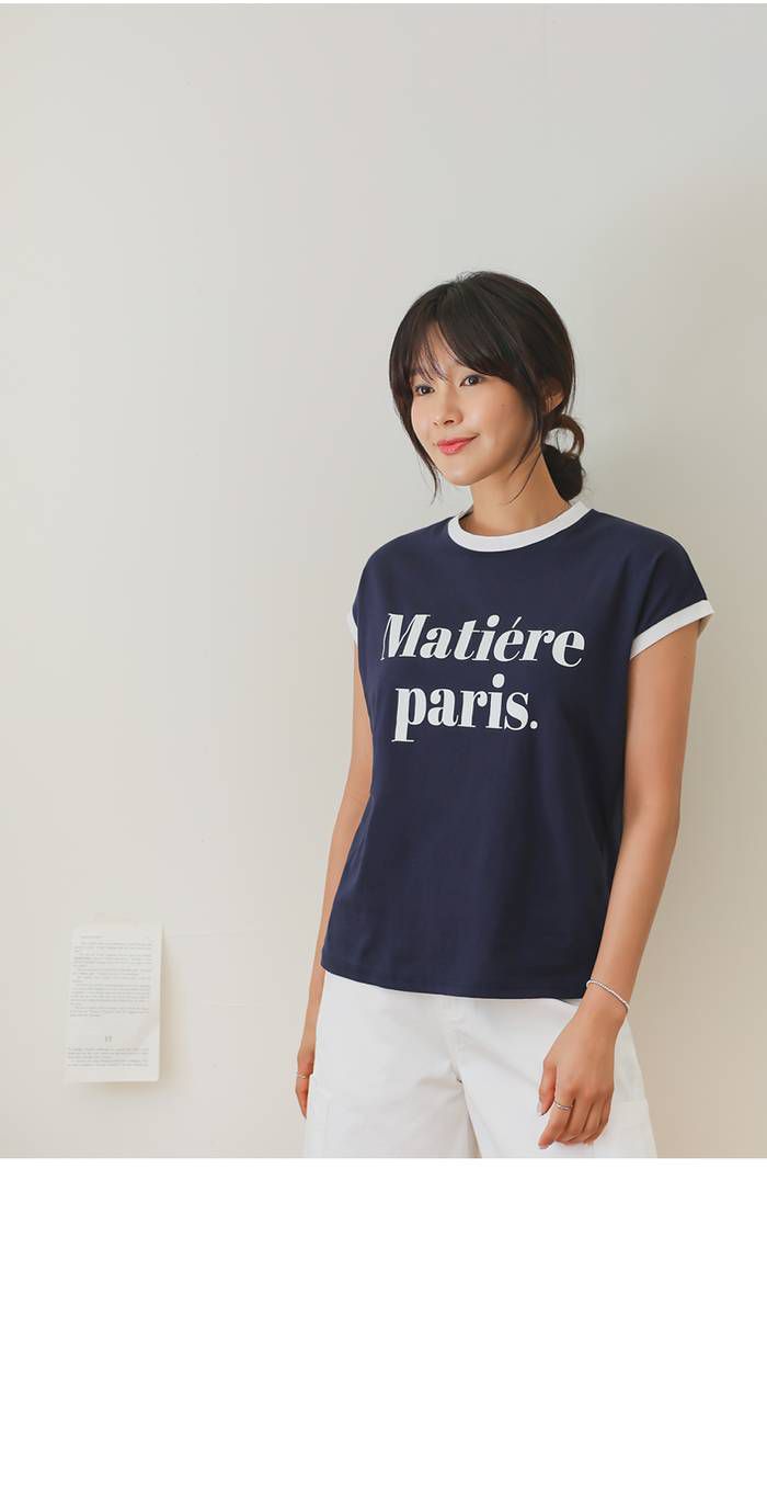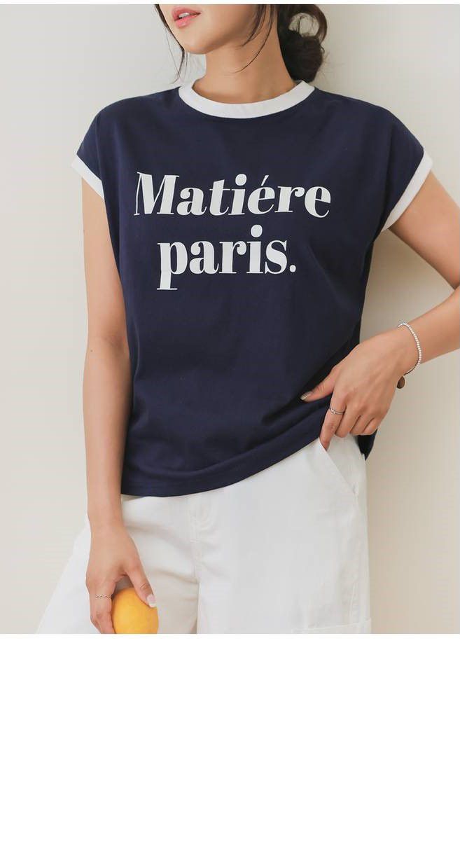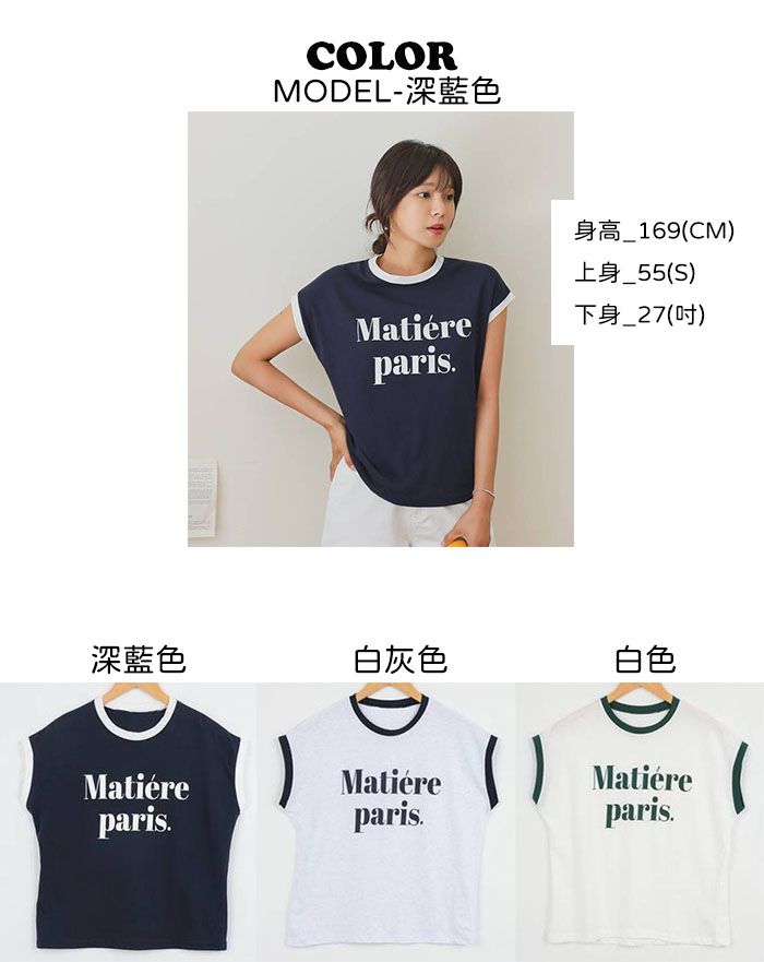 膠印字母/巴黎PARIS/跳色粗體字母/連肩袖/包肩短袖/圓領/棉質 - 休閒居家英文字母上衣字母T恤TEE撞色滾邊T恤短袖上衣深藍色白灰色白色
