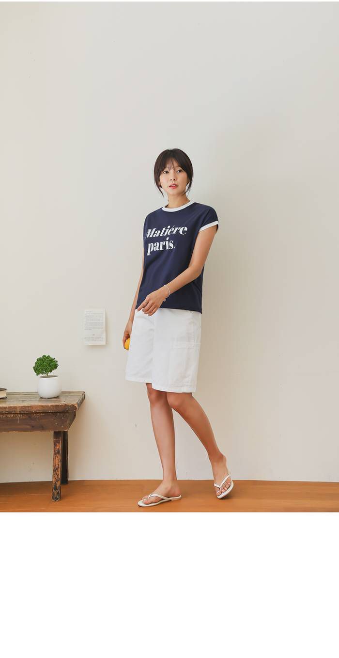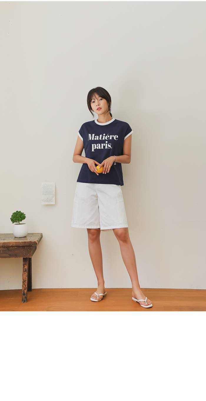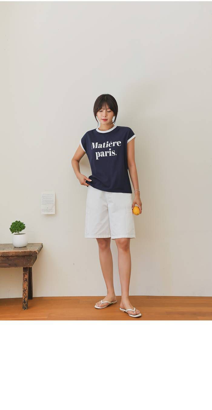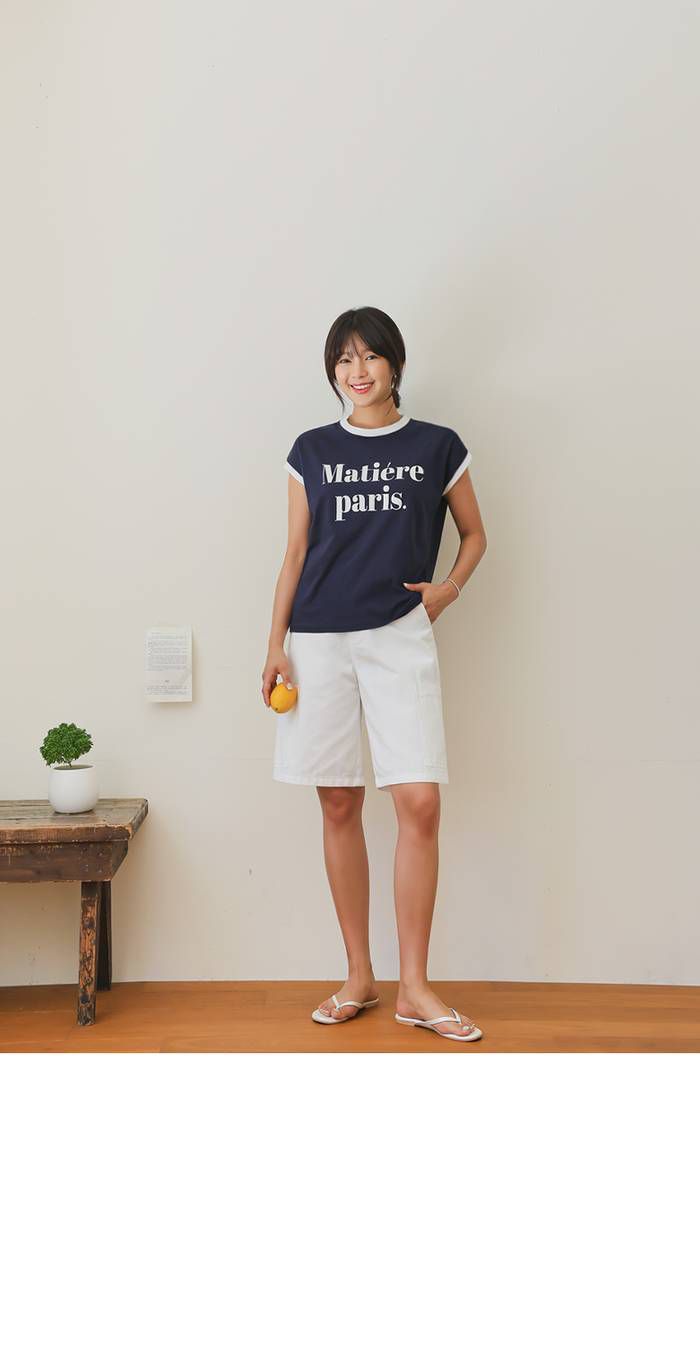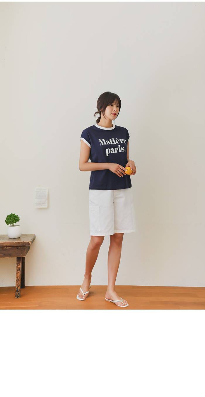 膠印字母/巴黎PARIS/跳色粗體字母/連肩袖/包肩短袖/圓領/棉質 - 休閒居家英文字母上衣字母T恤TEE撞色滾邊T恤短袖上衣深藍色白灰色白色